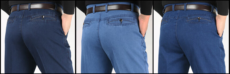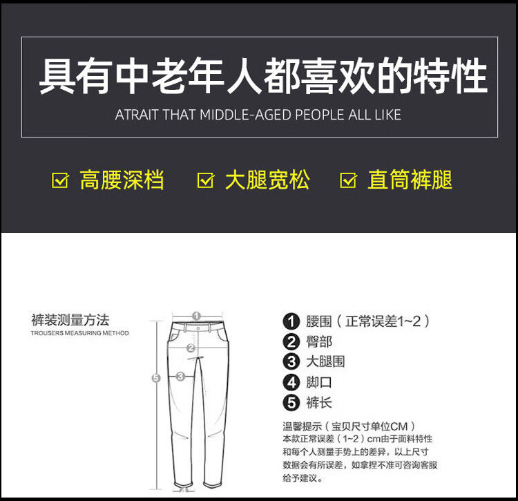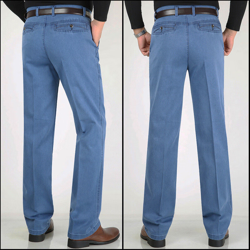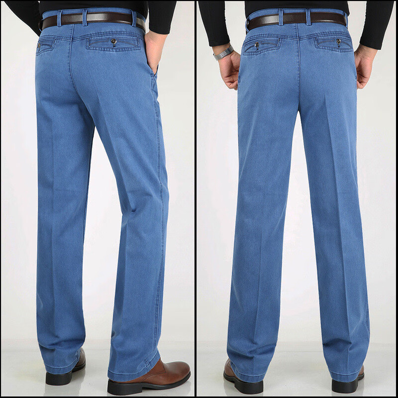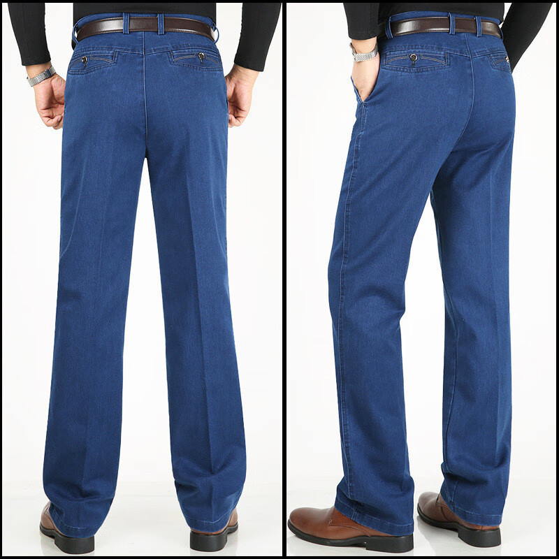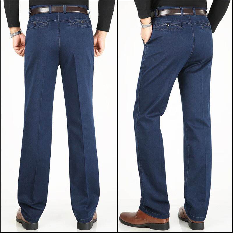 中老年弹力男士牛仔裤春秋季厚款中年人高腰宽松深档男士休闲长裤 深蓝-【秋冬厚款】 36 码【2尺9腰围】