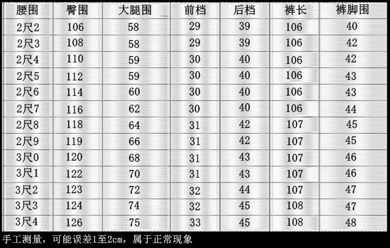 Outseam (cm) 99 cm 101.5 cm 104 cm 106.5 cm 109 cm