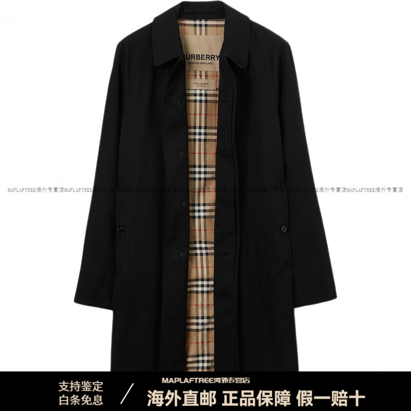 Burberry (BURBERRY) New Year's Day solid color lapel long-sleeved windbreaker Camden version mid-length men's black black one size 44