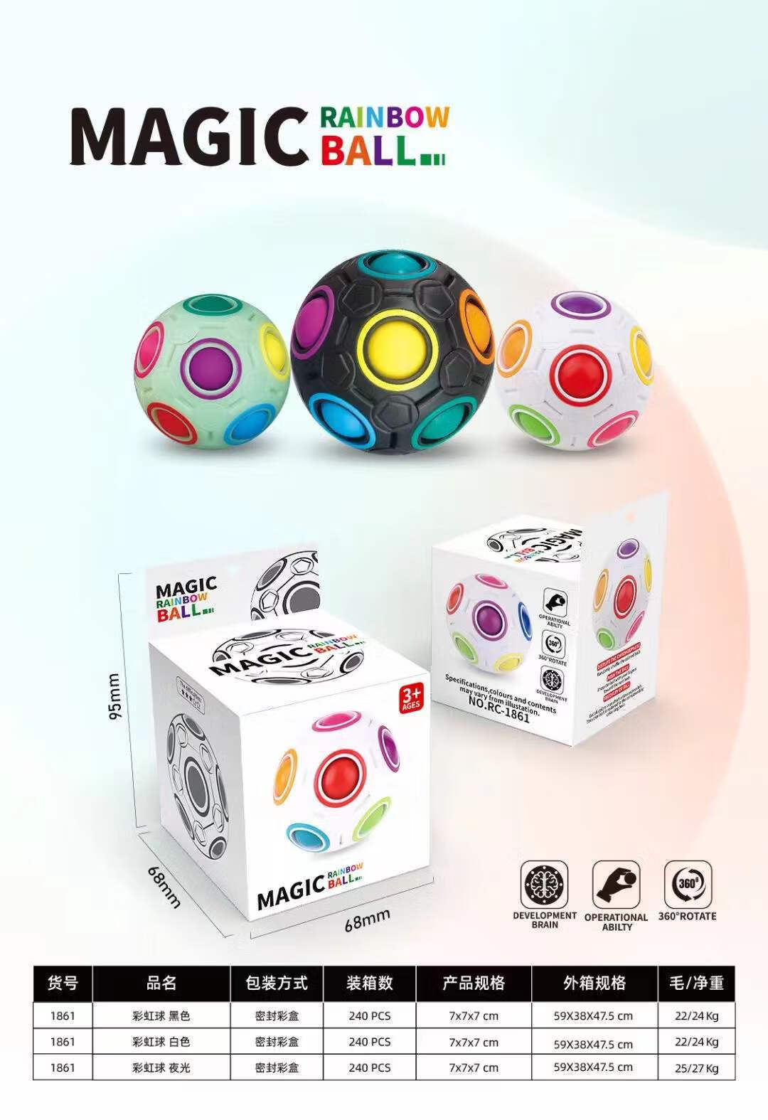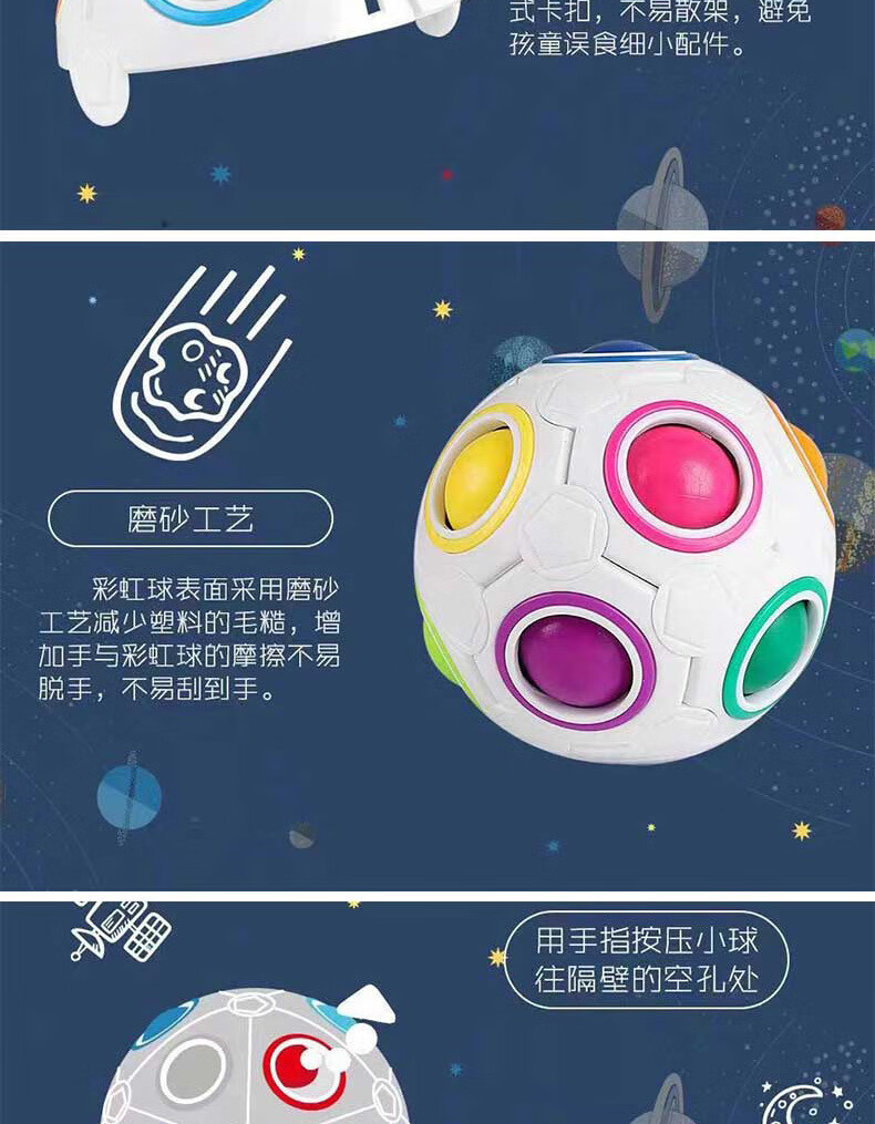 Educational small football toy 12-hole ball stress-reducing intellectual press toy Fingertip Rubik's Cube Magic Rainbow Black 12-hole ball