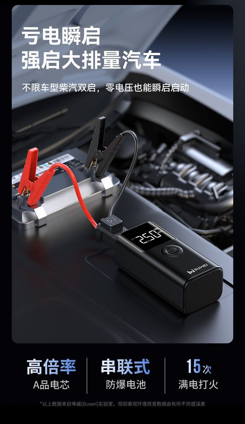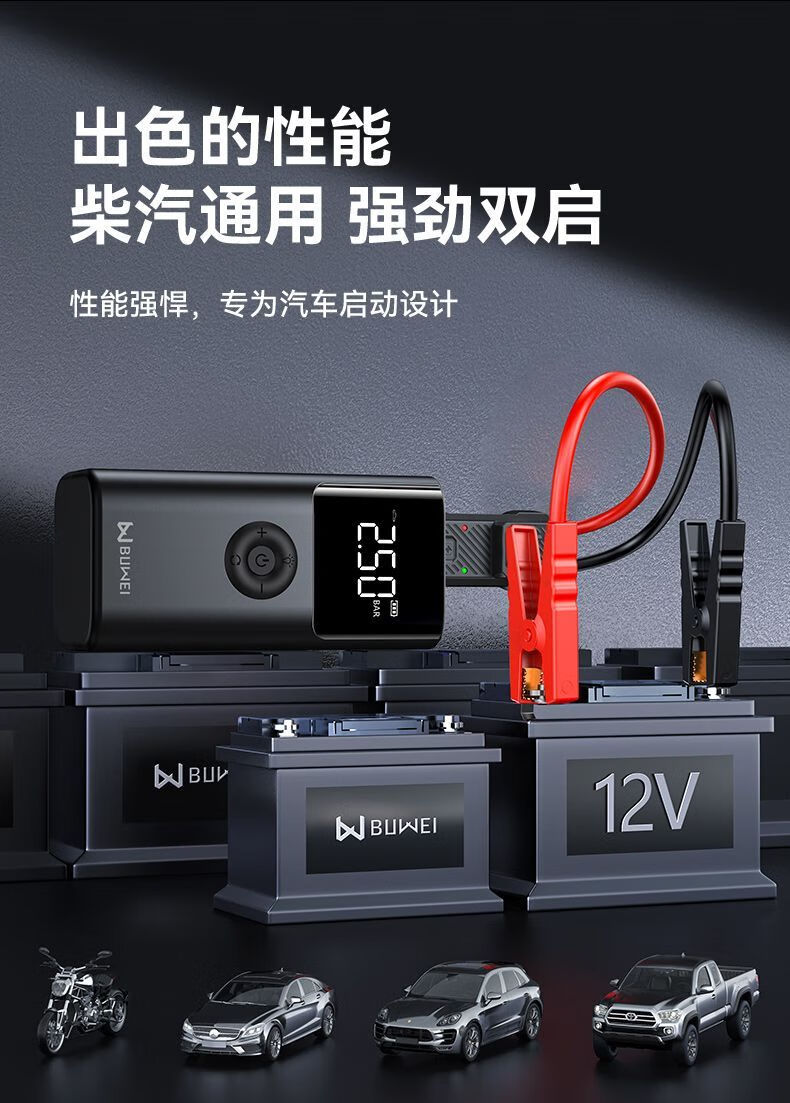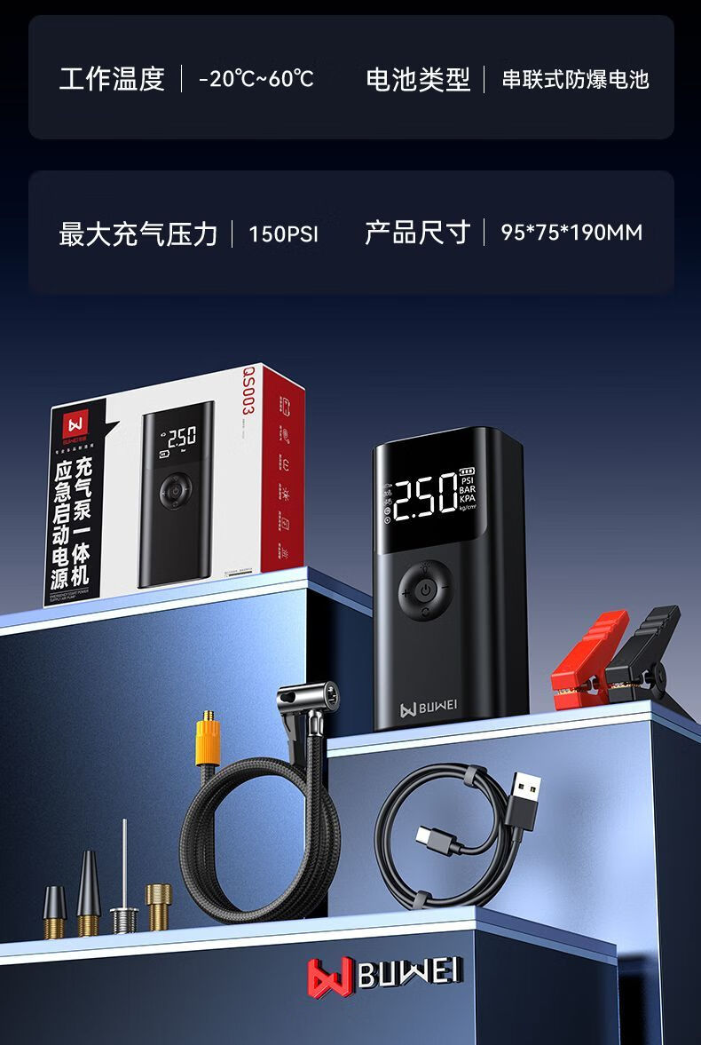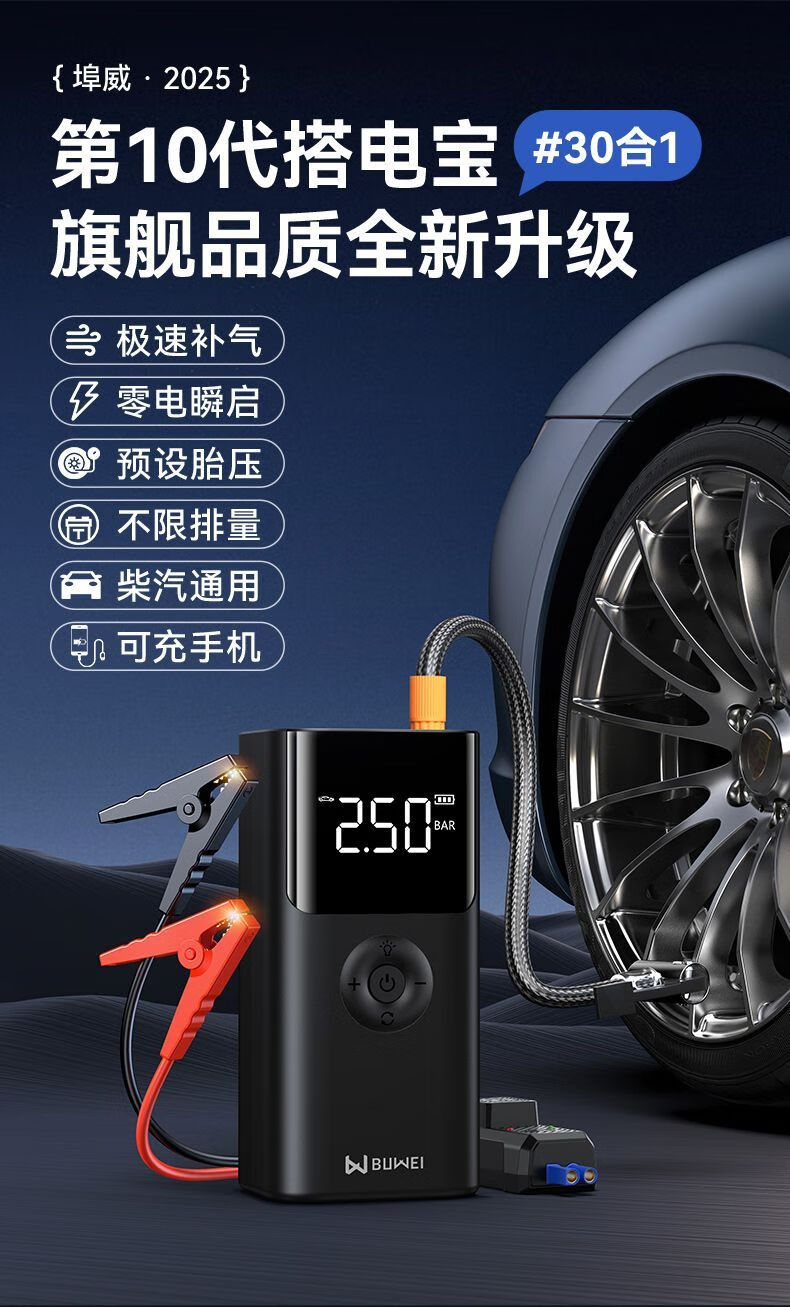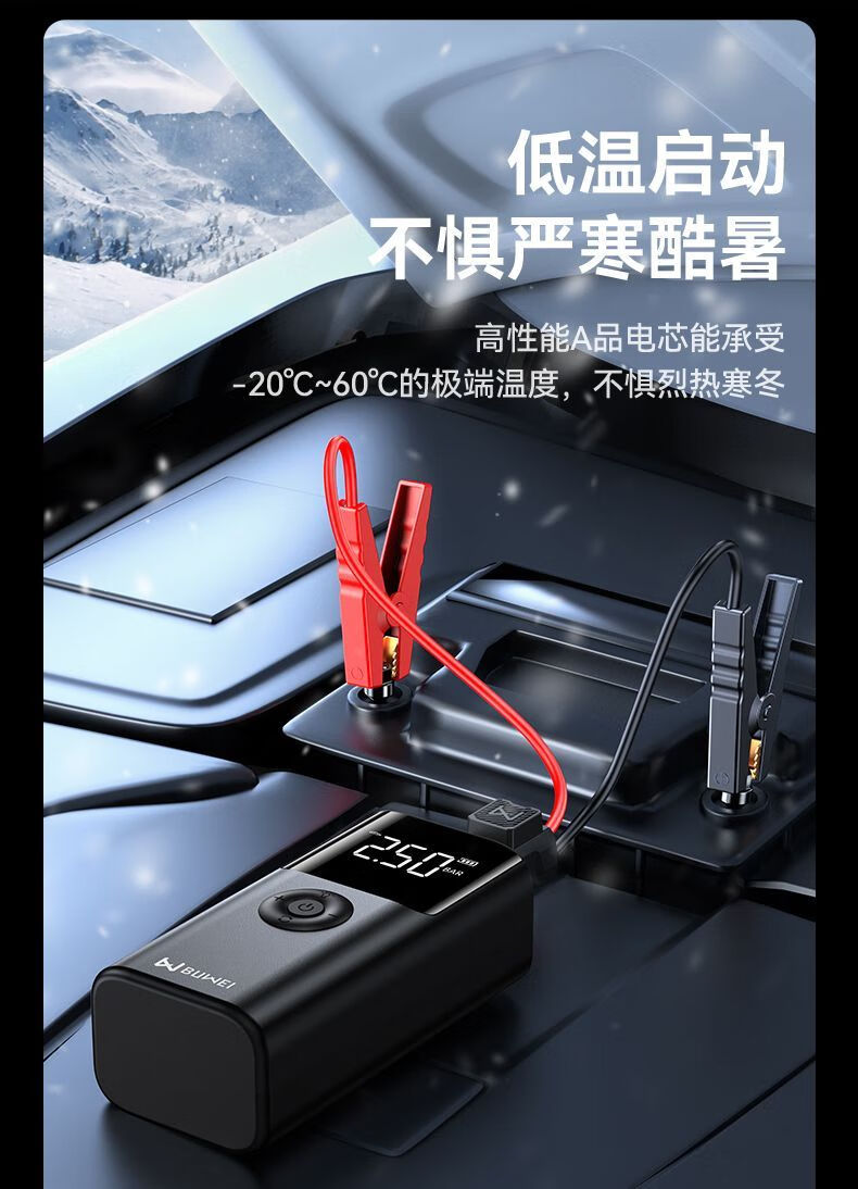 BUWEI car emergency starting power supply car air pump multi-functional all-in-one machine 12V powerful power bank silver emergency power supply + air pump unlimited discharge