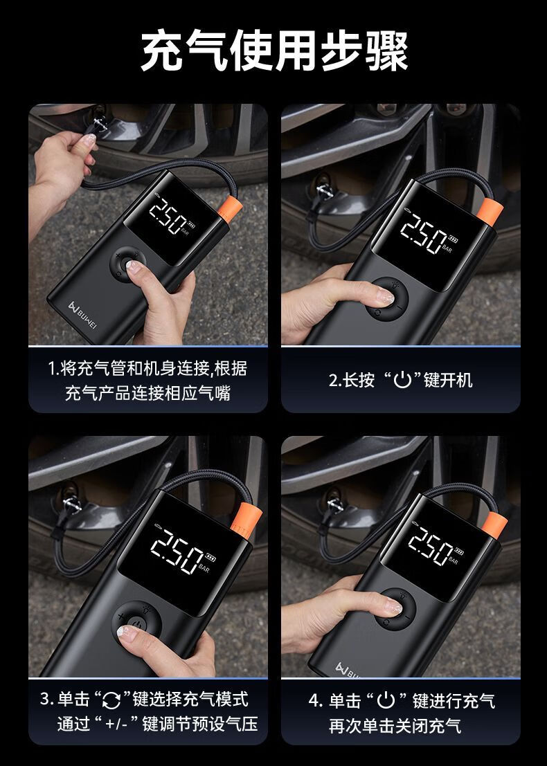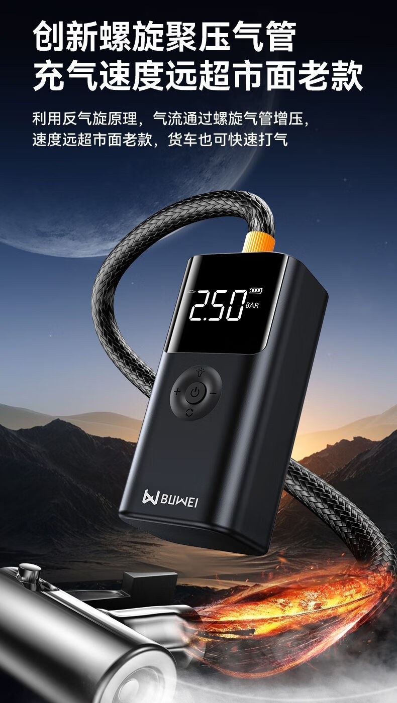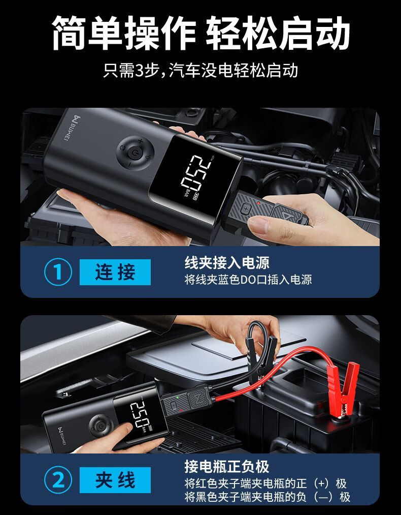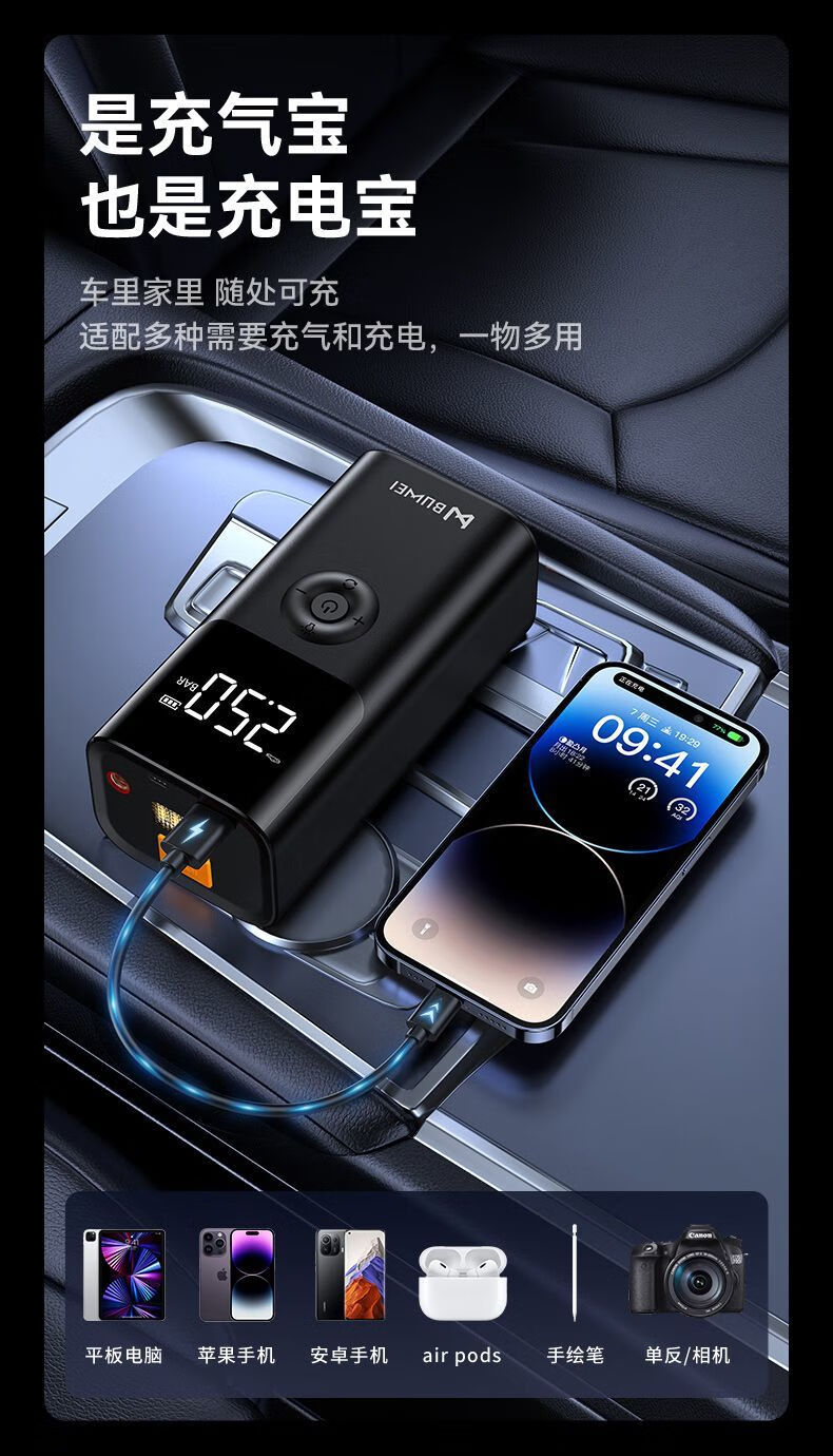 BUWEI car emergency starting power supply car air pump multi-functional all-in-one machine 12V powerful power bank silver emergency power supply + air pump unlimited discharge