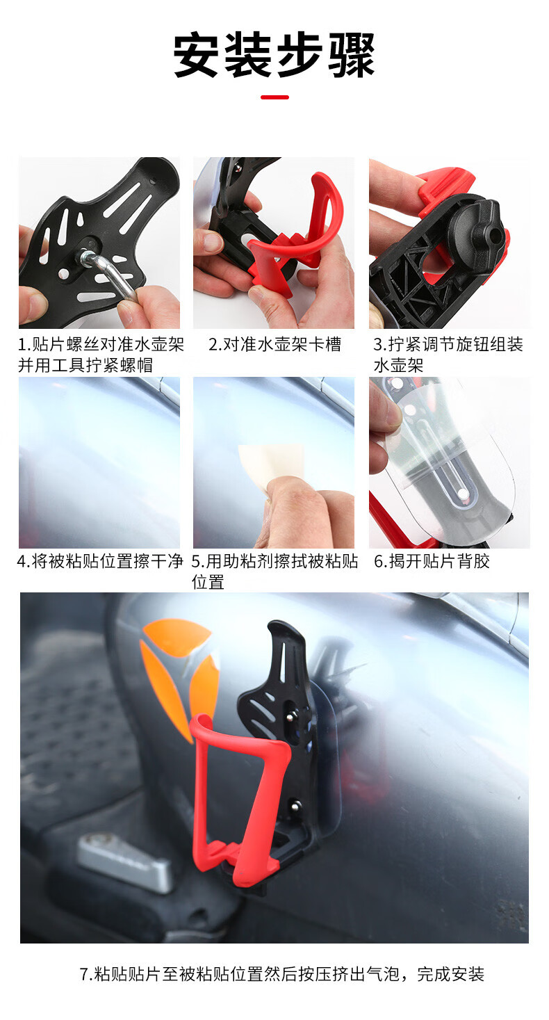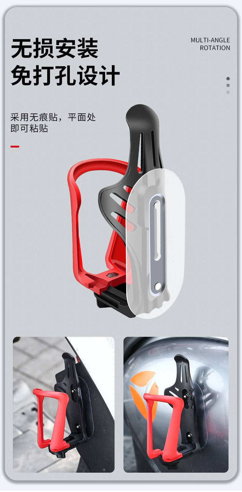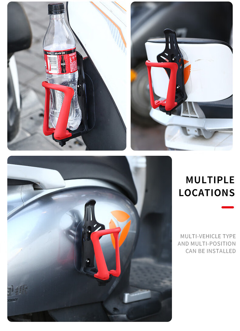 Drilling technology without punching pedal battery motorcycle special water cup holder electric bicycle water bottle holder universal for cycling motorcycle travel stainless steel U-shaped cup holder black and red