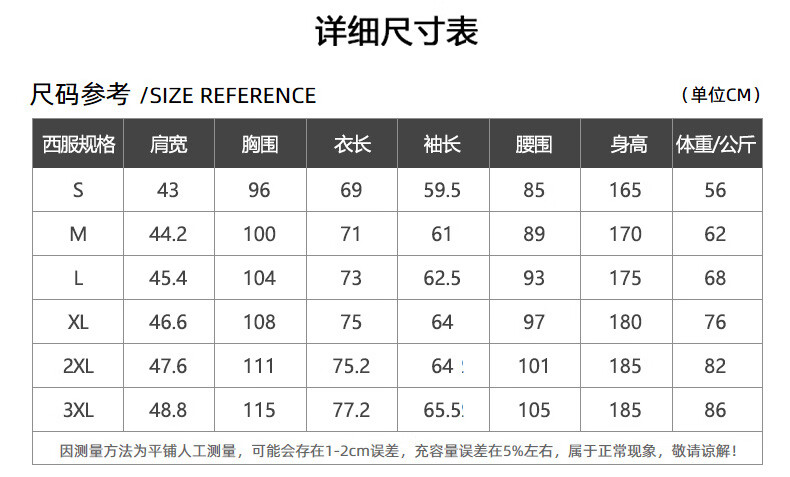 China (cm) 165 / 88-90 170 / 96-98 175 / 108-110 180 / 118-122 185 / 126-130