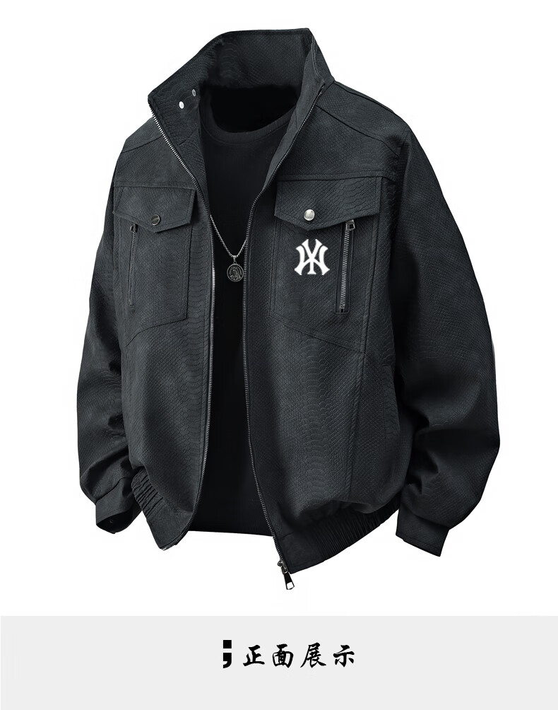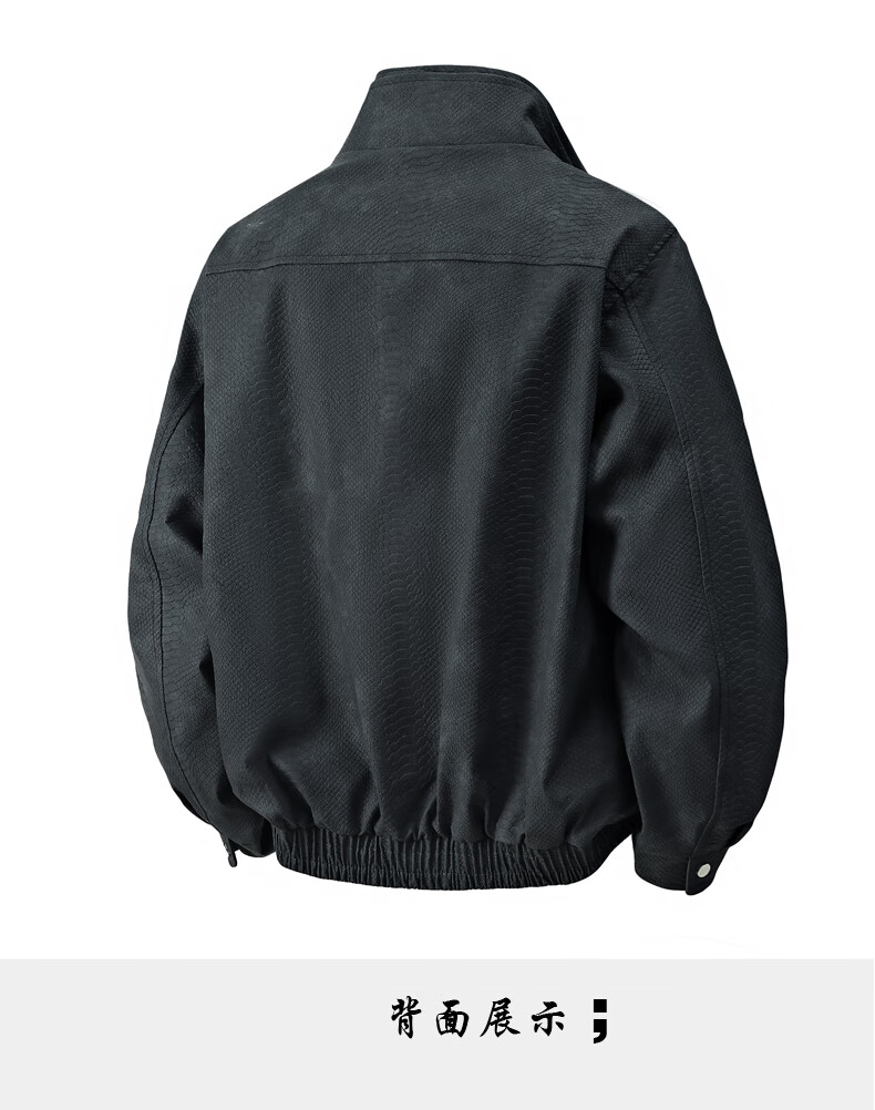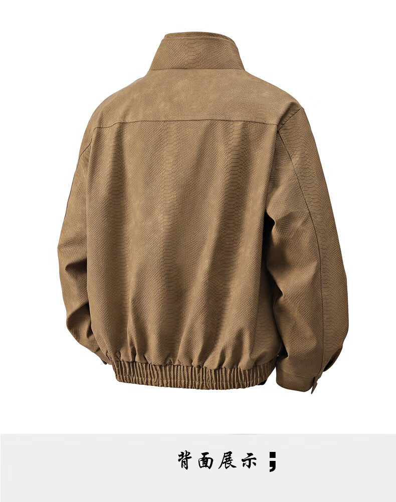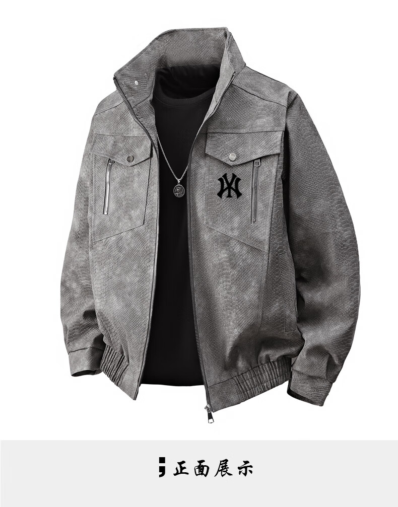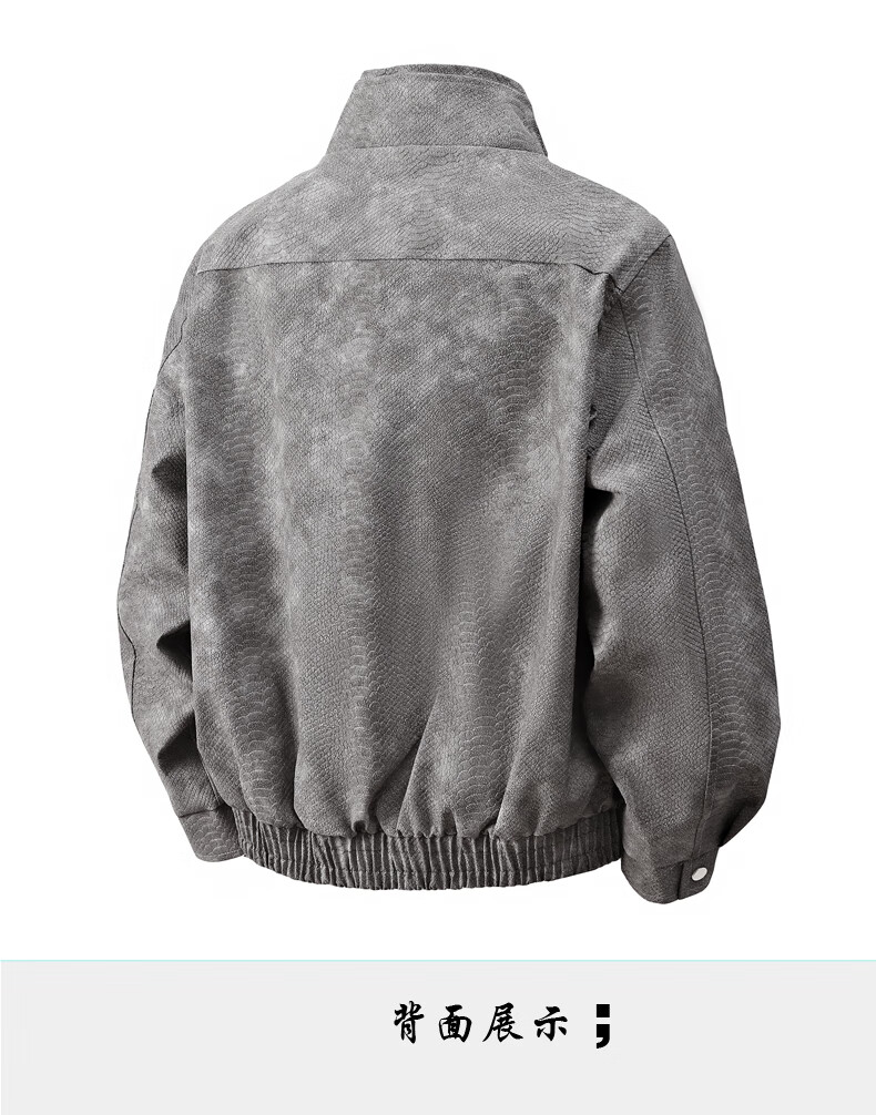 GUOCILRN American fashion brand jacket men's autumn and winter large size casual loose stand-up collar baseball uniform crocodile pattern leather jacket for men gray (NE01) 2XL (recommended weight 135-155Jin Jin equals 0.5 kg)