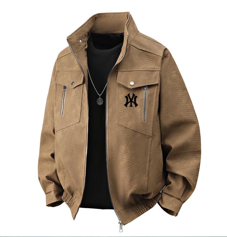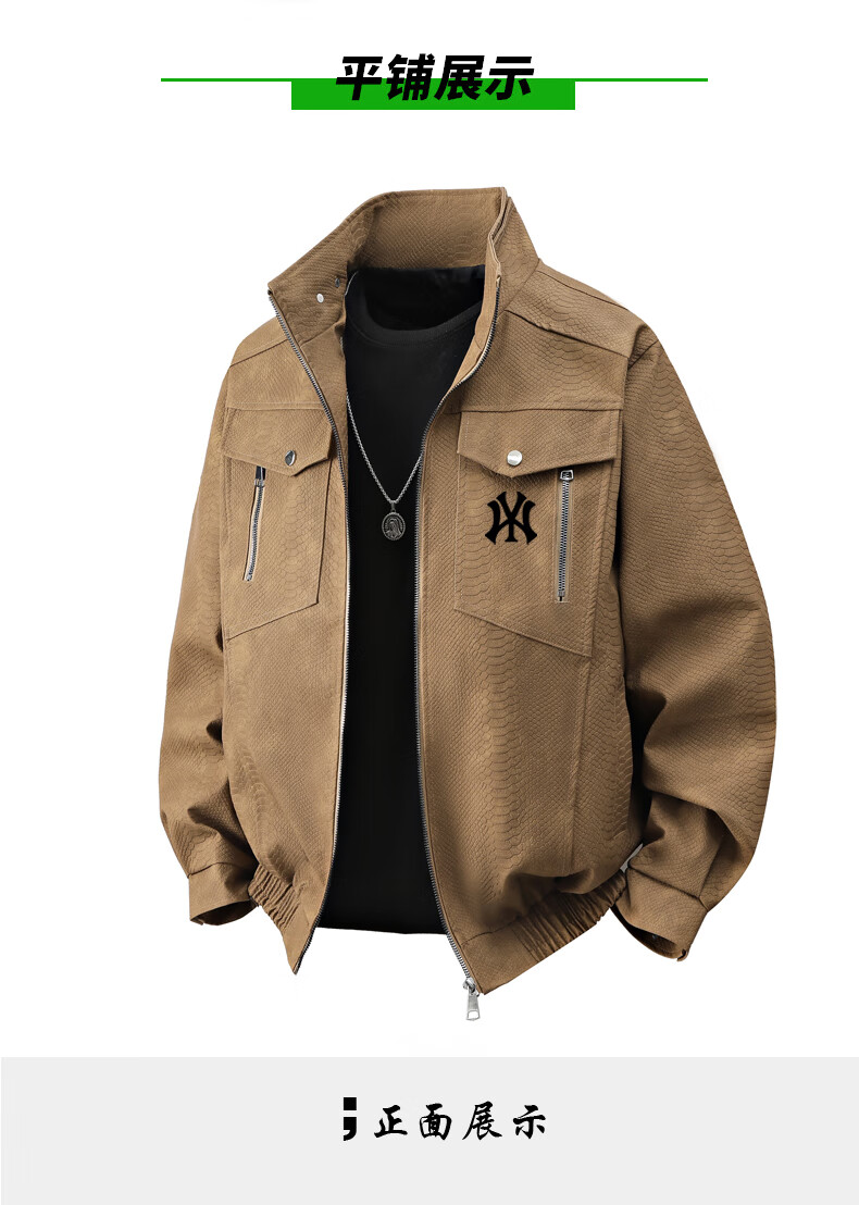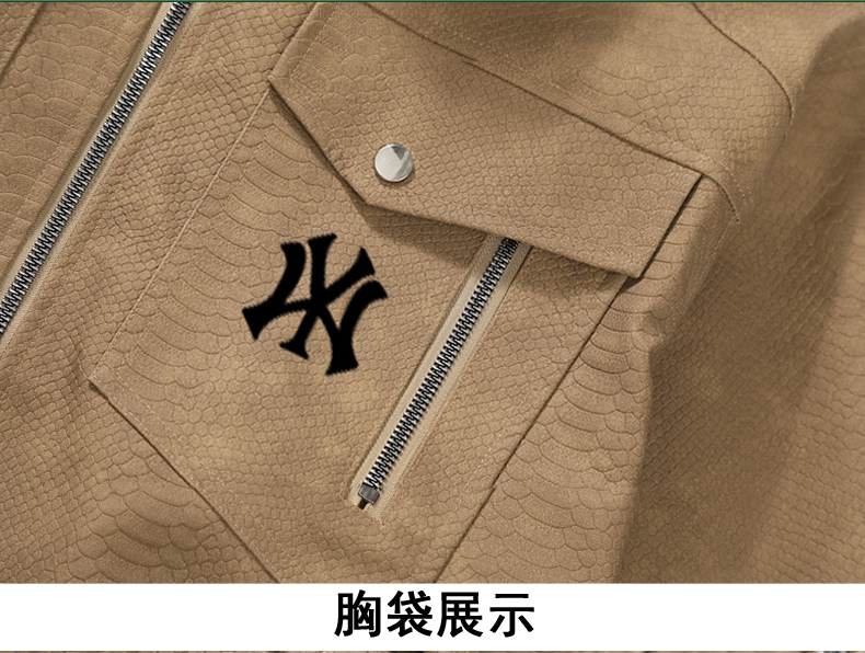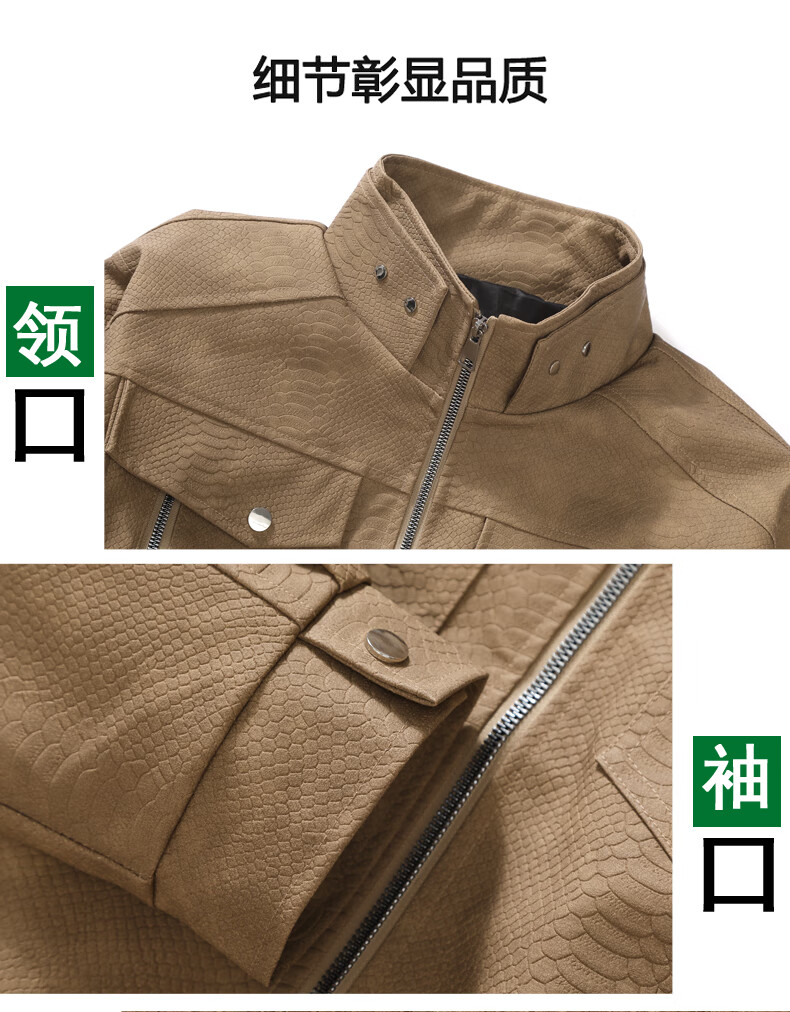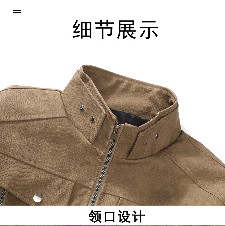 GUOCILRN American fashion brand jacket men's autumn and winter large size casual loose stand-up collar baseball uniform crocodile pattern leather jacket for men gray (NE01) 2XL (recommended weight 135-155Jin Jin equals 0.5 kg)
