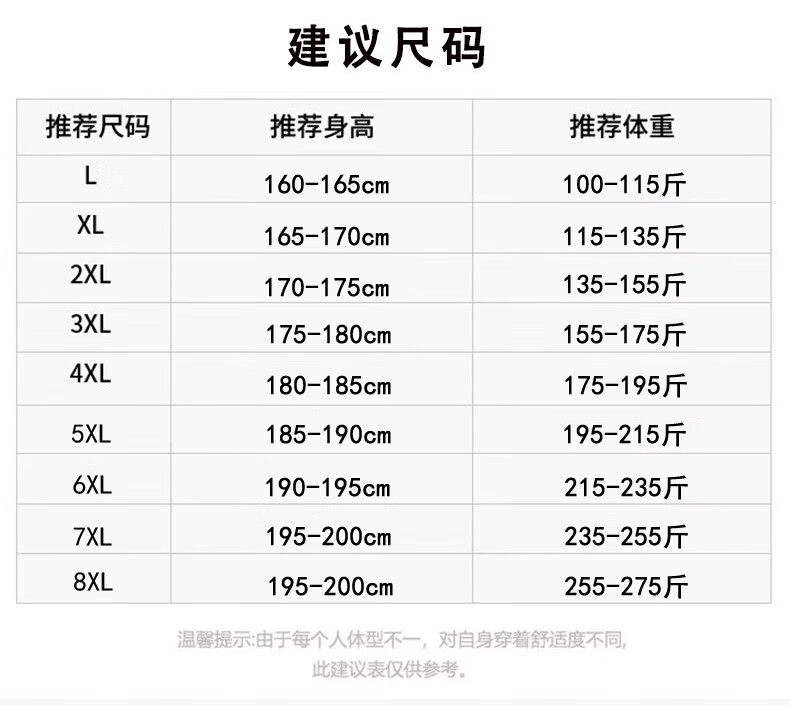 China (cm) 165 / 88-90 170 / 96-98 175 / 108-110 180 / 118-122 185 / 126-130
