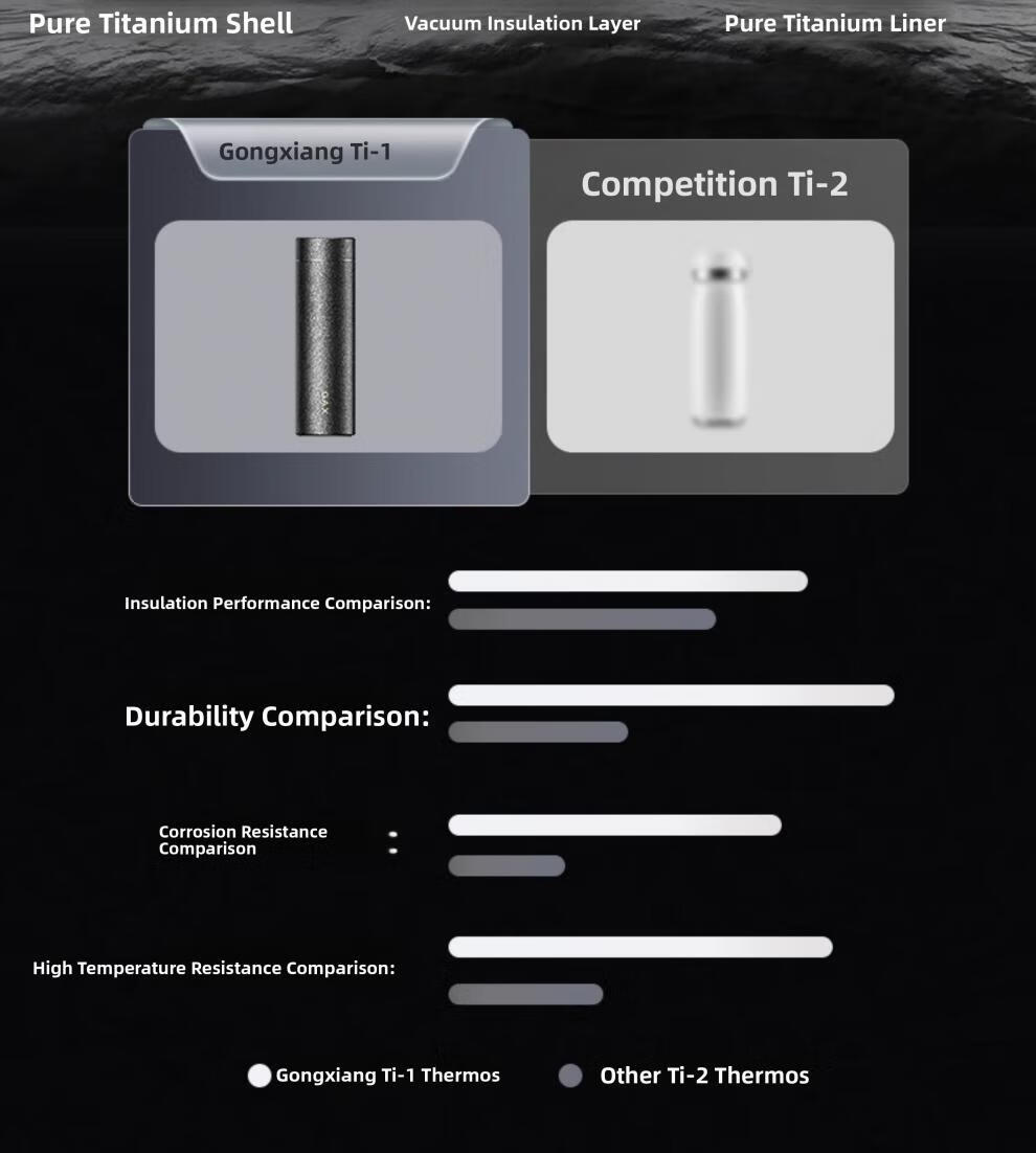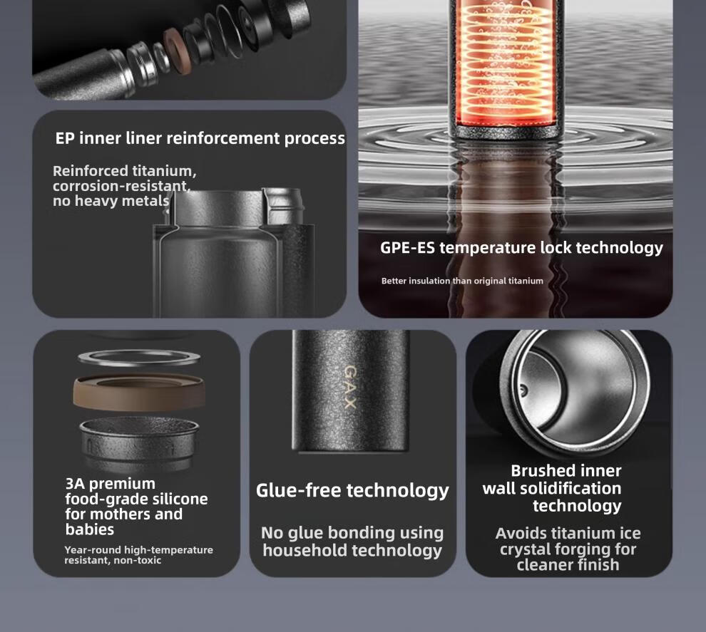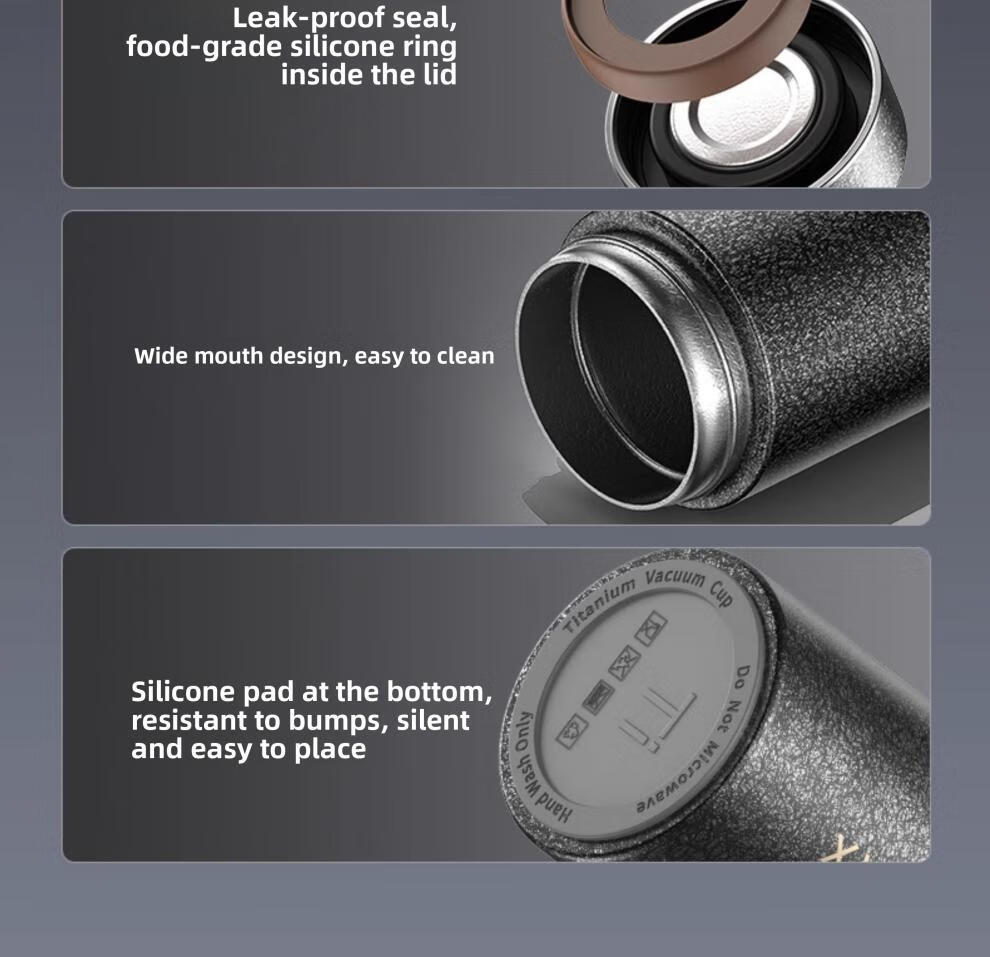 Gong Ling Titanium Cup Pure Titanium Insulated Cup for Men and Women Separating Tea and Water for Tea Cup Insulation and Freshness Preventing Odor Business Gifting Pure Titanium Black - EU Certified Safety Model