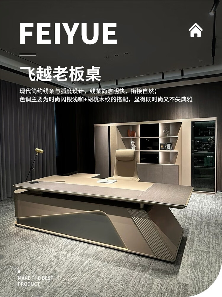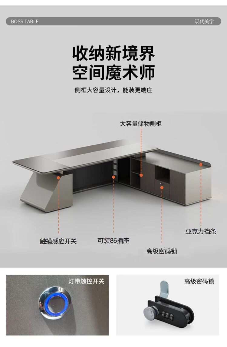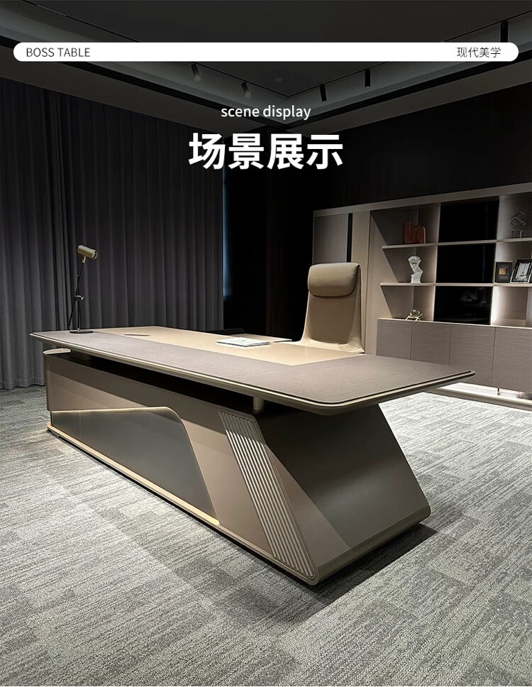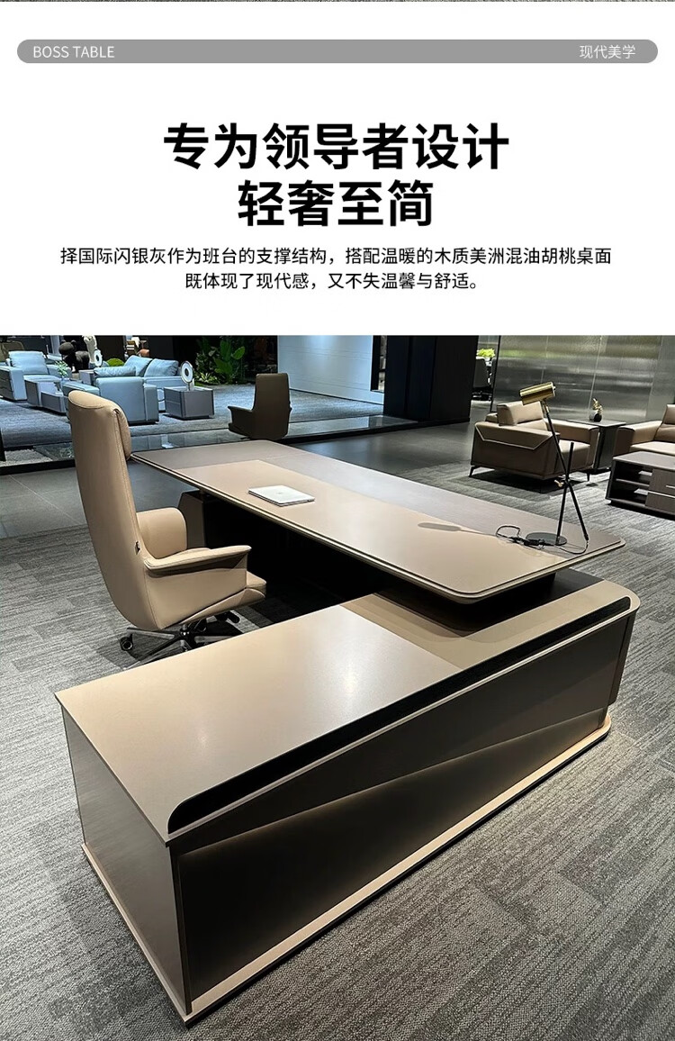 Boss desk office desk light luxury simple modern desk office desk office desk and chair combination manager desk president desk 2.0 meters left side cabinet-American Walnut