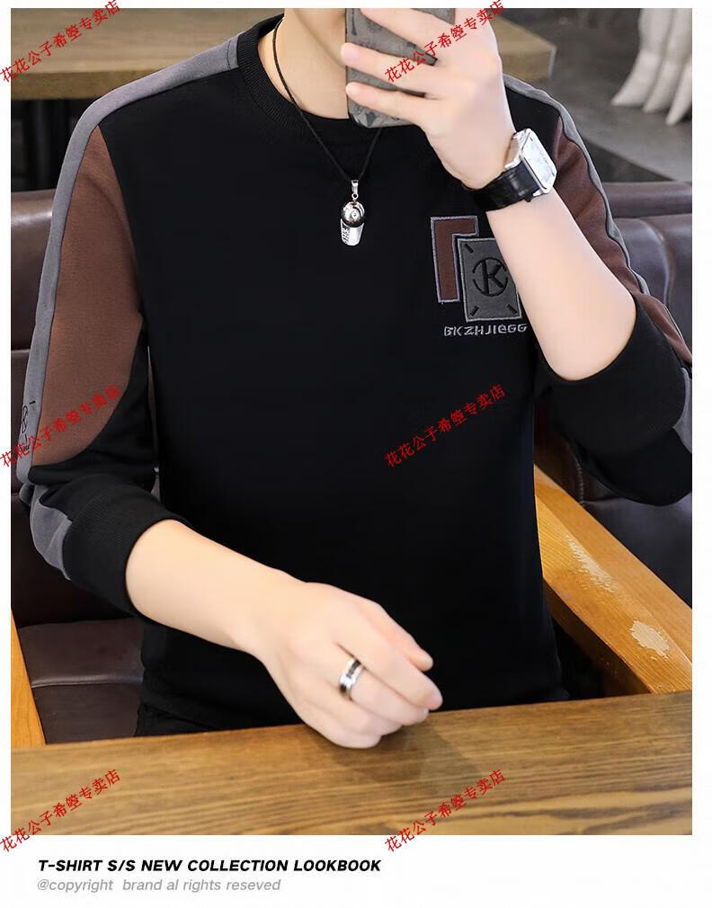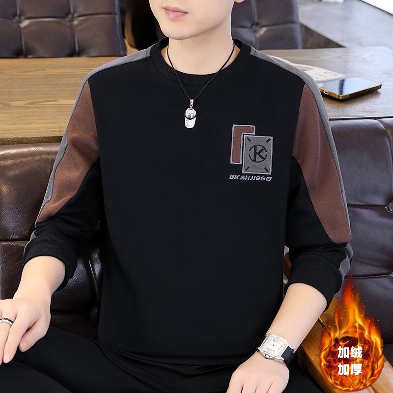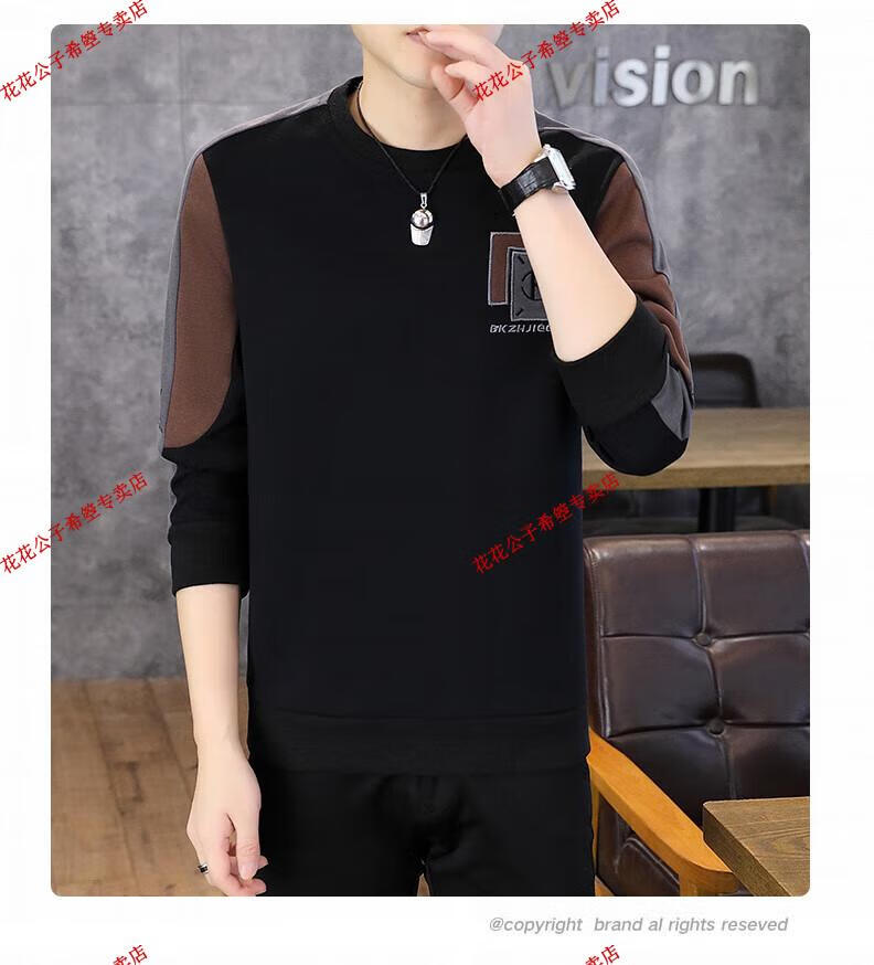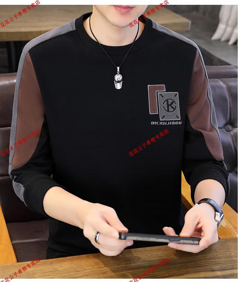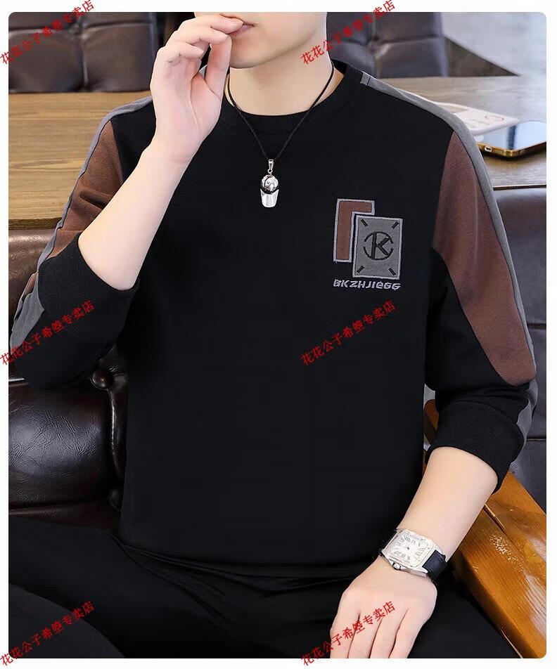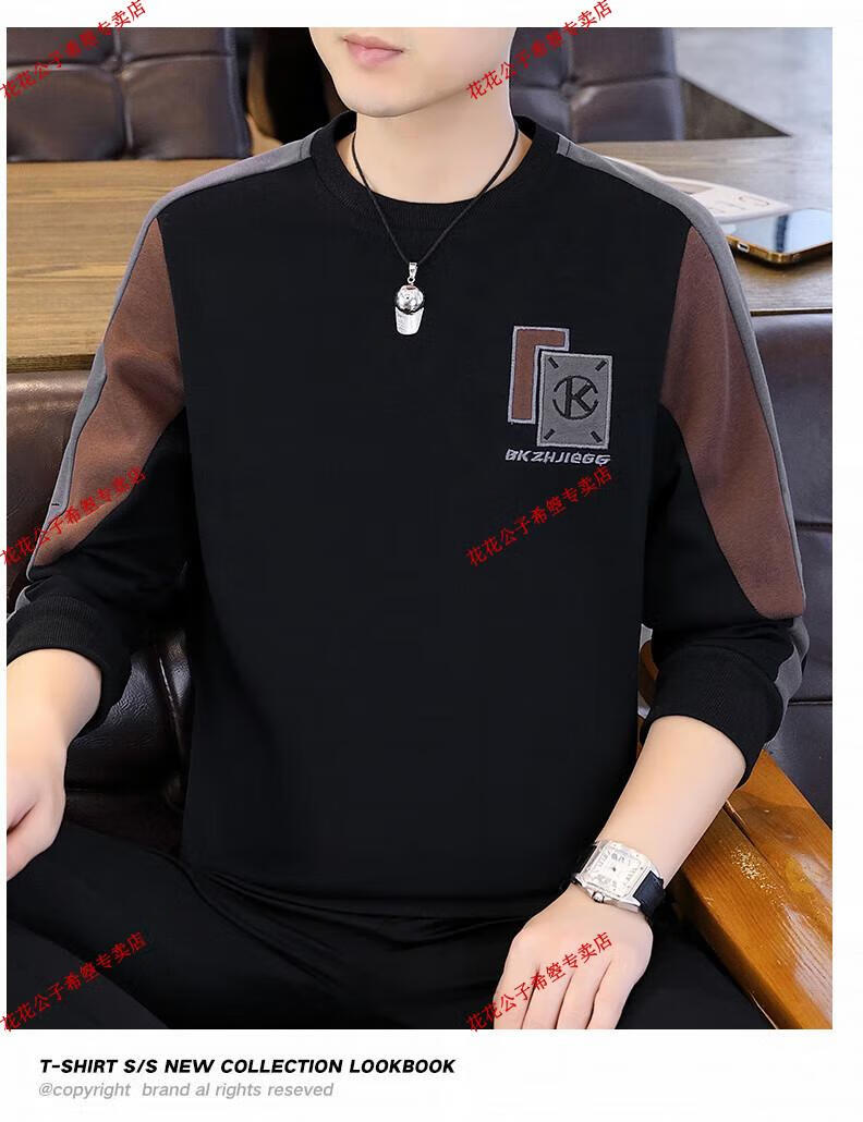 Playboy Spring and Autumn Men's Sweatshirt 2026 New Round Neck Hoodless Embroidered Long Sleeve T-shirt Men's Trendy and Handsome Bottoming Top Spring and Autumn Style-8822 Black High Quality XL Recommended 130-150Jin Jin is equal to 0.5 kg