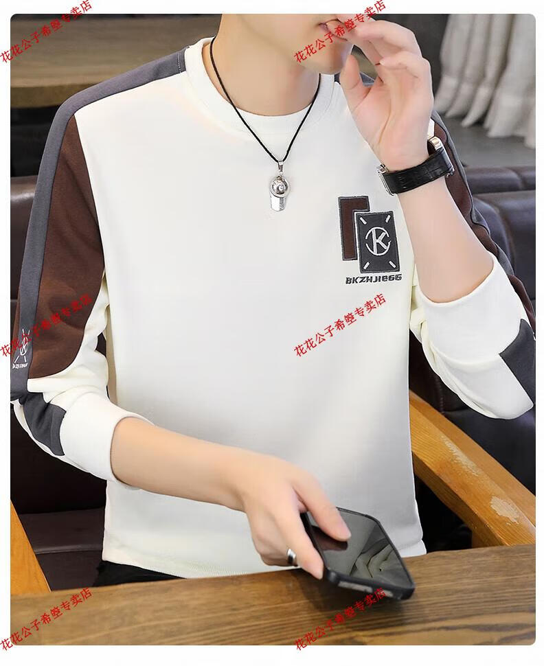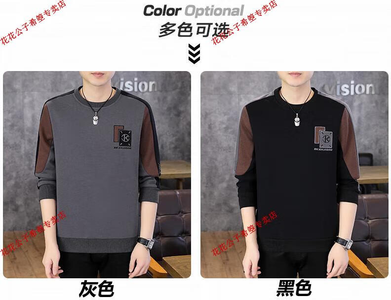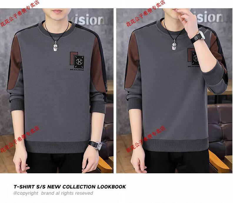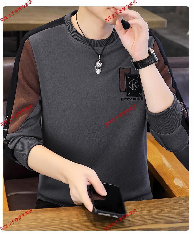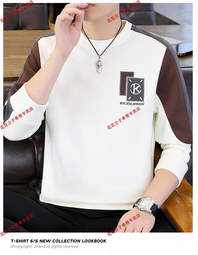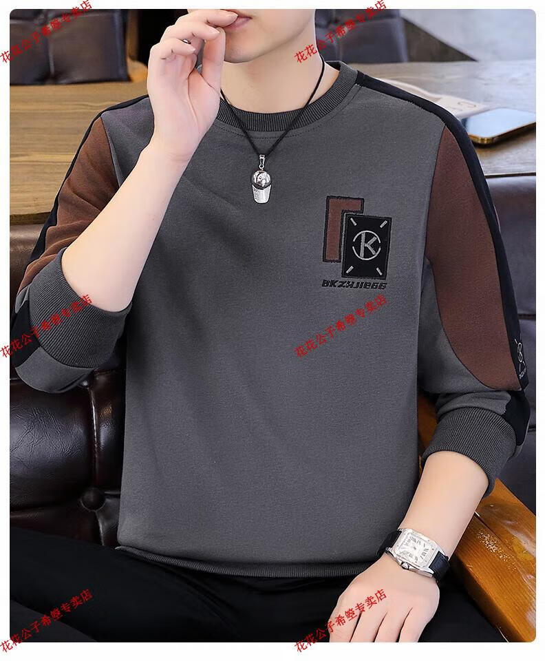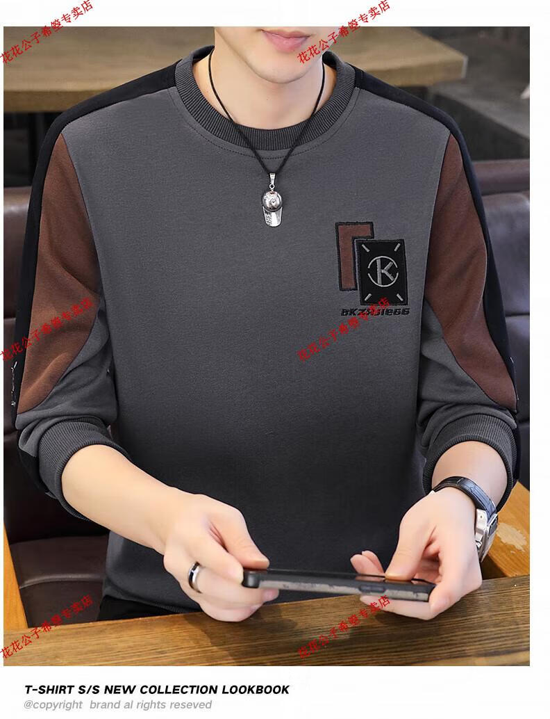 Playboy Spring and Autumn Men's Sweatshirt 2026 New Round Neck Hoodless Embroidered Long Sleeve T-shirt Men's Trendy and Handsome Bottoming Top Spring and Autumn Style-8822 Black High Quality XL Recommended 130-150Jin Jin is equal to 0.5 kg