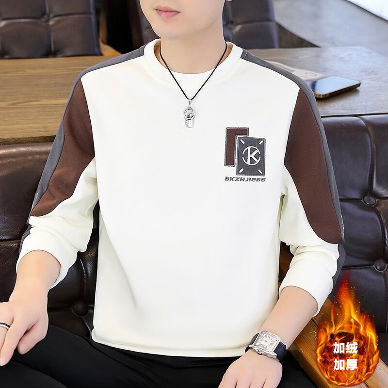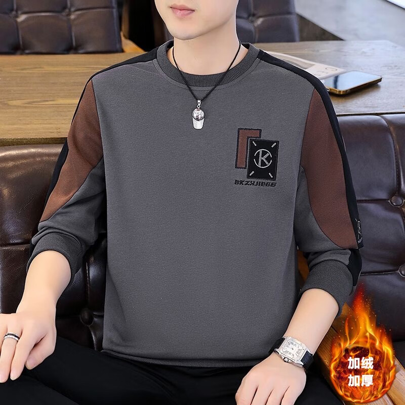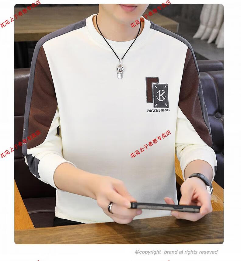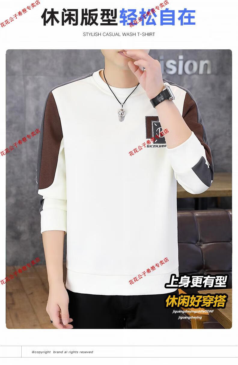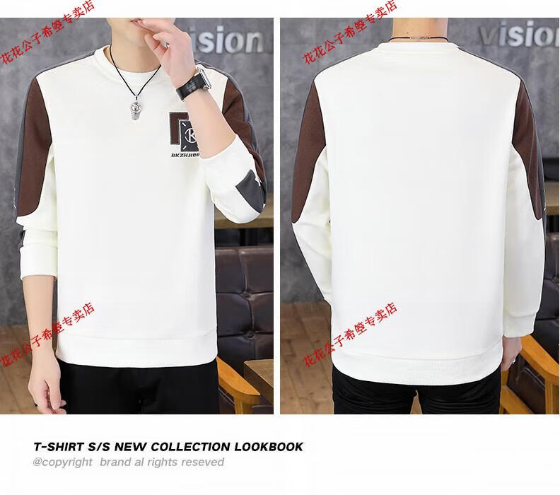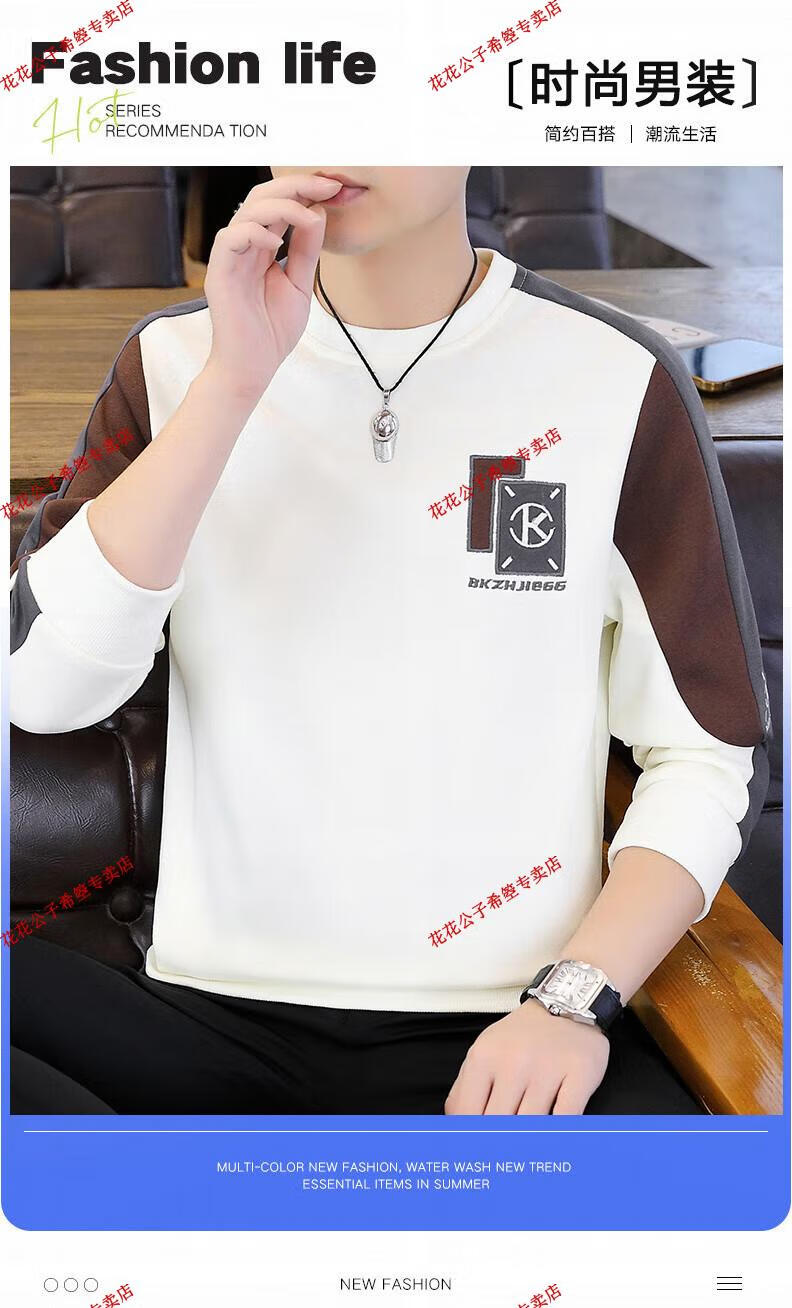Playboy Spring and Autumn Men's Sweatshirt 2026 New Round Neck Hoodless Embroidered Long Sleeve T-shirt Men's Trendy and Handsome Bottoming Top Spring and Autumn Style-8822 Black High Quality XL Recommended 130-150Jin Jin is equal to 0.5 kg