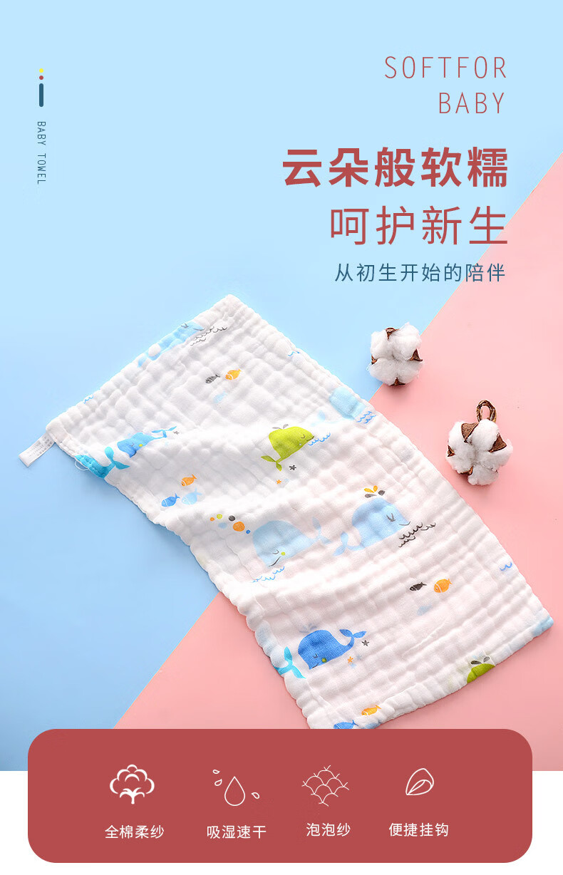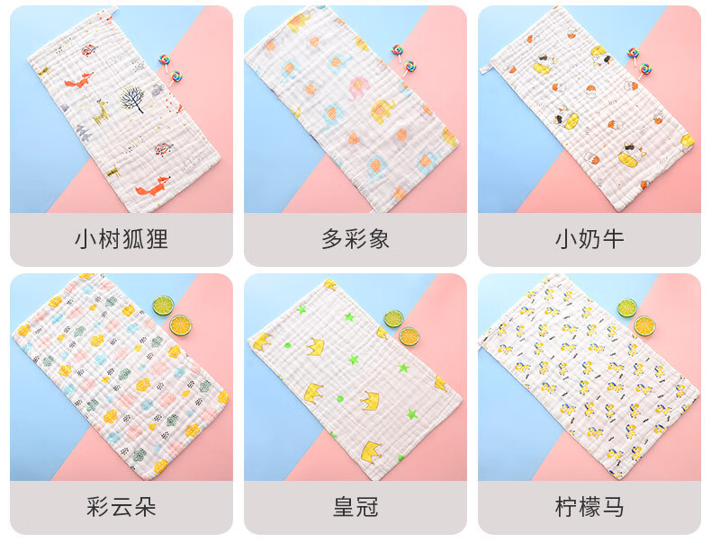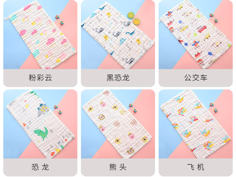 Pure cotton six-layer gauze printed high-density handkerchief children's towel 25*50cm super soft newborn face towel 3 pack pure cotton 25*50cm 6 layers
