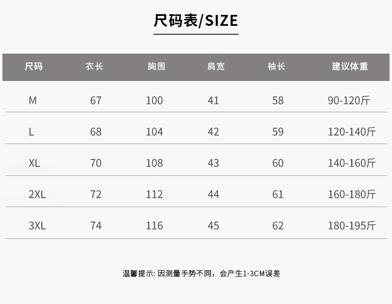 China (cm) 165 / 88-90 170 / 96-98 175 / 108-110 180 / 118-122 185 / 126-130