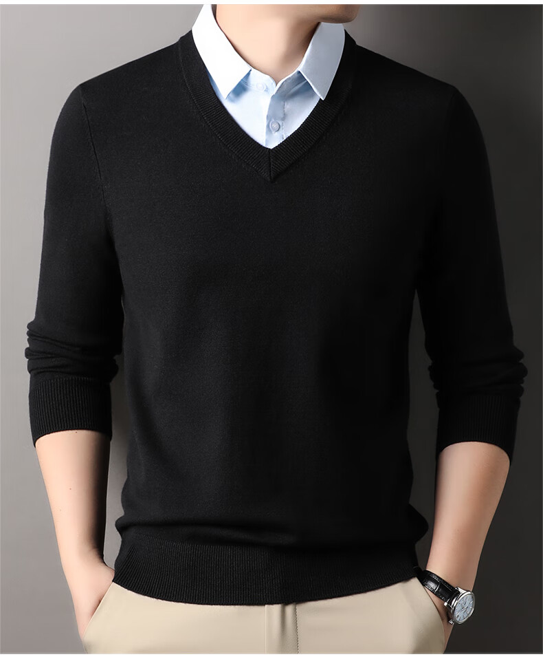 Playboy Men's Fashion Shirt Lapel Fake Two-Piece Sweater 2026 Spring and Autumn New Thick Business Versatile Casual Sweater Black Thickened CJ017 L 120-140Jin Jin equals 0.5 kg