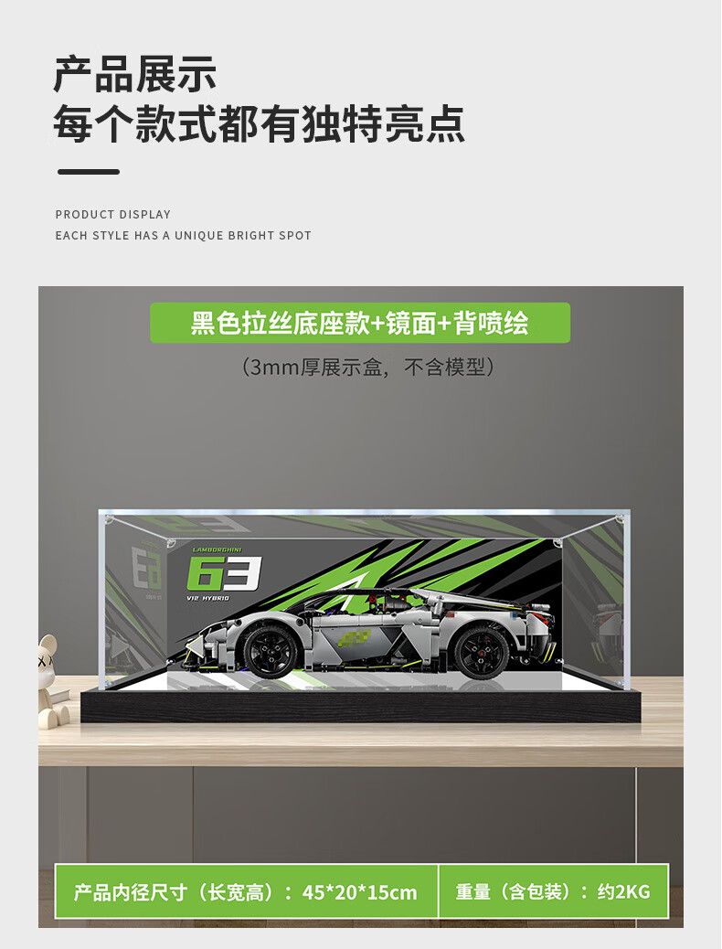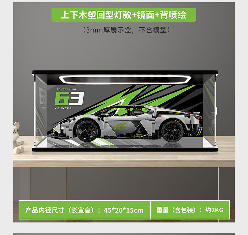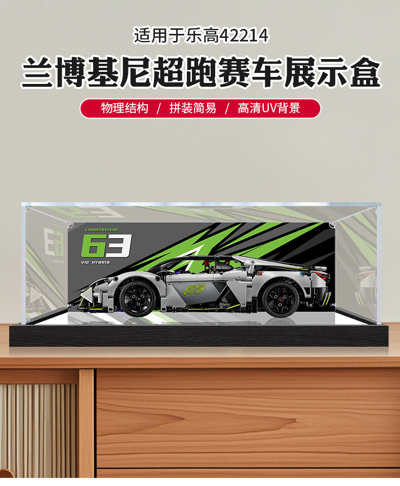 Lingzhi is suitable for LEGO 42214 Lamborghini Revuelto display box supercar storage dust cover boutique black bottom special model