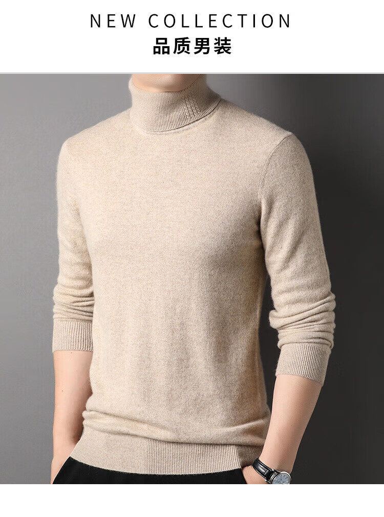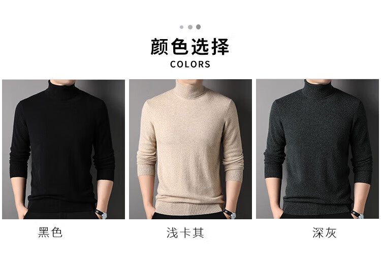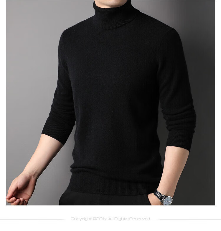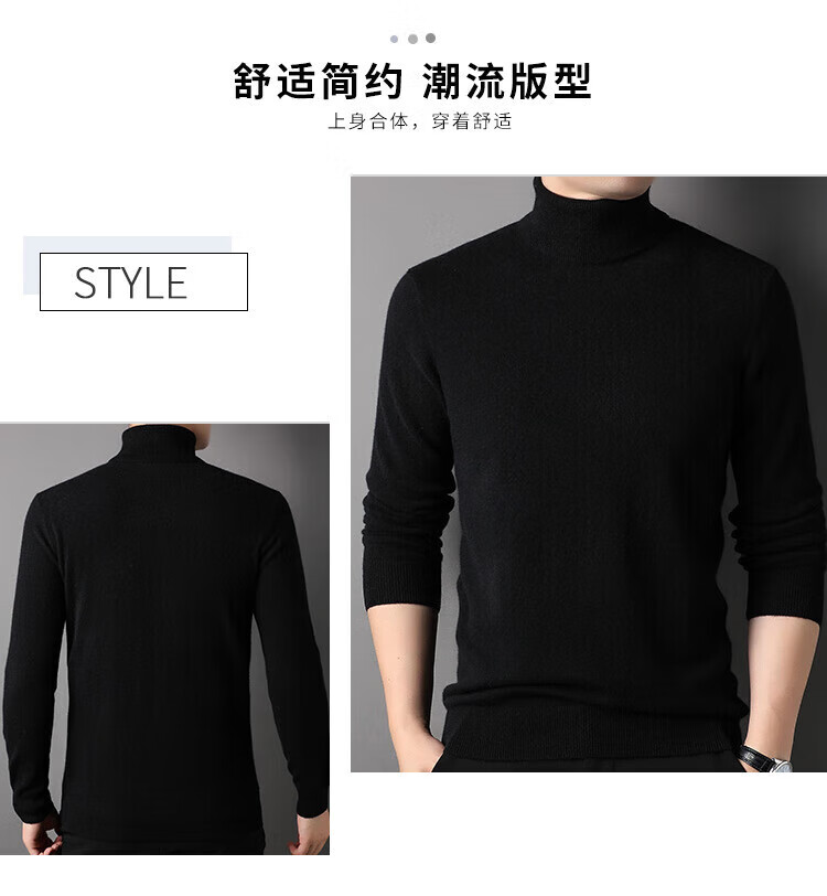 Hengyuanxiang 100% pure cashmere sweater men's winter middle-aged turtleneck thickened sweater solid color simple cashmere bottoming sweater black L 175/50/110