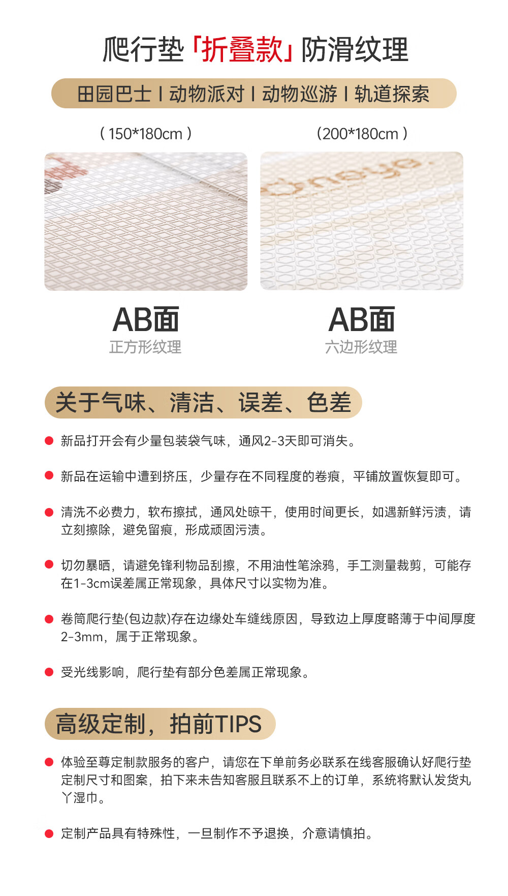 Maruya baby crawling mat baby thickened home crawling mat xpe children's folding mat floor mat animal party 2cm thickness 180*200cm double-sided XPE dual use