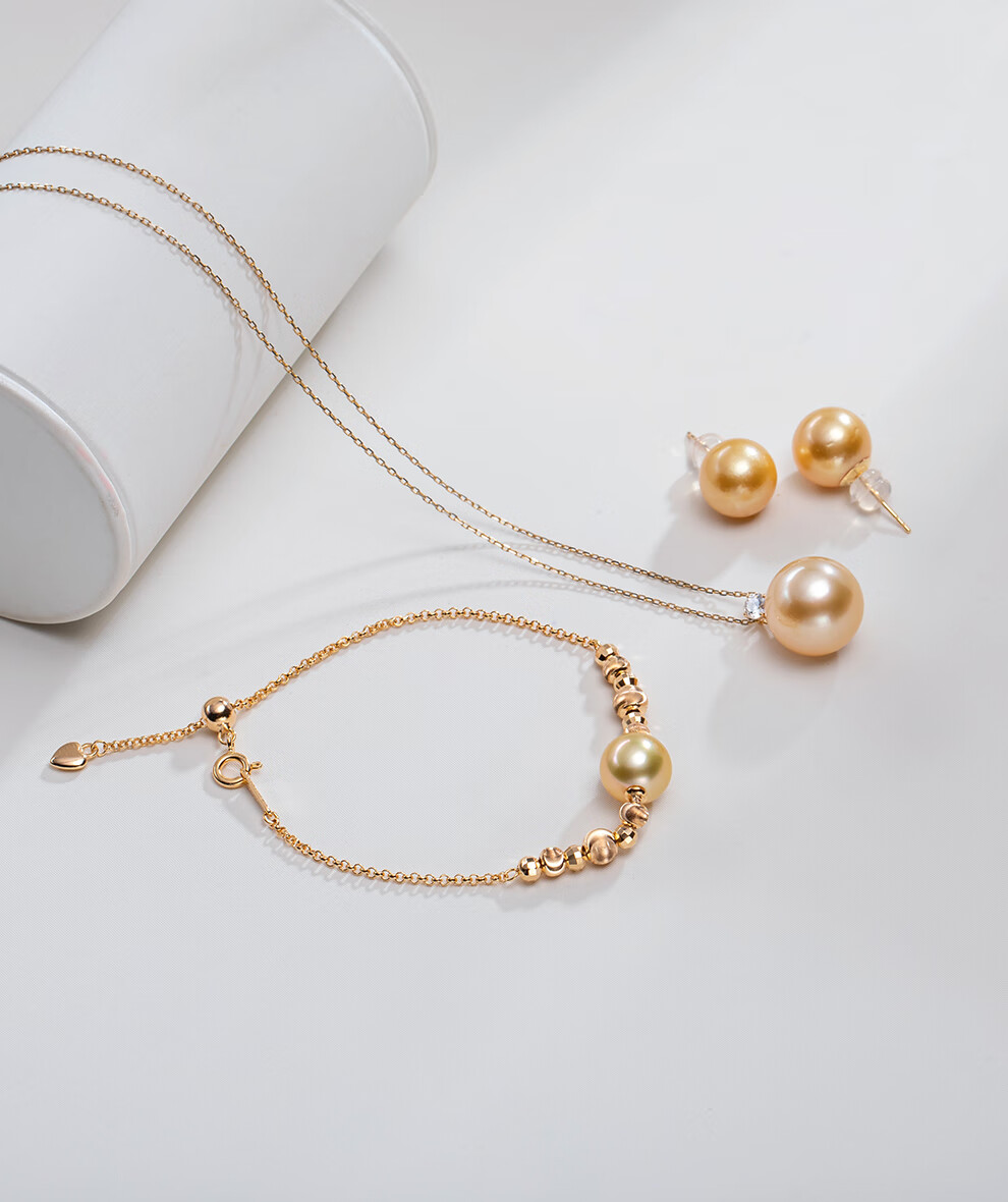 Nanzhu Palace Nanyang Gold Beads Bracelet Pendant Gold Beads High Quality Set Gift Box Elegant and Luxurious Gift Bracelet Pendant Earring Set Gift Box