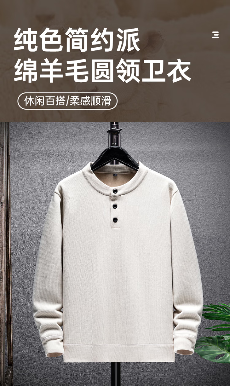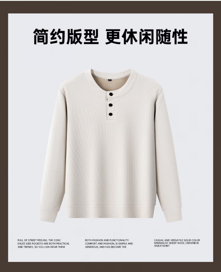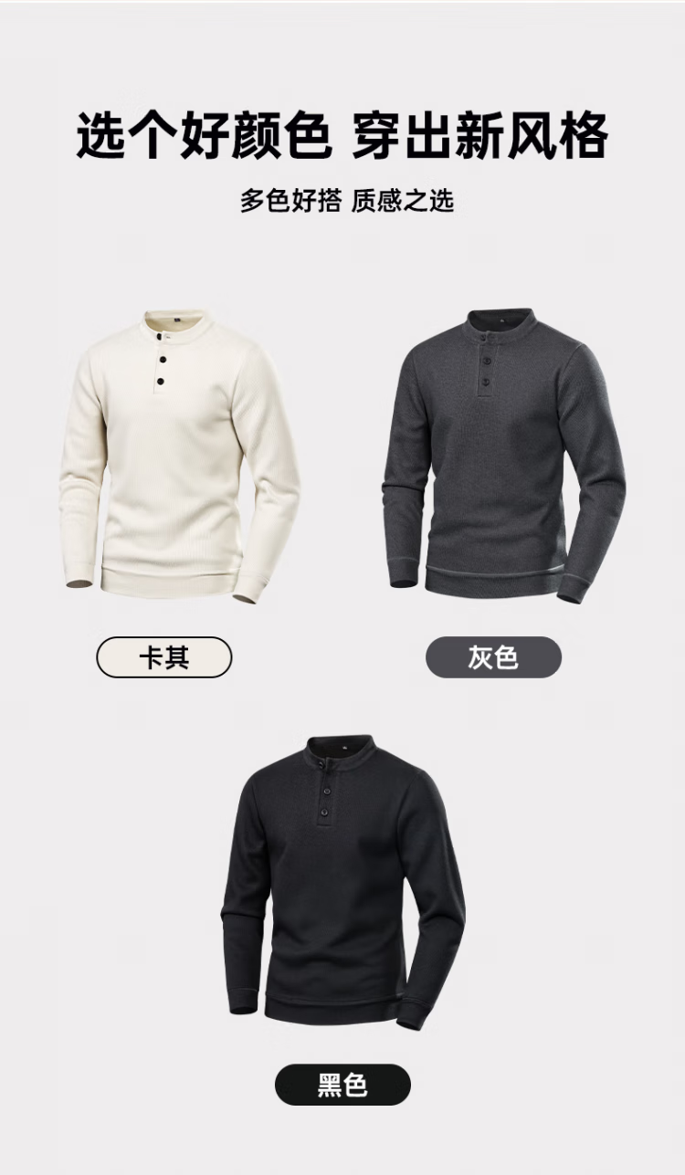 Red bean sheep wool Henry collar sweatshirt for men, spring and autumn trendy casual inner layering shirt, warm knitted sweater for young and middle-aged people, PY39 khaki XL size (180/96A)