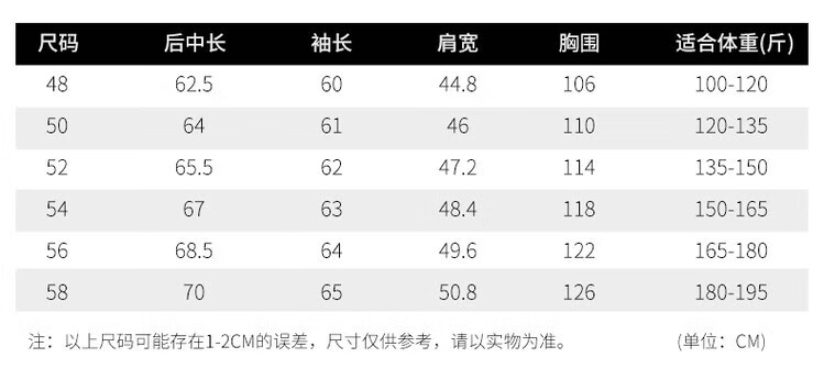 China (cm) 165 / 88-90 170 / 96-98 175 / 108-110 180 / 118-122 185 / 126-130