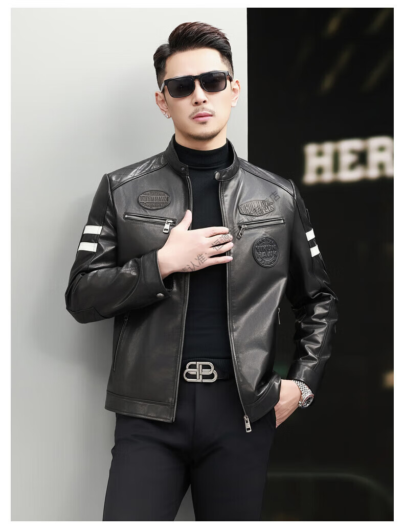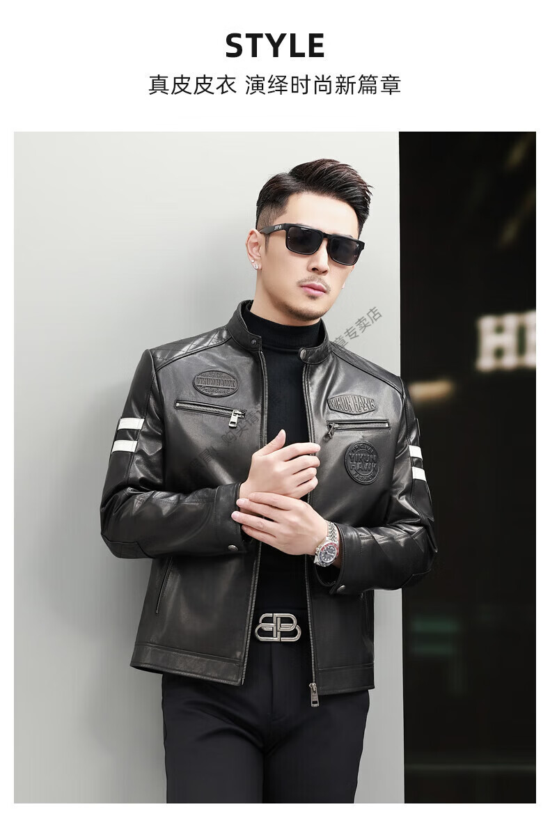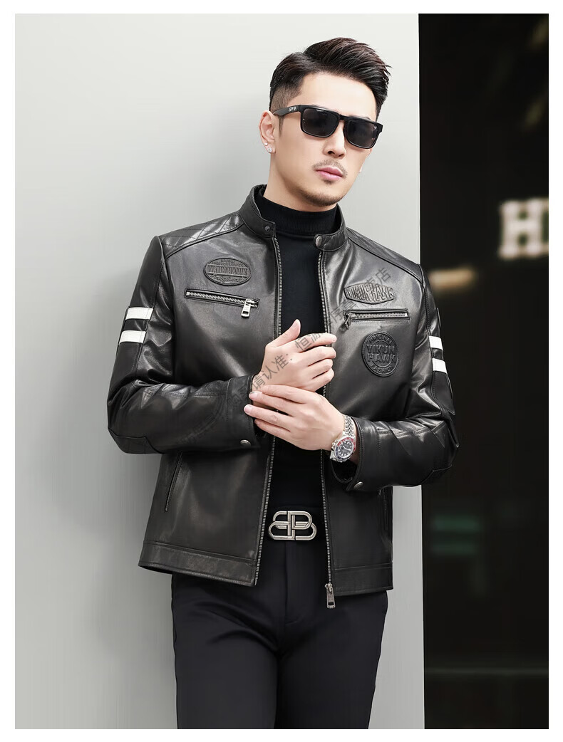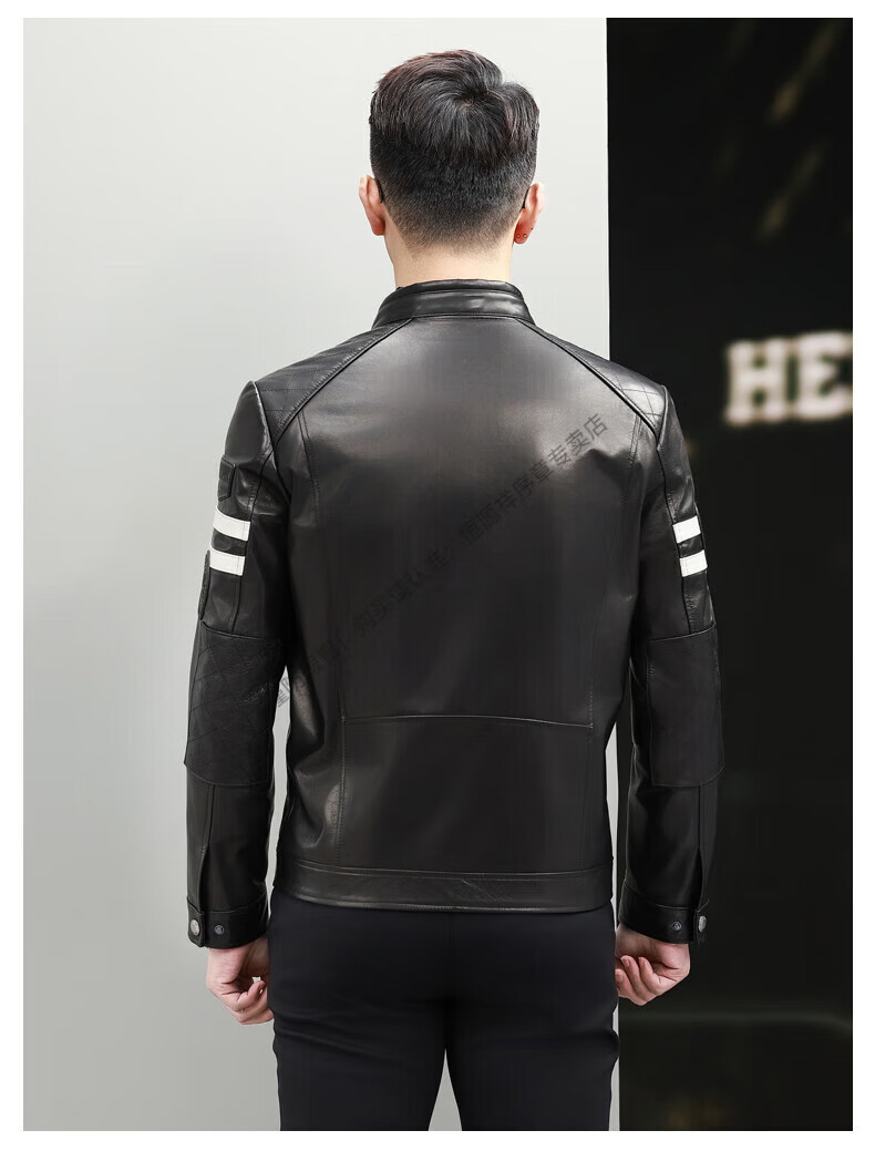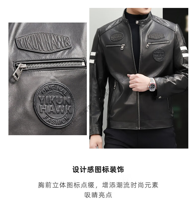 Hengyuanxiang Haining first layer cowhide leather jacket men's leather jacket short stand collar spring and autumn handsome motorcycle riding jacket black regular L 50 125-140Jin Jin equals 0.5 kg