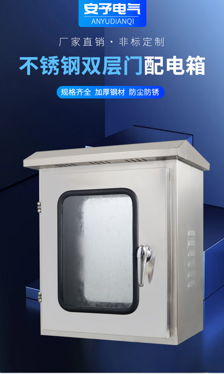 Outdoor 304 stainless steel double door instrument box rainproof button monitoring box 201 distribution box control cabinet IP65 width 500 height 600 depth 250_201