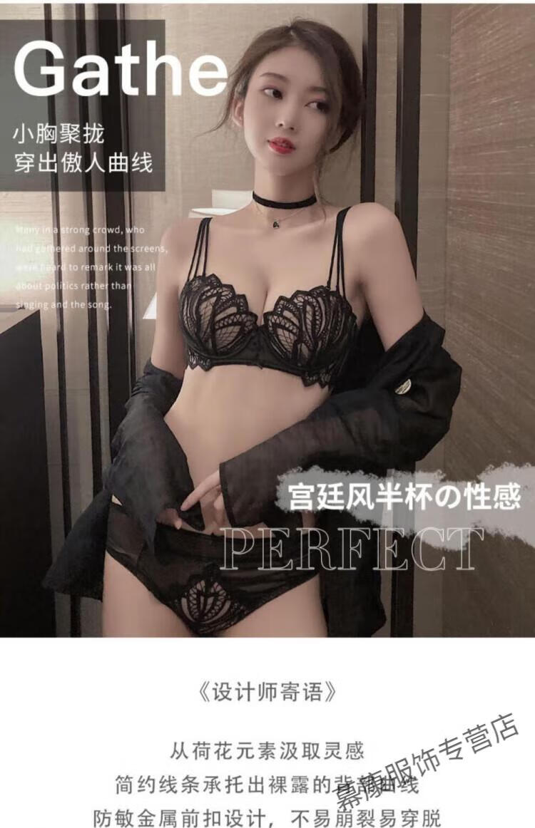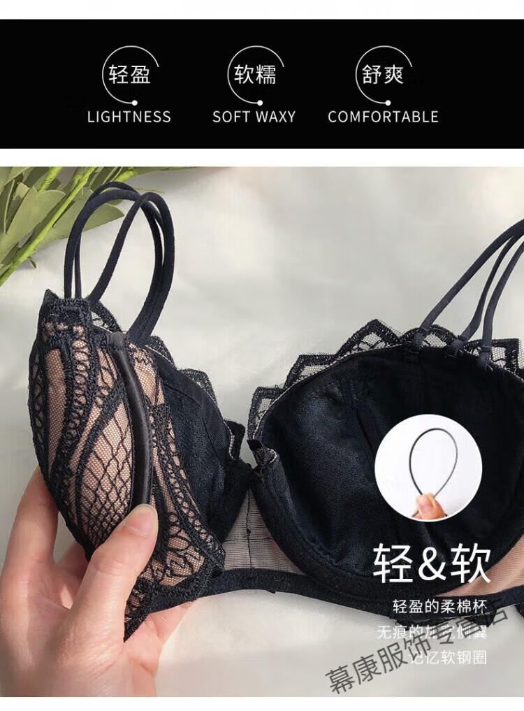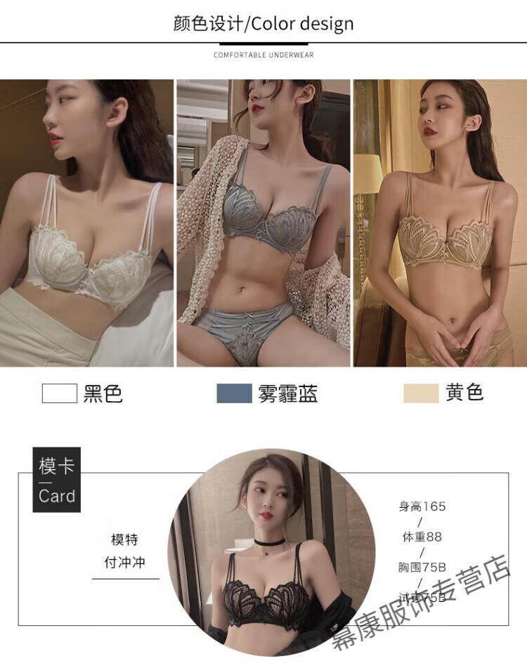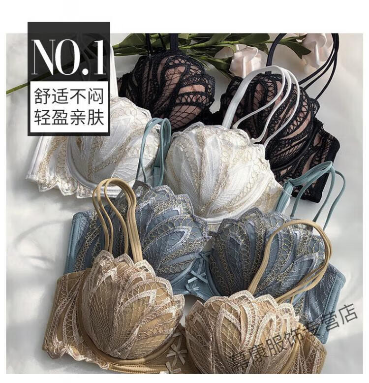 Victoria's Secret Sexy Secret Pure Desire Bra Push Up Anti-Sagging Thin Lace Beautiful Back Bra Women's Underwear Set Blue Set 75B 34