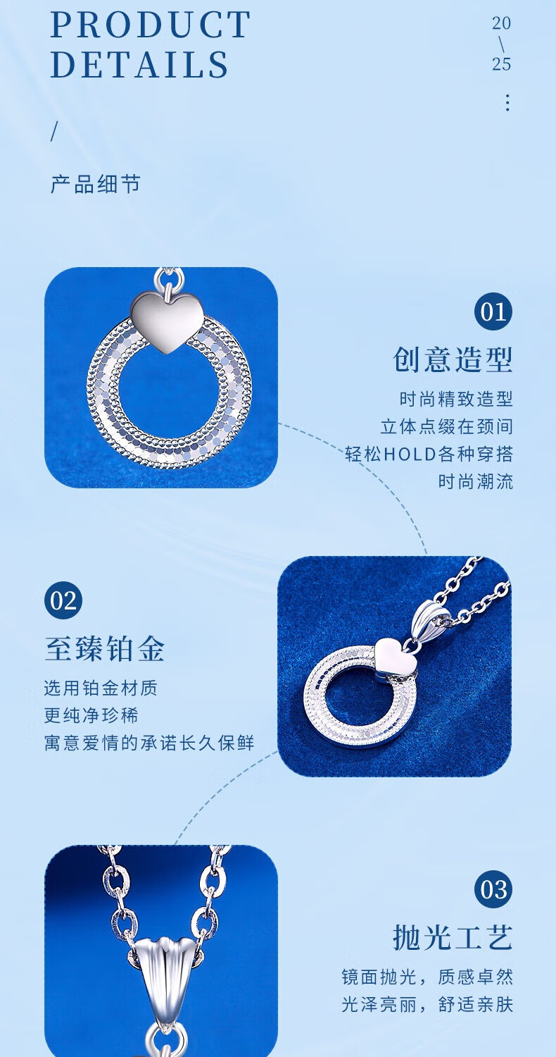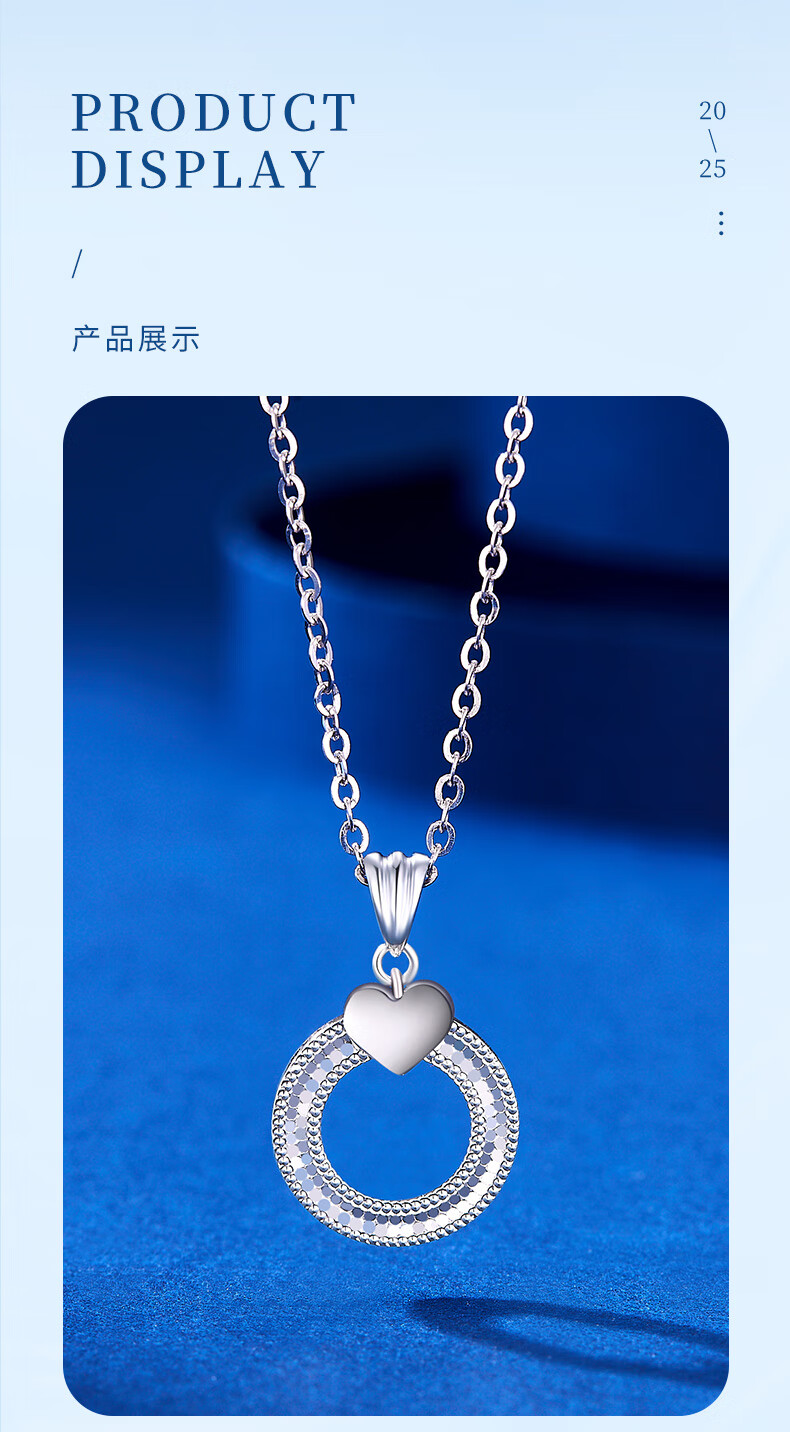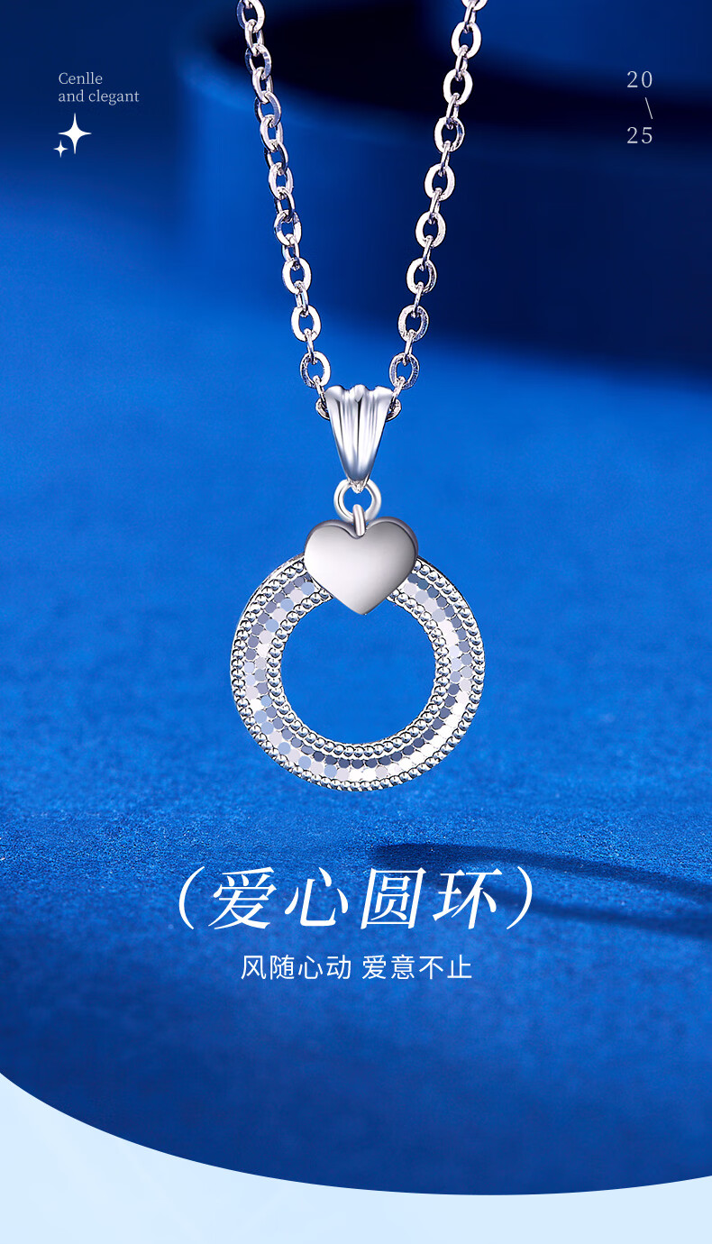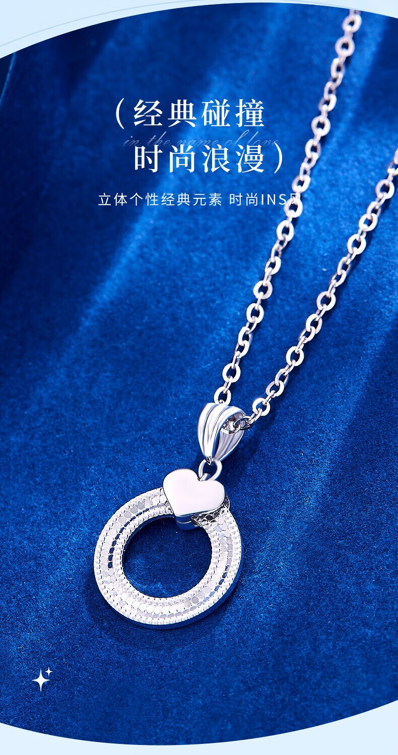 CHINA GOLD PT950 platinum love ring pendant for women crushed ice necklace Valentine's Day birthday gift for girlfriend and wife Platinum love ring pendant about 2.1g free silver chain