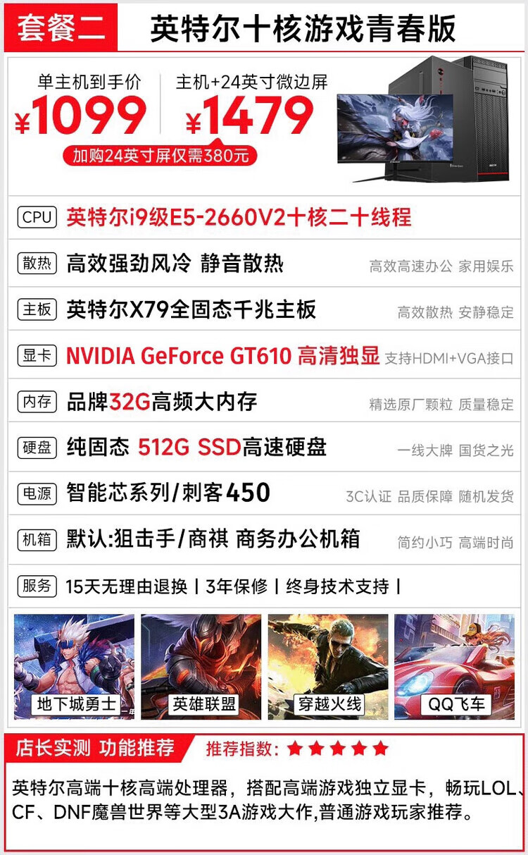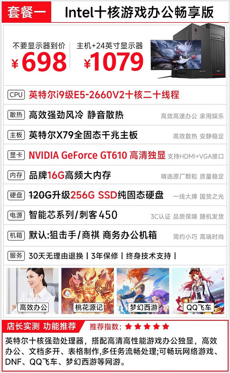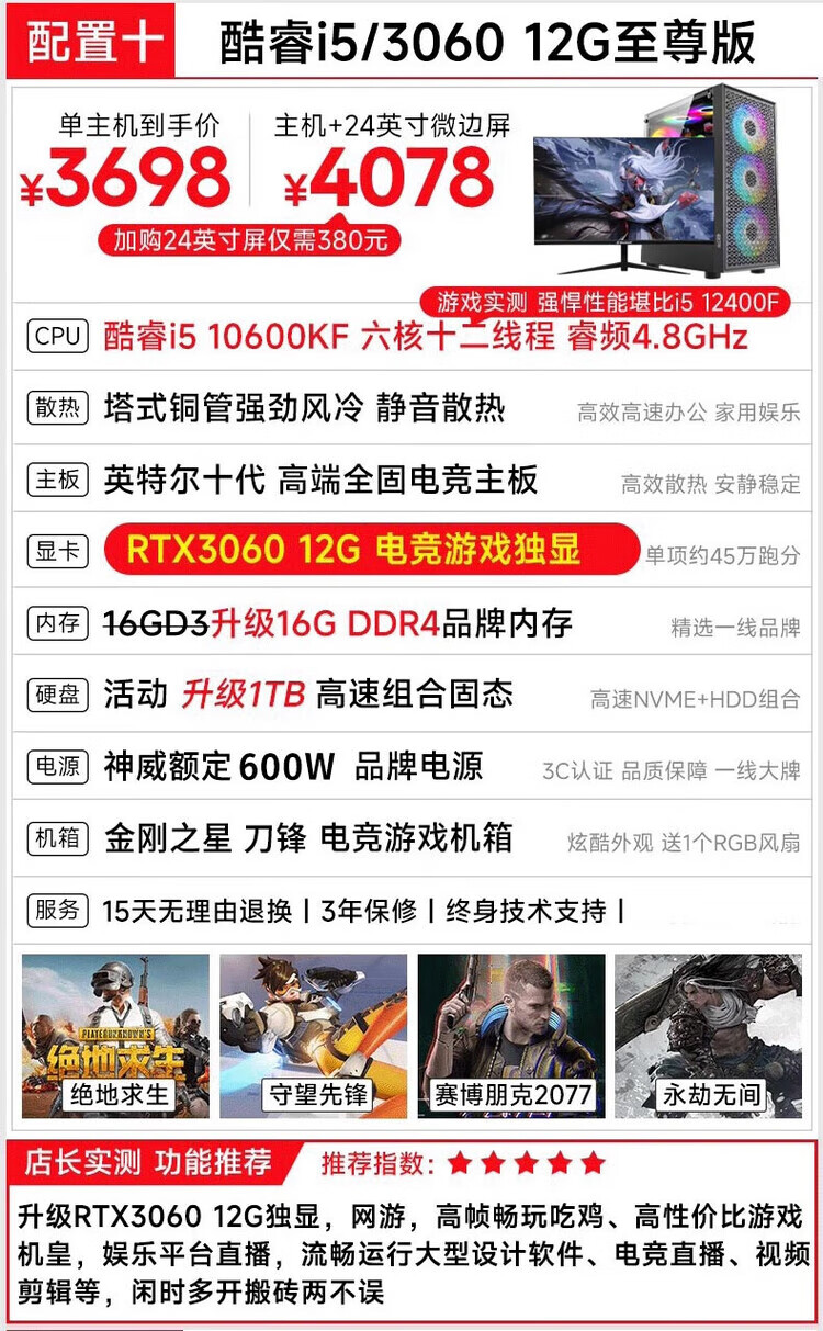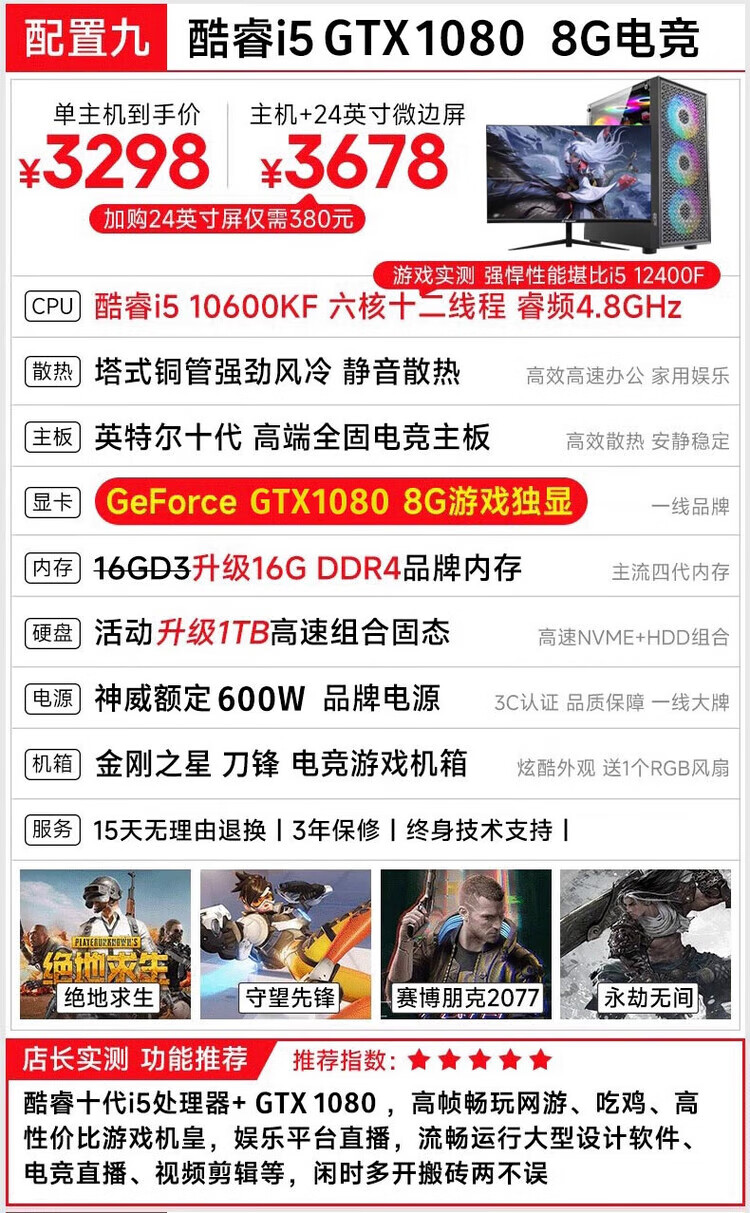 CZZ high-configuration computer host complete set of Core i5 twelve-core i9-level high-configuration machine LOL chicken assembly desktop computer multi-game live broadcast DIY complete machine computer host three-year warranty + free keyboard and mouse set one i9-level ten-core | 16G | GT e-sports independent display