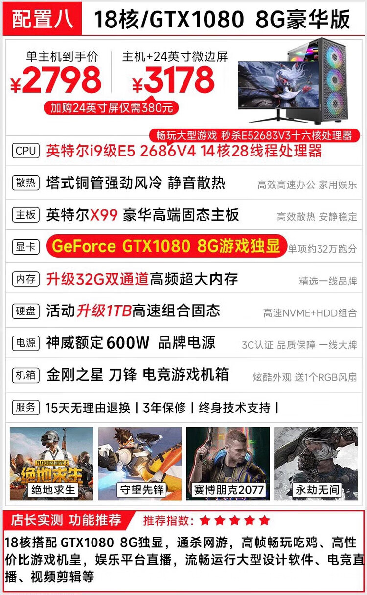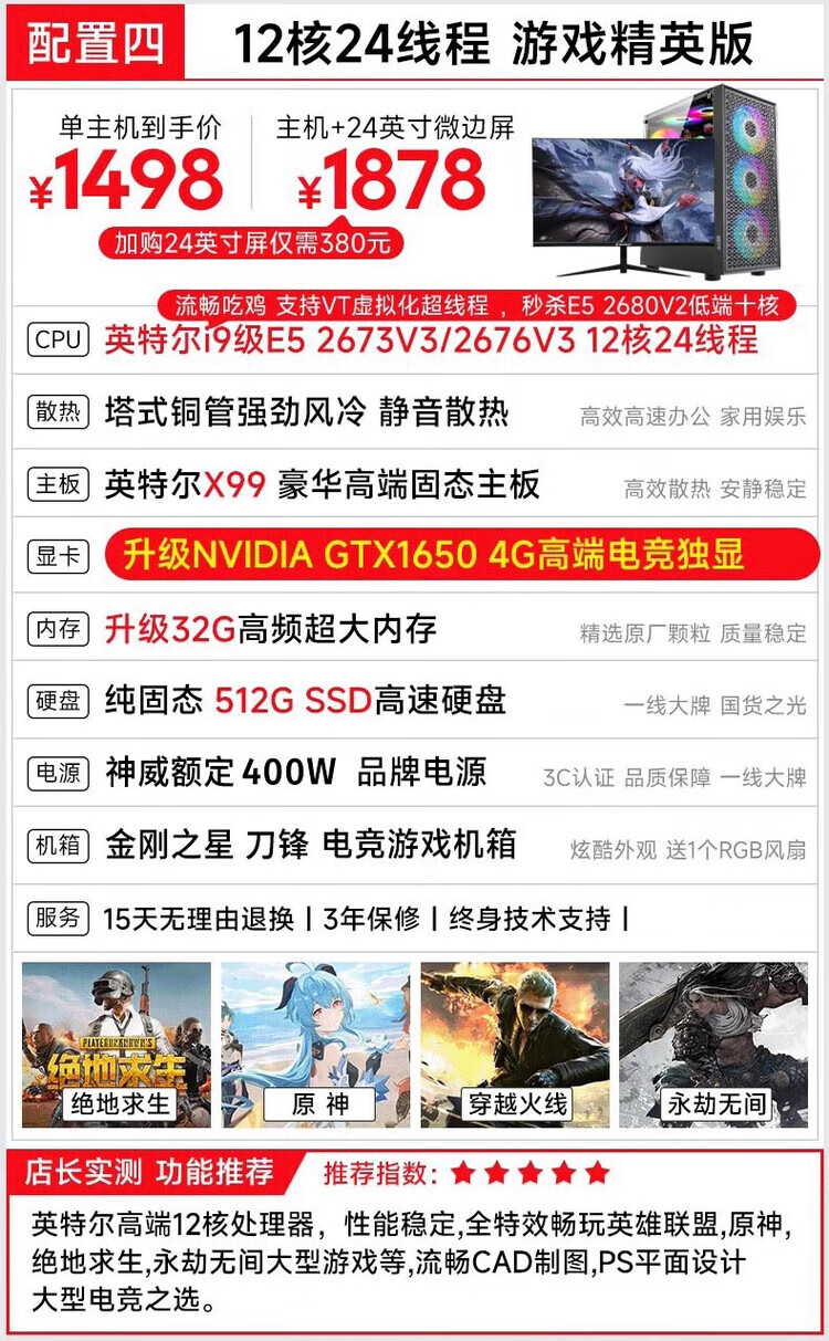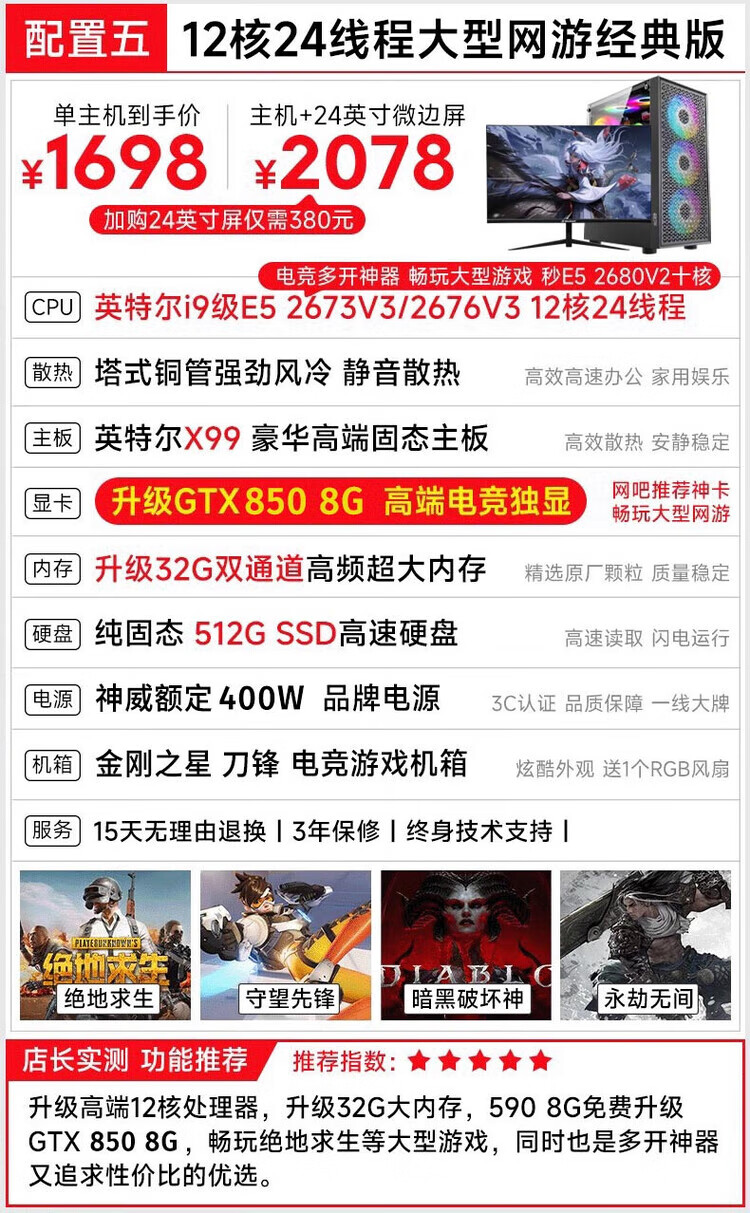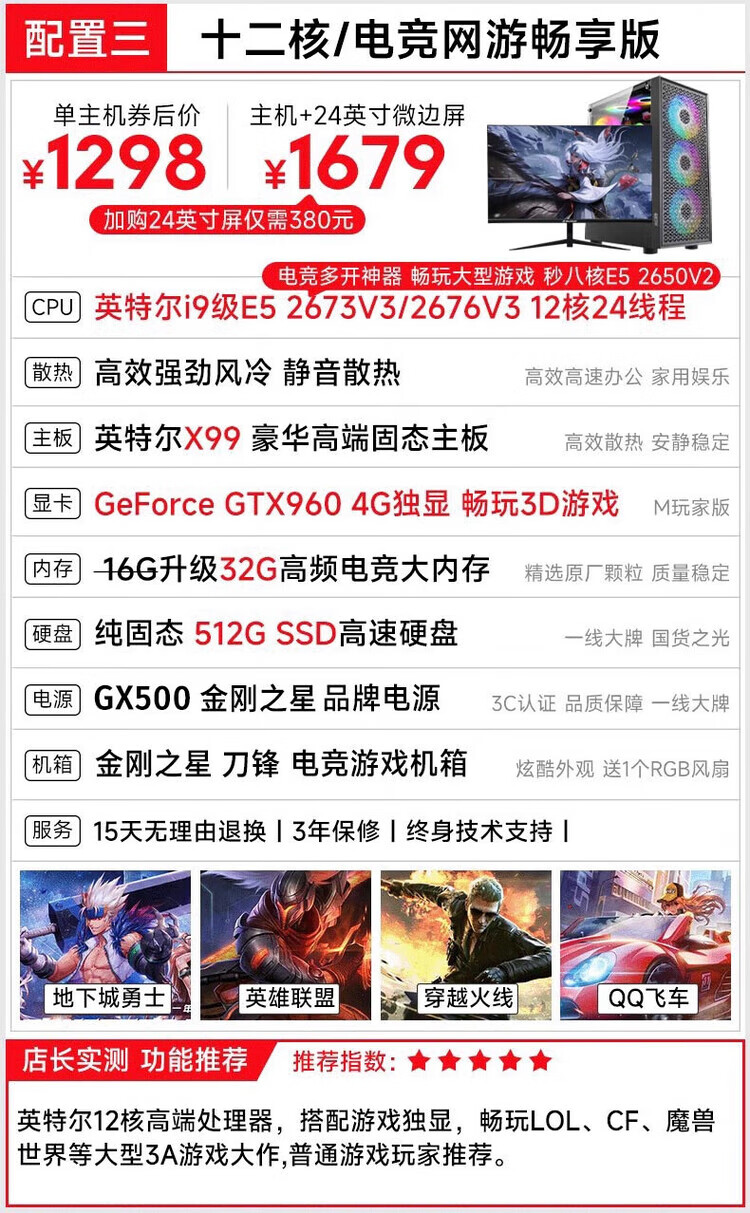 CZZ high-configuration computer host complete set of Core i5 twelve-core i9-level high-configuration machine LOL chicken assembly desktop computer multi-game live broadcast DIY complete machine computer host three-year warranty + free keyboard and mouse set one i9-level ten-core | 16G | GT e-sports independent display