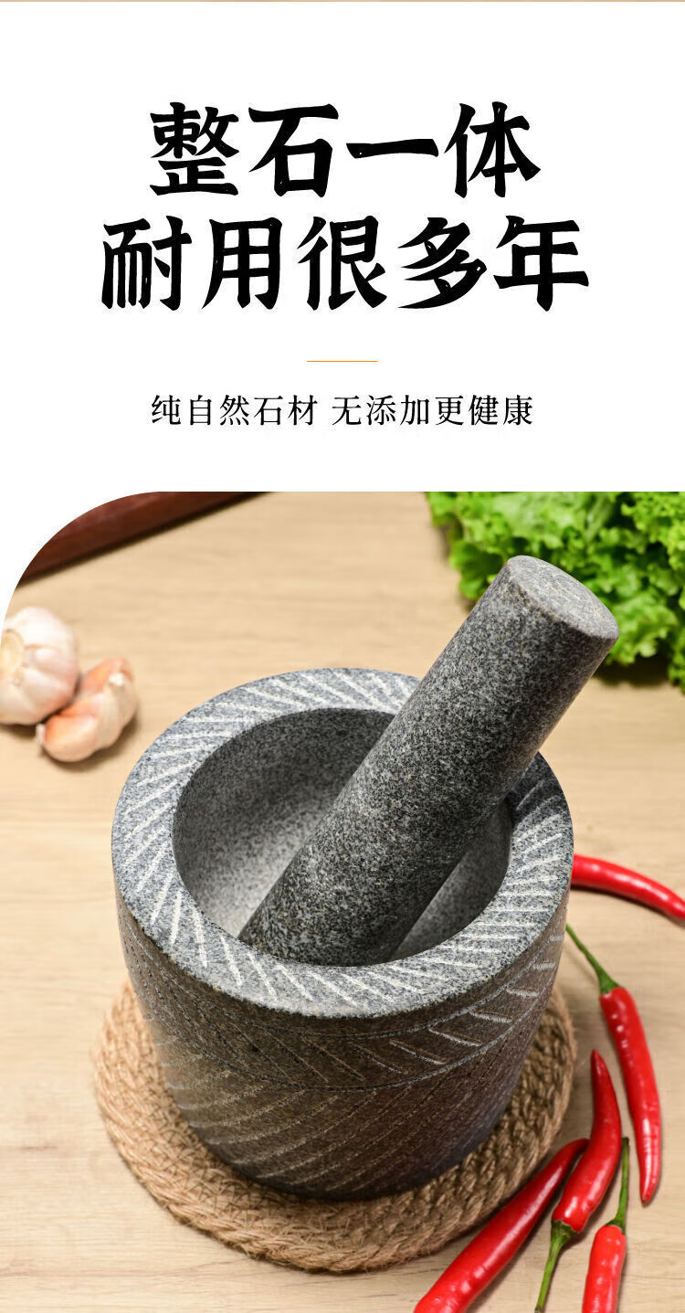 Grain harvesting large hand-made original stone garlic pounder natural household stone mortar pounder medicine jar grinder garlic peeler garlic press garlic mortar large hand-made cylinder-shaped carving with stone hammer