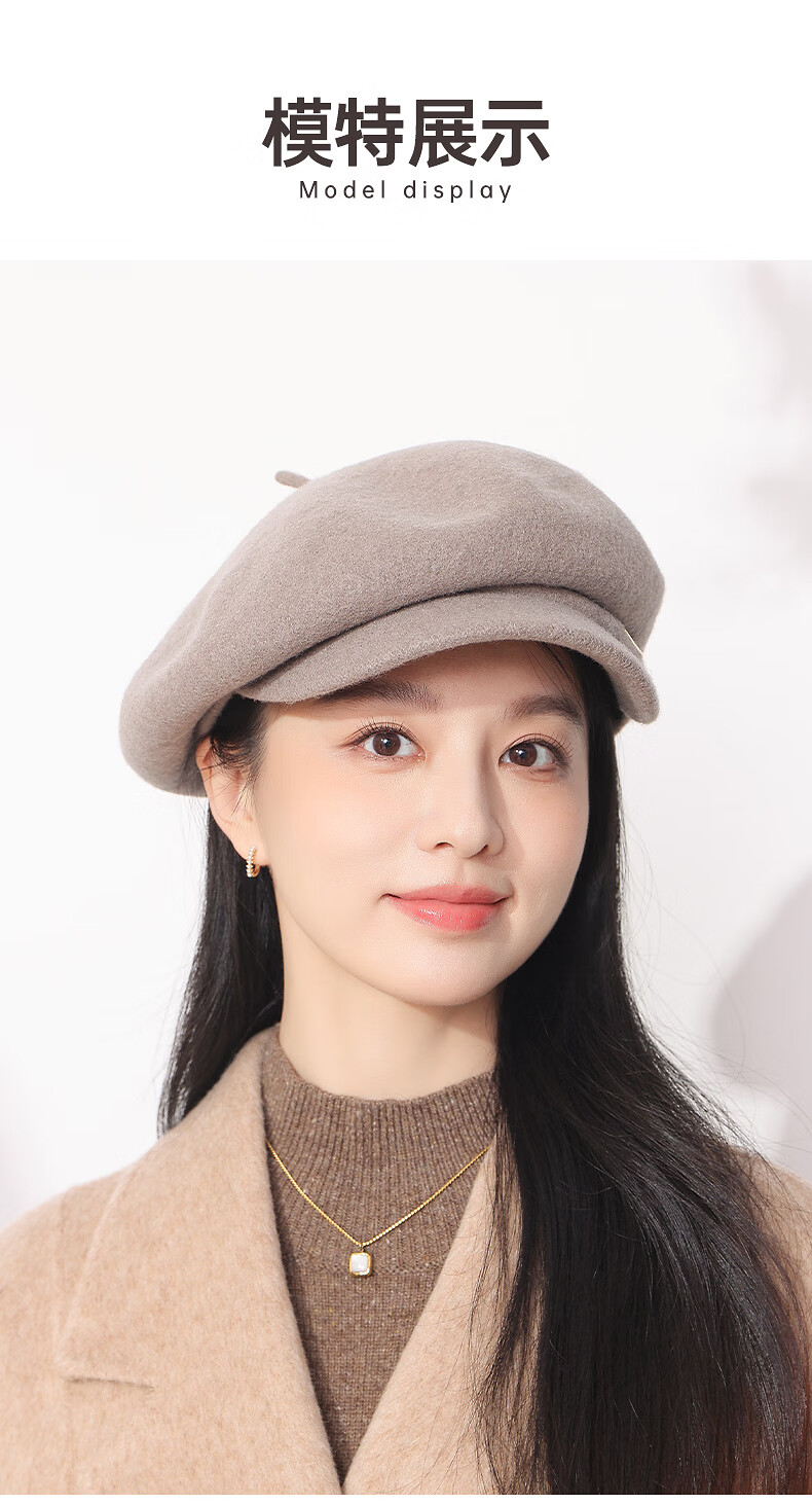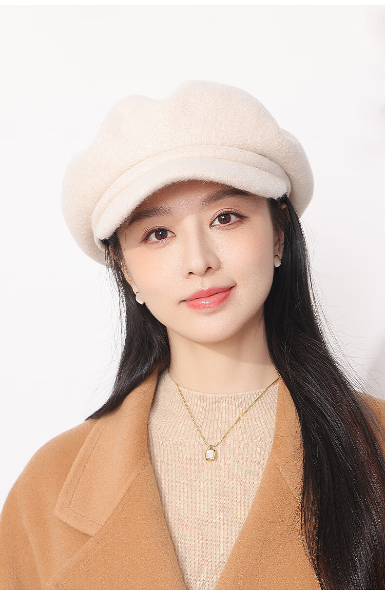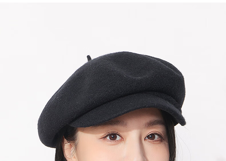 Hengyuanxiang beret women's autumn and winter new style wool retro versatile Japanese bud painter hat octagonal hat Chinese Valentine's Day birthday gift black one size 54-60cm