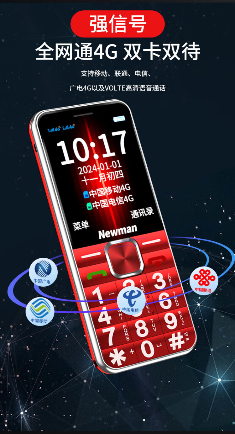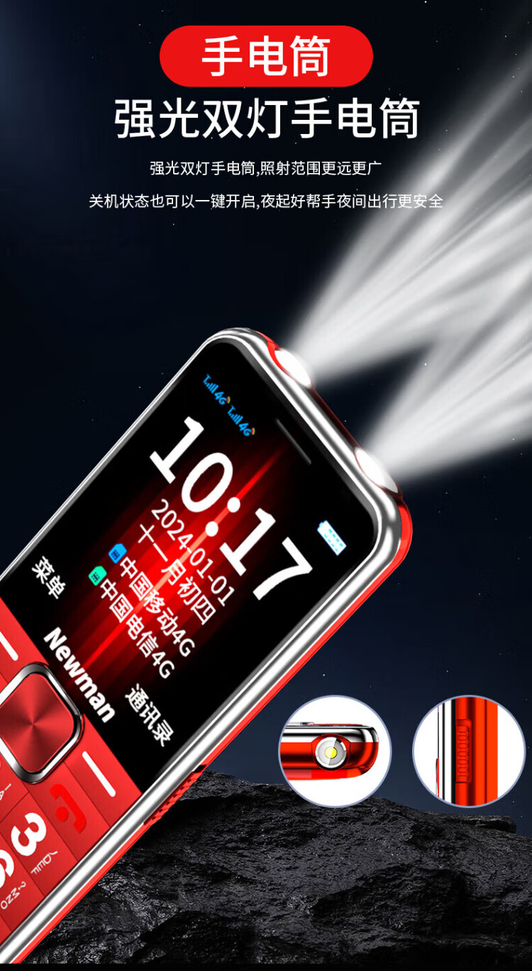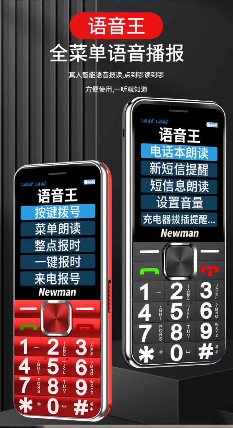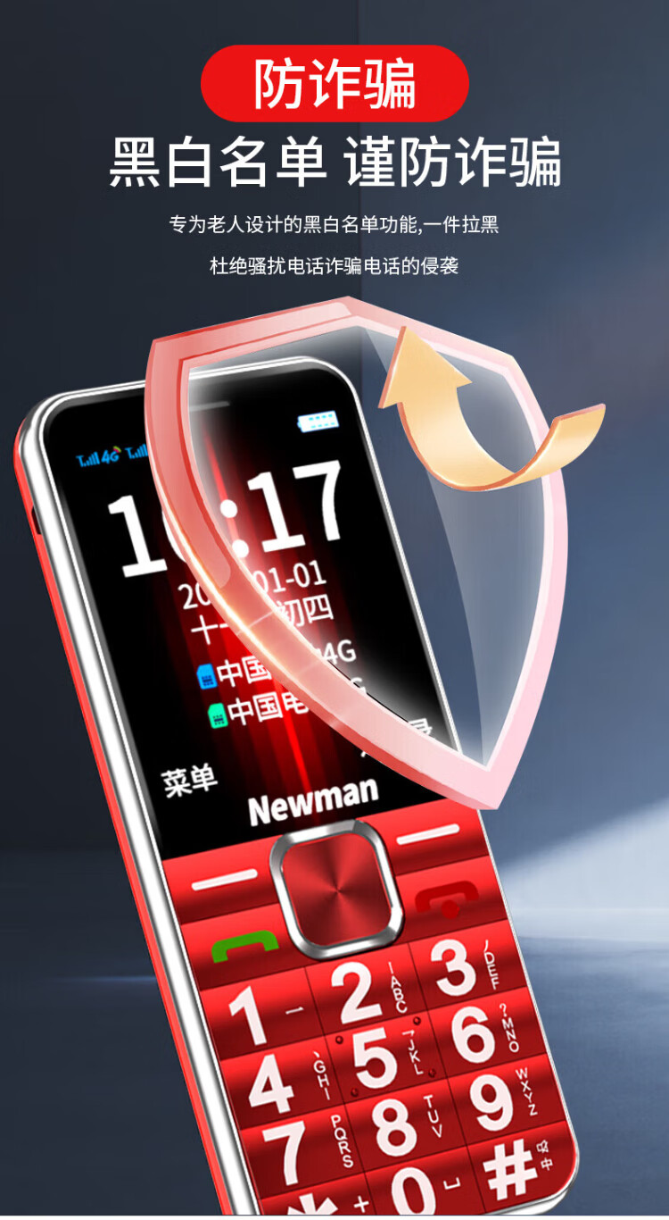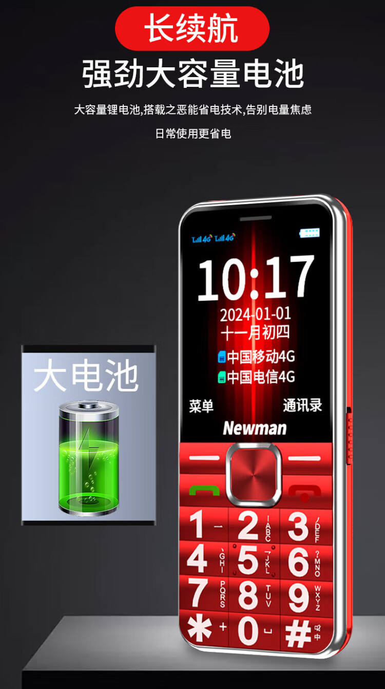 Newman K18 Full Netcom 4G elderly mobile phone with large fonts and large buttons, ultra-long standby, Mobile Unicom, Telecom buttons, dual SIM card, dual standby function machine, elderly mobile phone, red, full Netcom