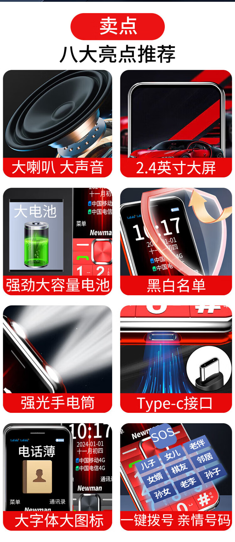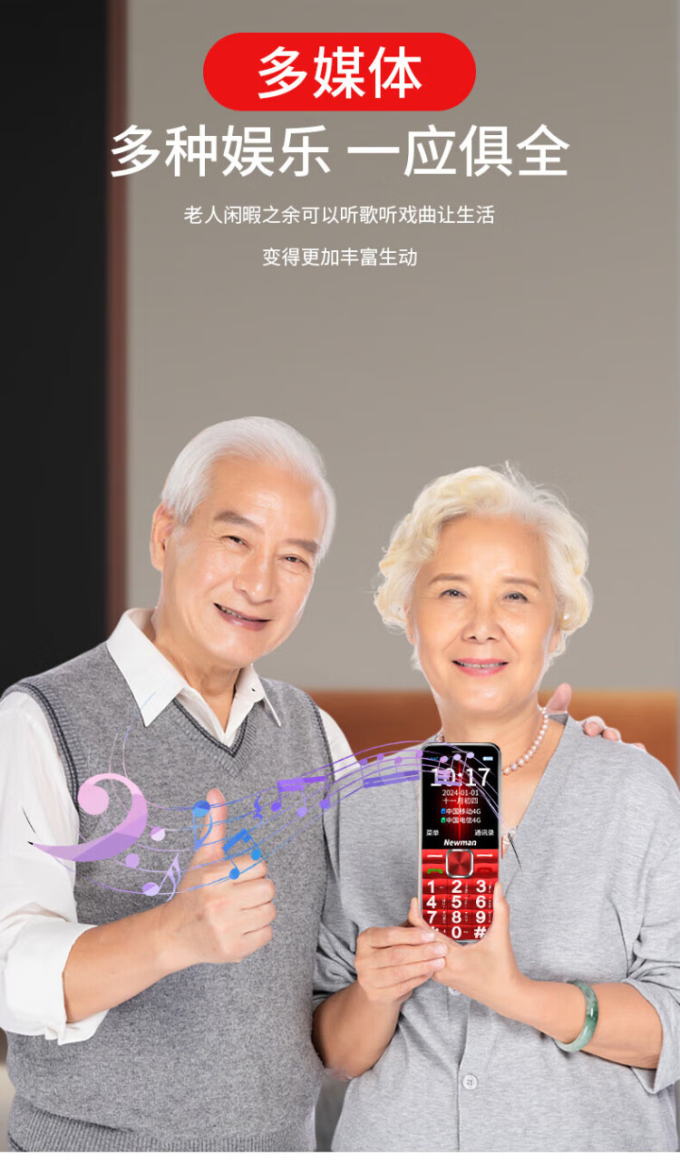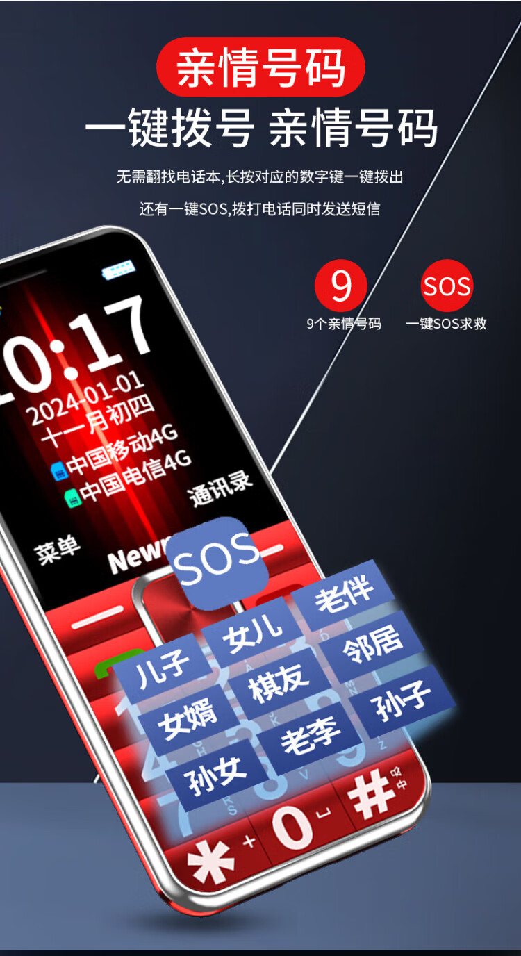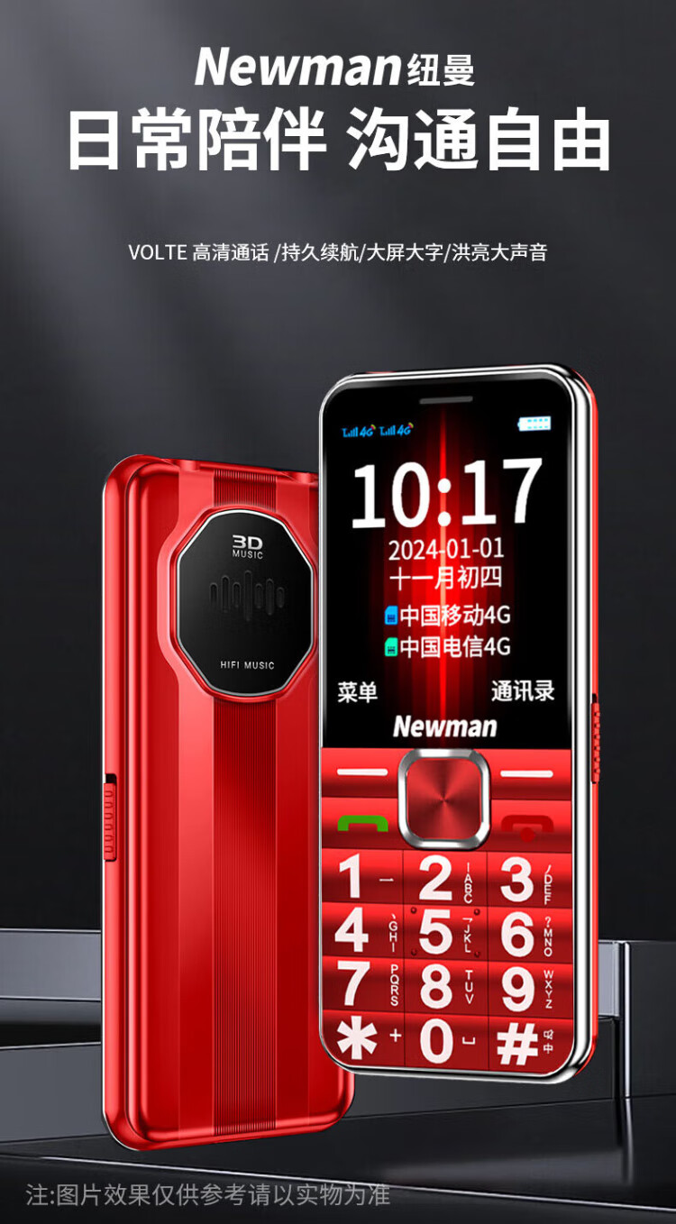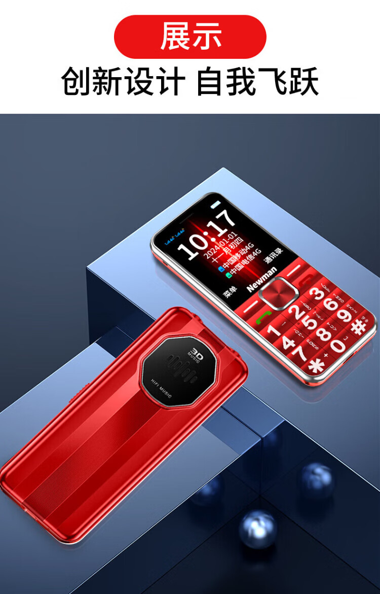 Newman K18 Full Netcom 4G elderly mobile phone with large fonts and large buttons, ultra-long standby, Mobile Unicom, Telecom buttons, dual SIM card, dual standby function machine, elderly mobile phone, red, full Netcom