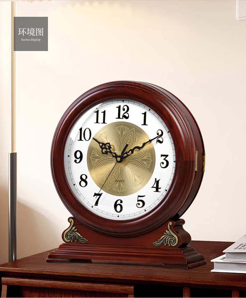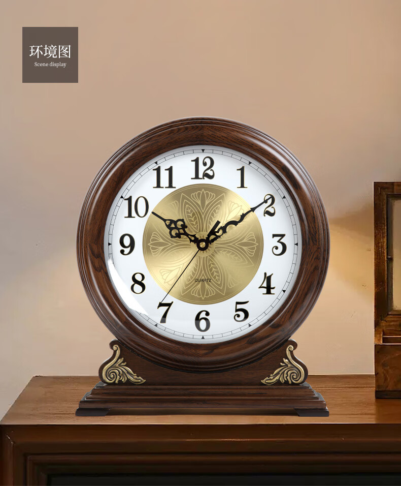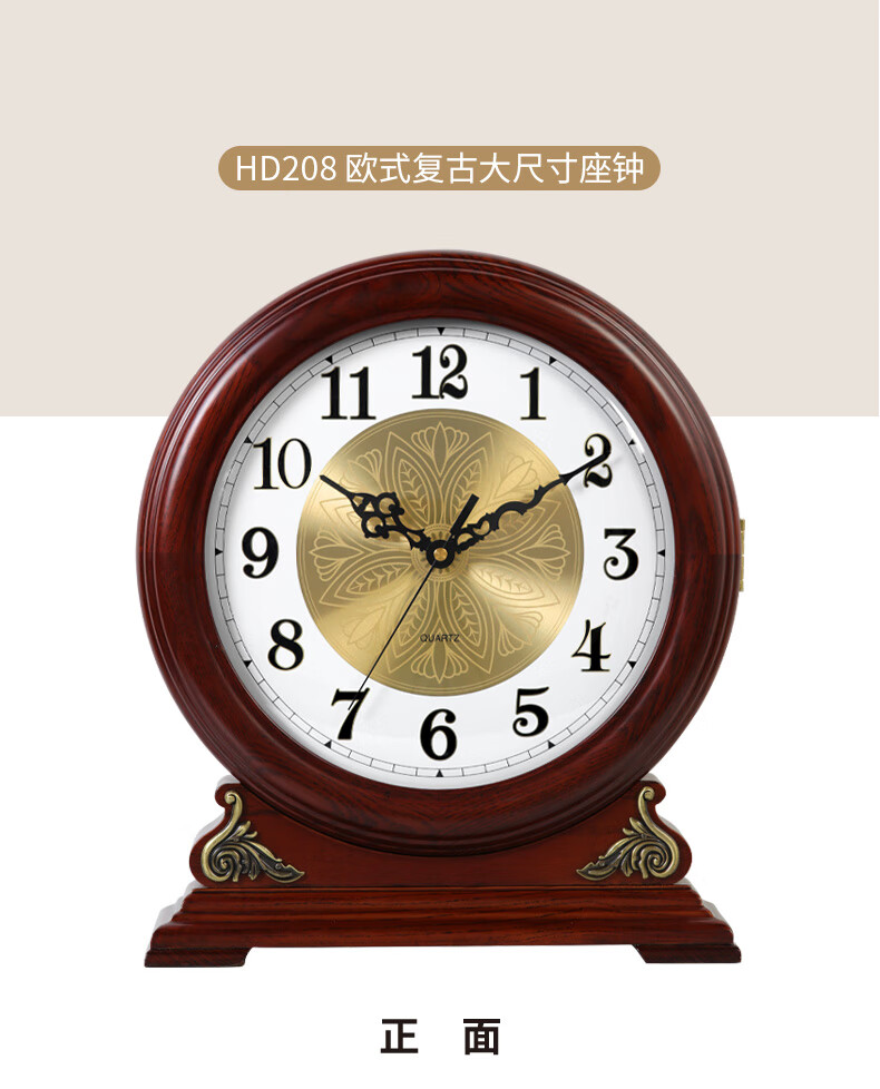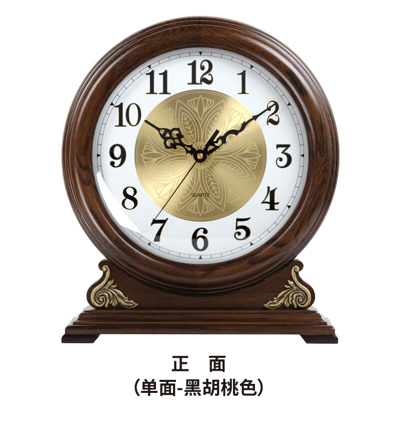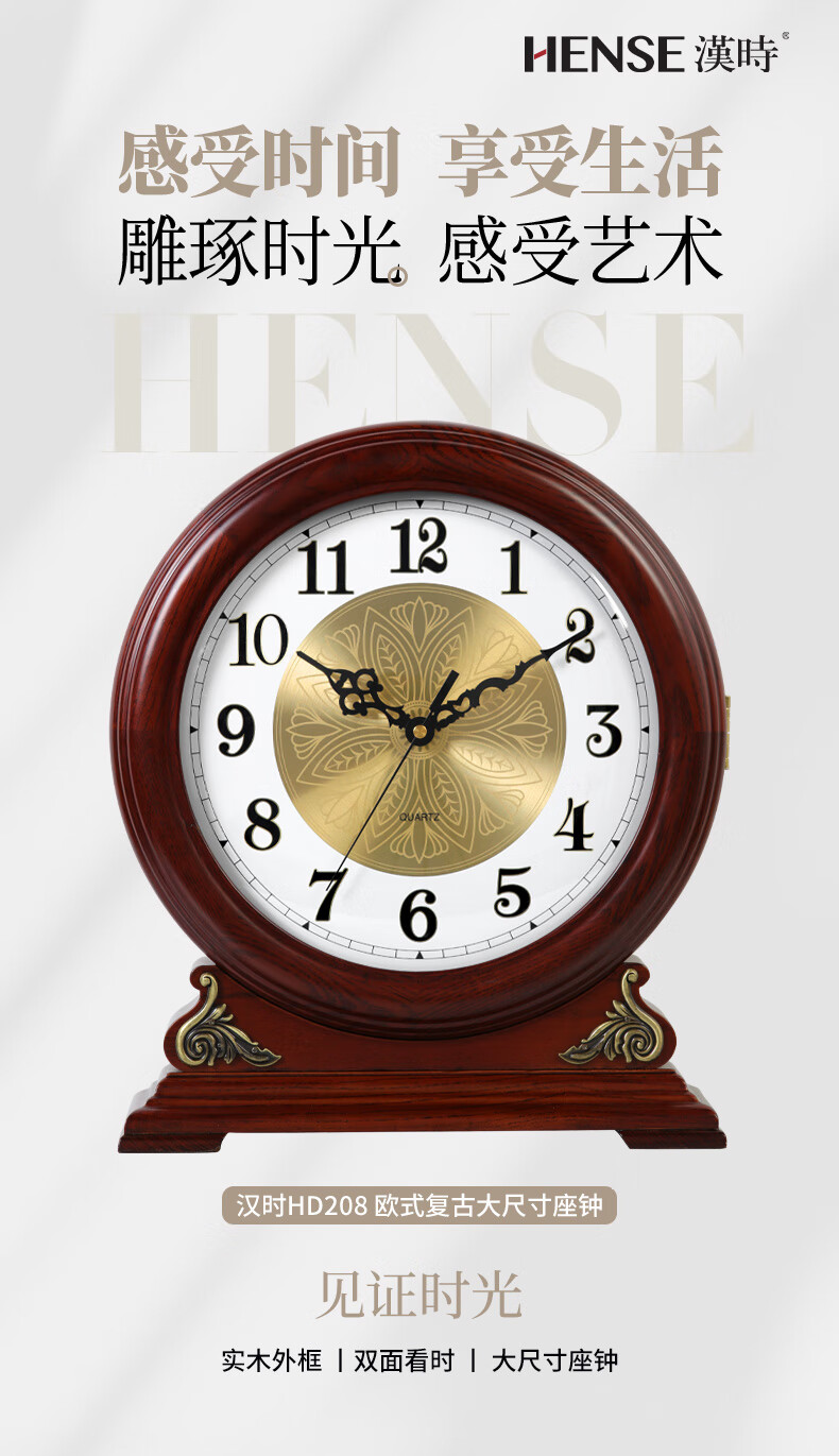Hanshi (Hense) large size solid wood table clock living room desktop table clock European retro clock home atmospheric quartz clock HD208 one-sided viewing (black walnut color)