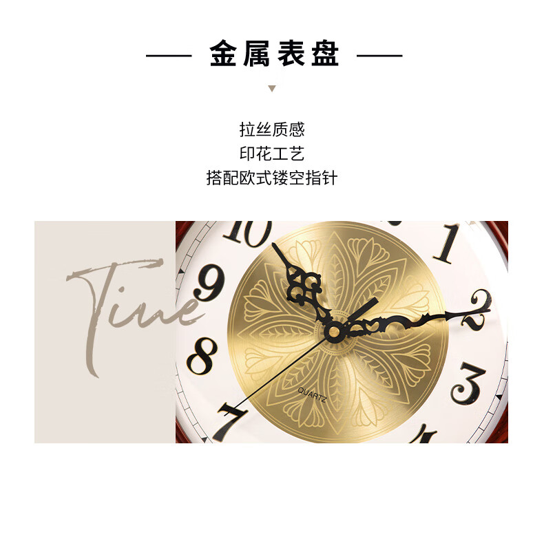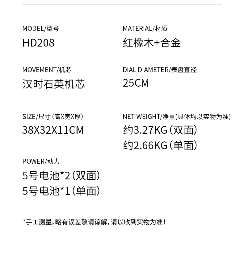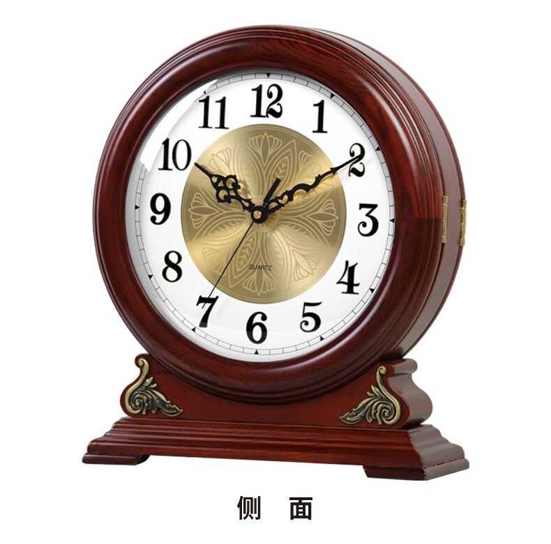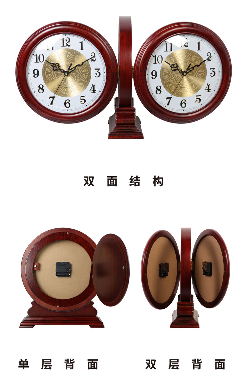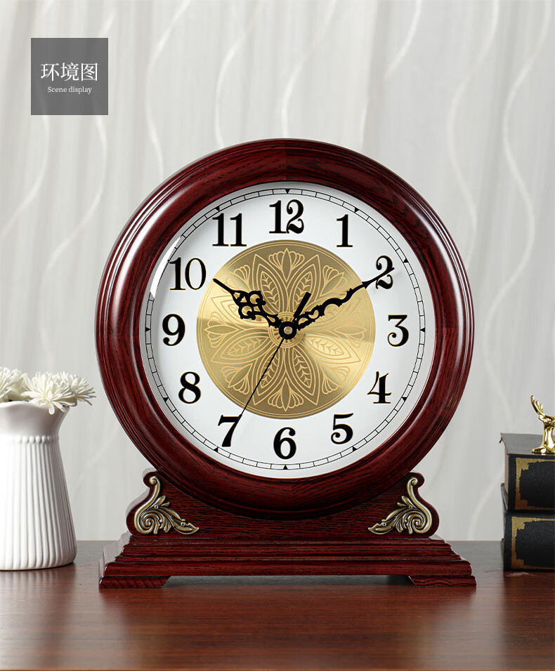 Hanshi (Hense) large size solid wood table clock living room desktop table clock European retro clock home atmospheric quartz clock HD208 one-sided viewing (black walnut color)