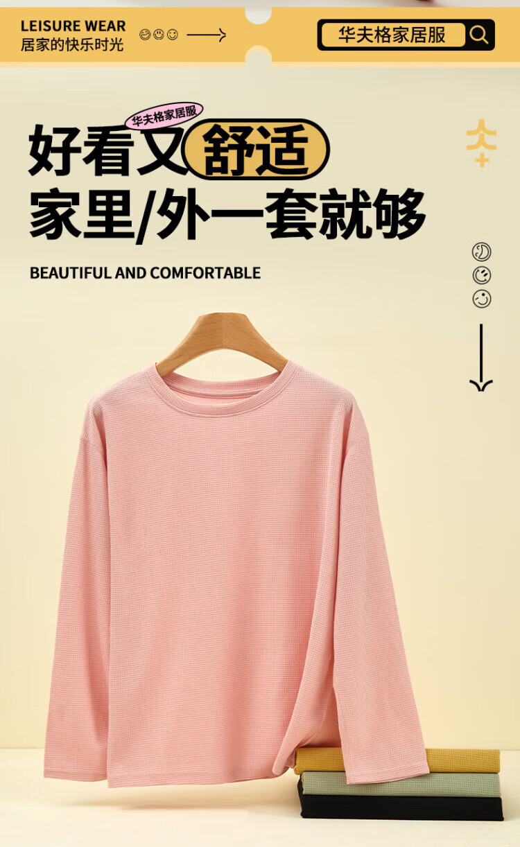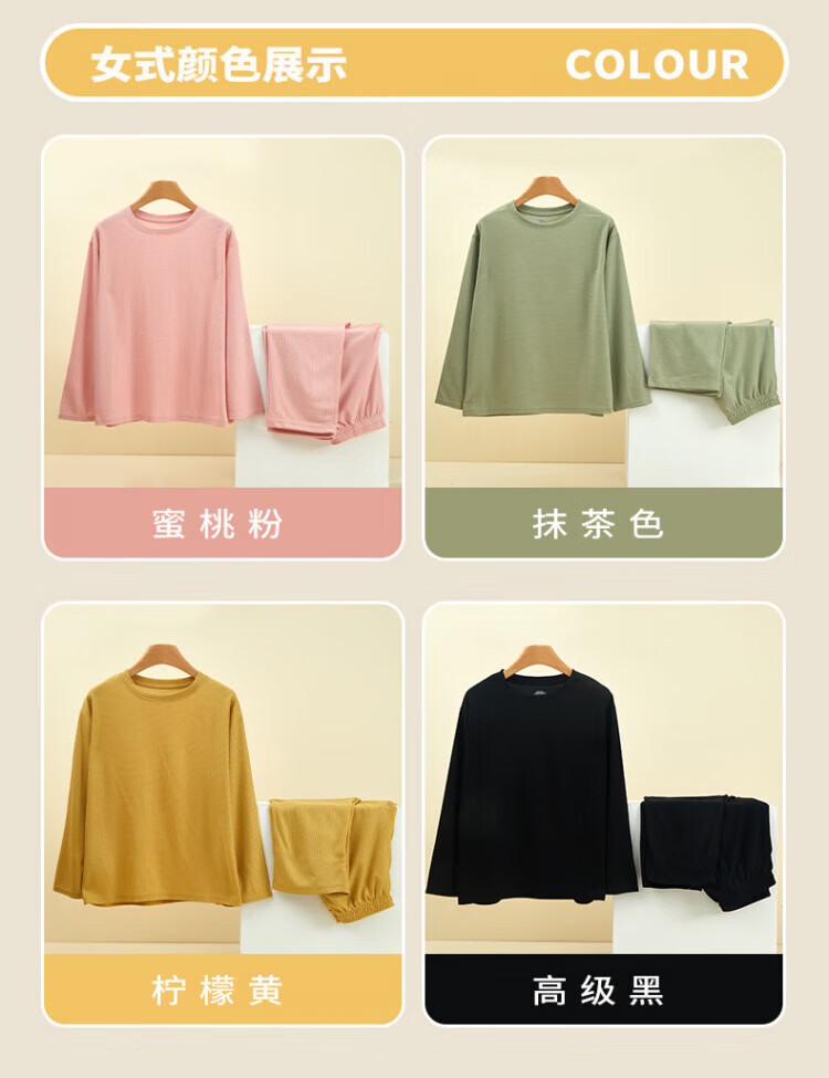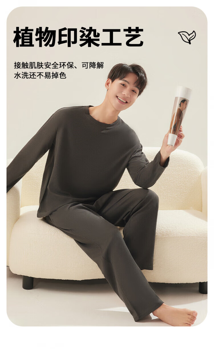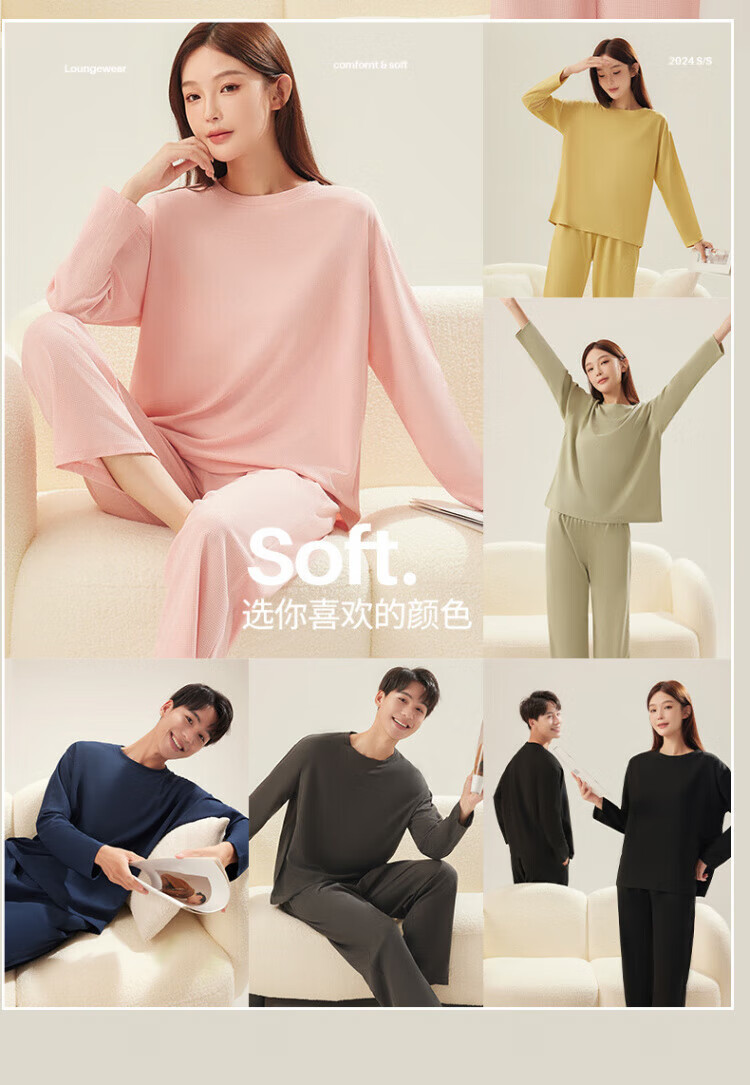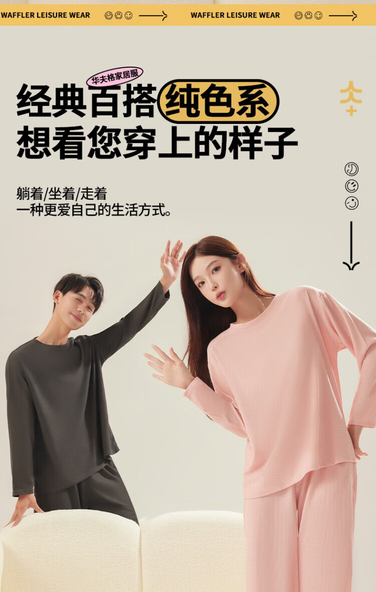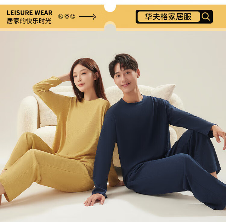 MiiOW New Couple Pajamas for Men and Women Spring and Autumn Waffle Long Sleeve Round Neck Pullover Solid Color Wearable Outerwear Home Clothing Set Black - Male L