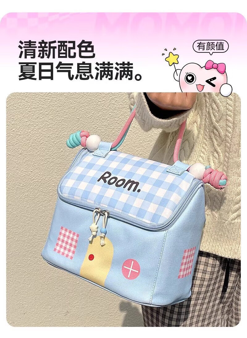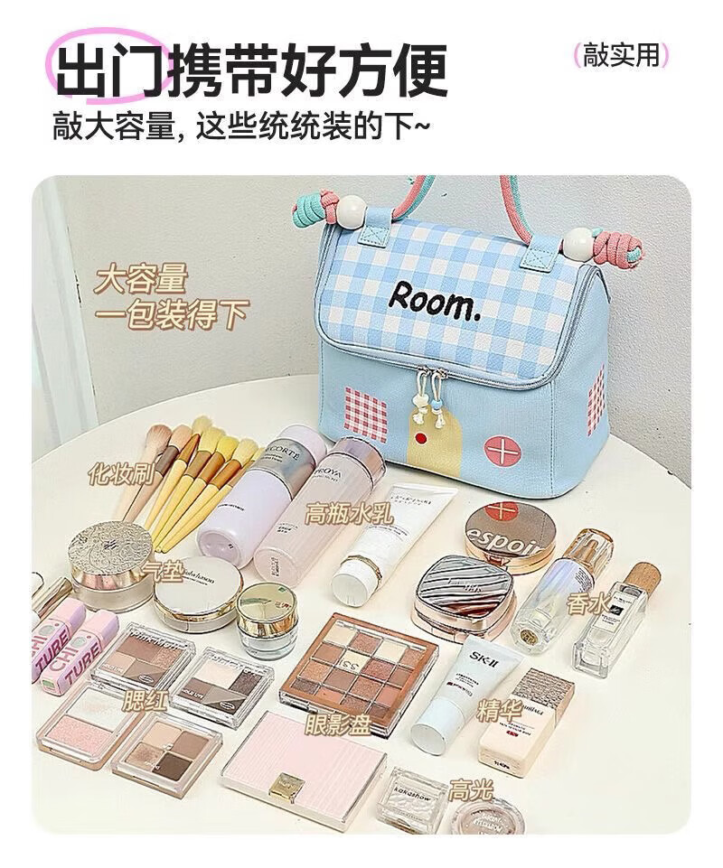KarLot small house cosmetic bag large capacity portable outdoor waterproof portable partition storage high-value cosmetics storage healing blue cosmetic bag
