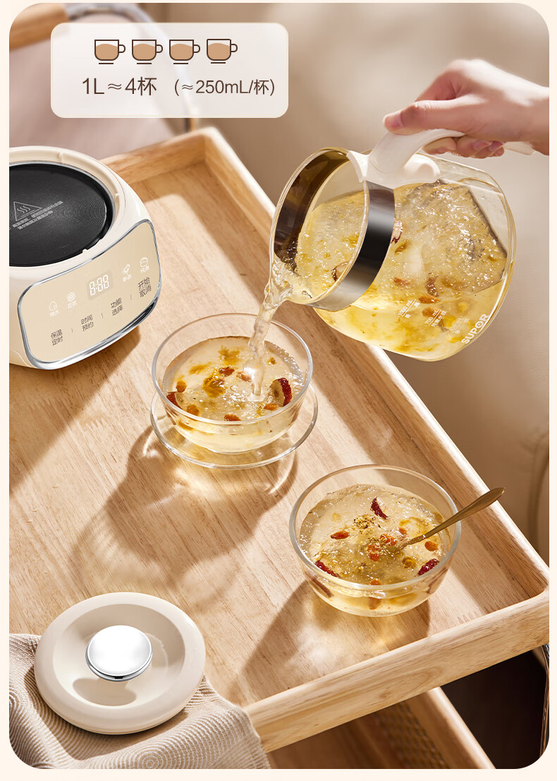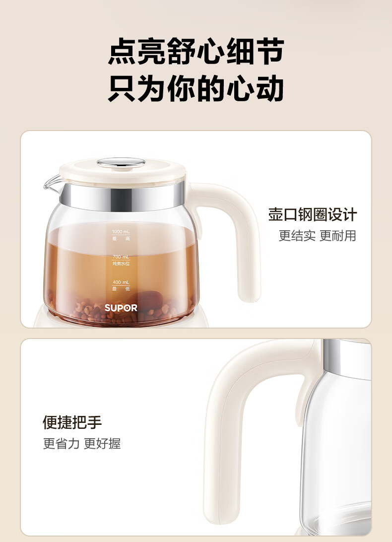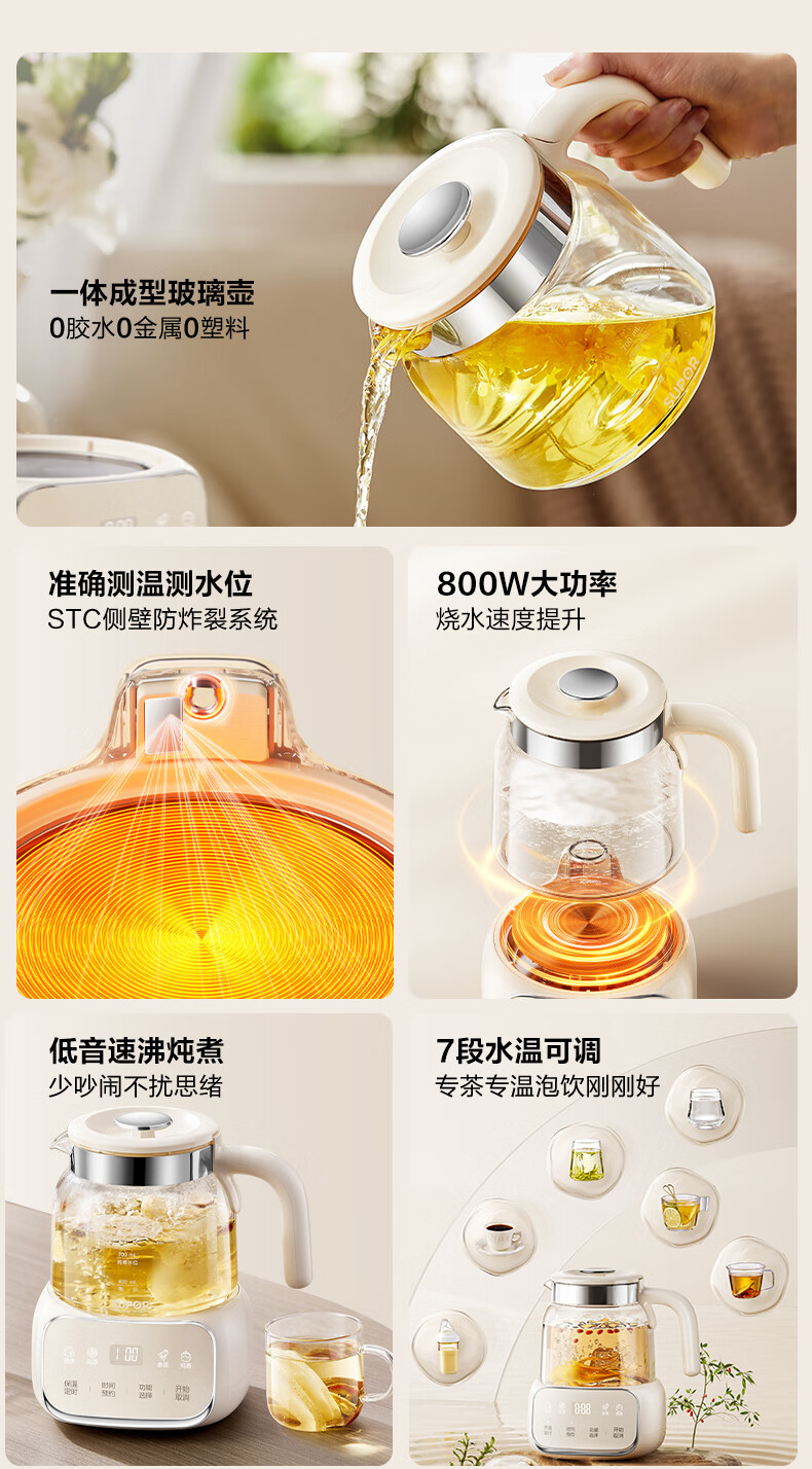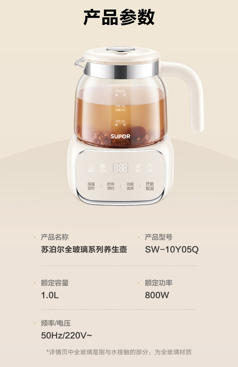 SUPOR health pot all-glass 0 glue stew pot all-in-one health kettle teapot household multi-functional constant temperature insulation electric kettle office small one-person flower teapot 304 stainless steel filter SW-10Y02Q 1L
