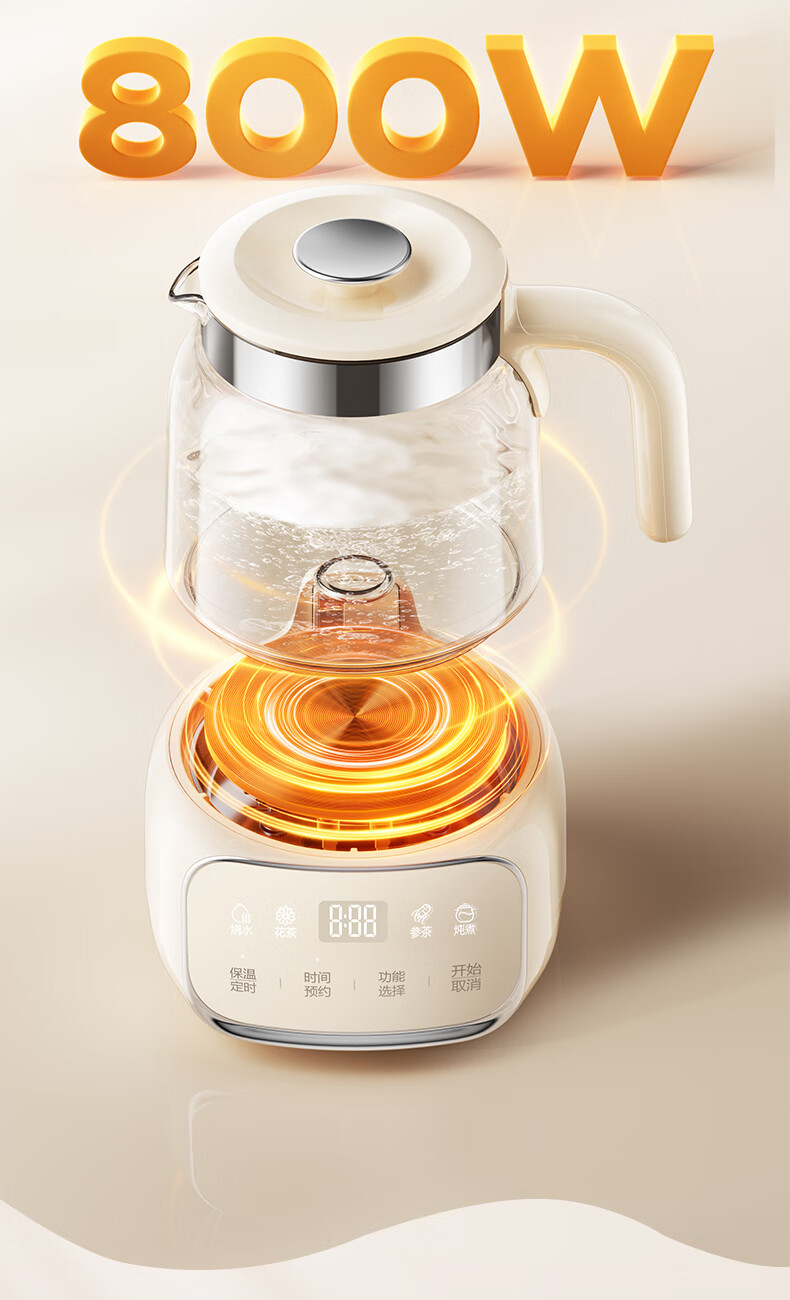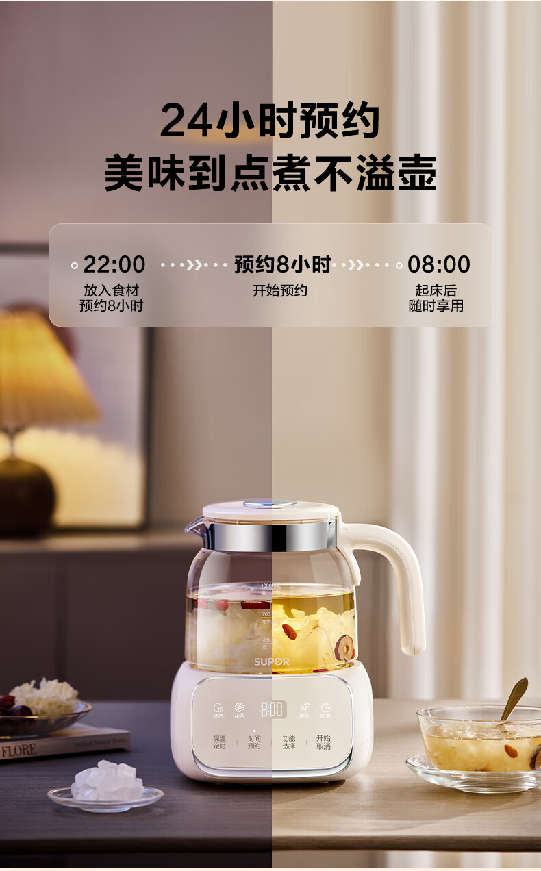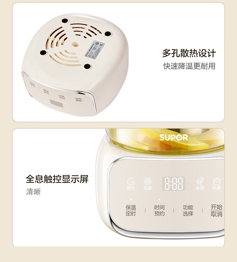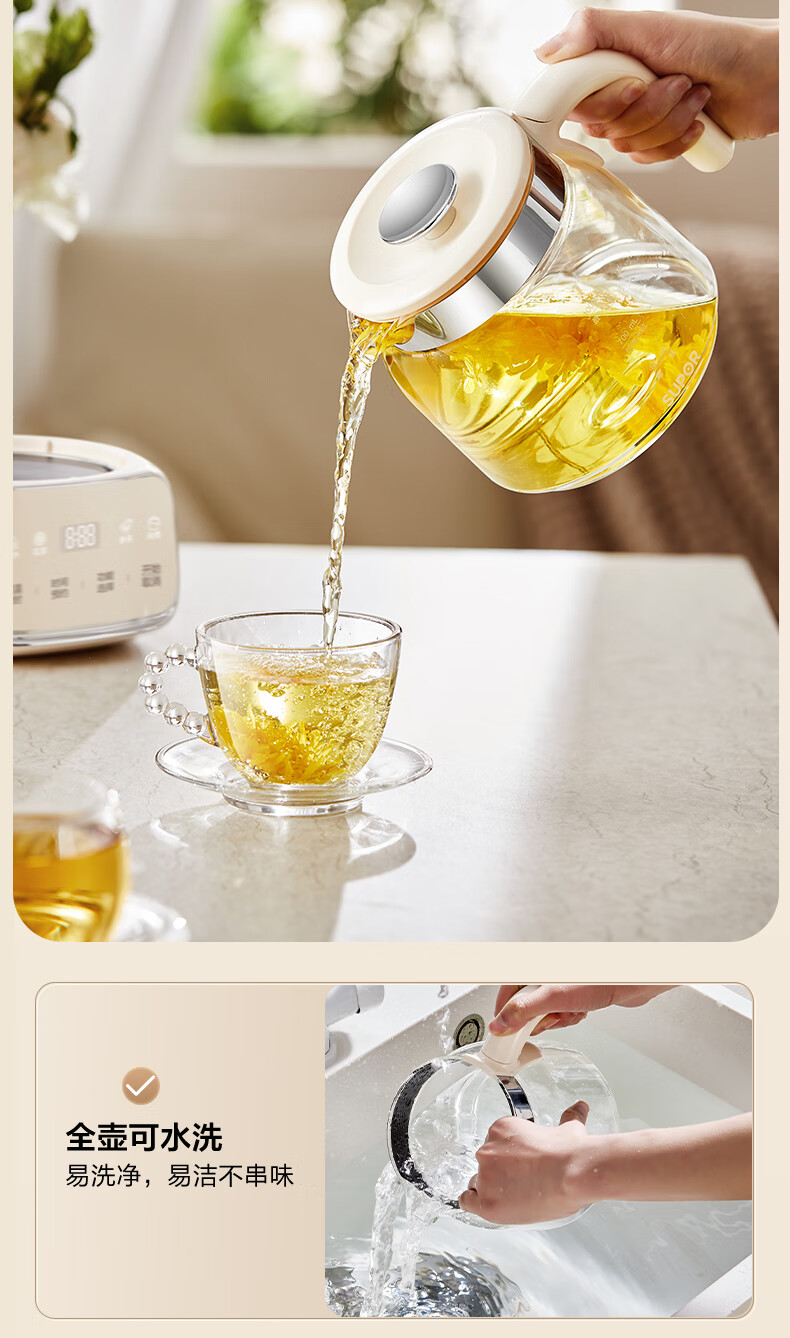 SUPOR health pot all-glass 0 glue stew pot all-in-one health kettle teapot household multi-functional constant temperature insulation electric kettle office small one-person flower teapot 304 stainless steel filter SW-10Y02Q 1L