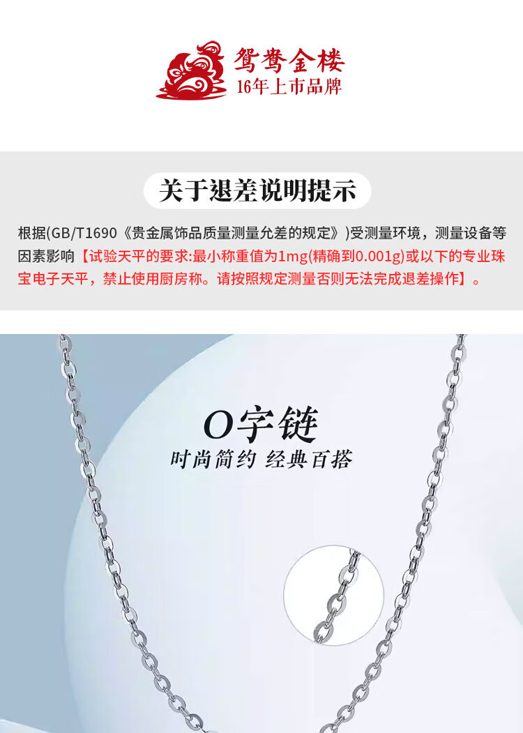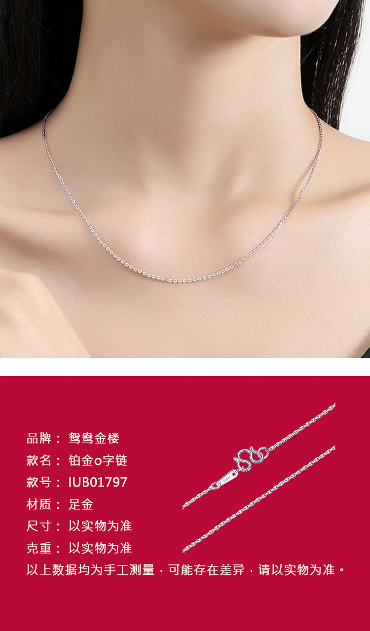Yuanyang Jinlou PT950 platinum O-shaped chain, versatile and fashionable platinum chain clavicle chain, holiday birthday gift for girlfriend and wife, about 1.5g