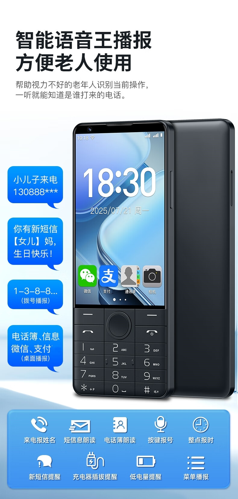 Duowei R70 young people quit the Internet button primary school students' mobile phone junior high school students factory workshop confidentiality no camera smartphone WeChat multi-open touch screen positioning AI elderly machine black no camera function 4G+64G full network 5G radio and television mobile Unicom telecom version