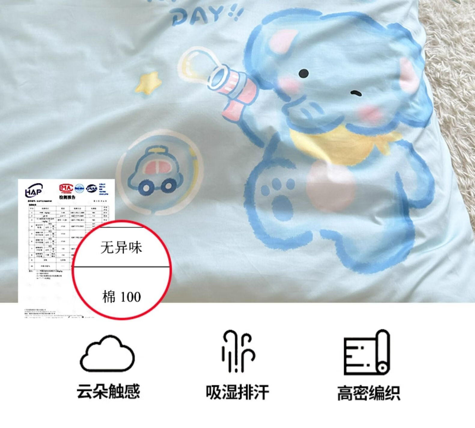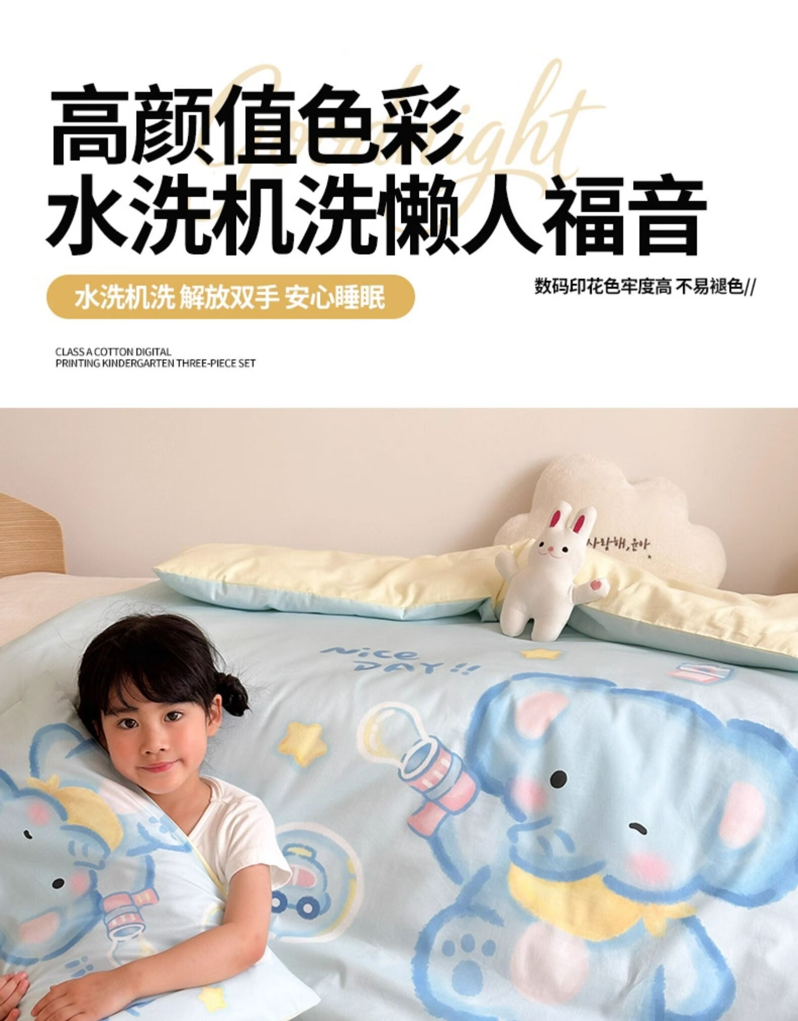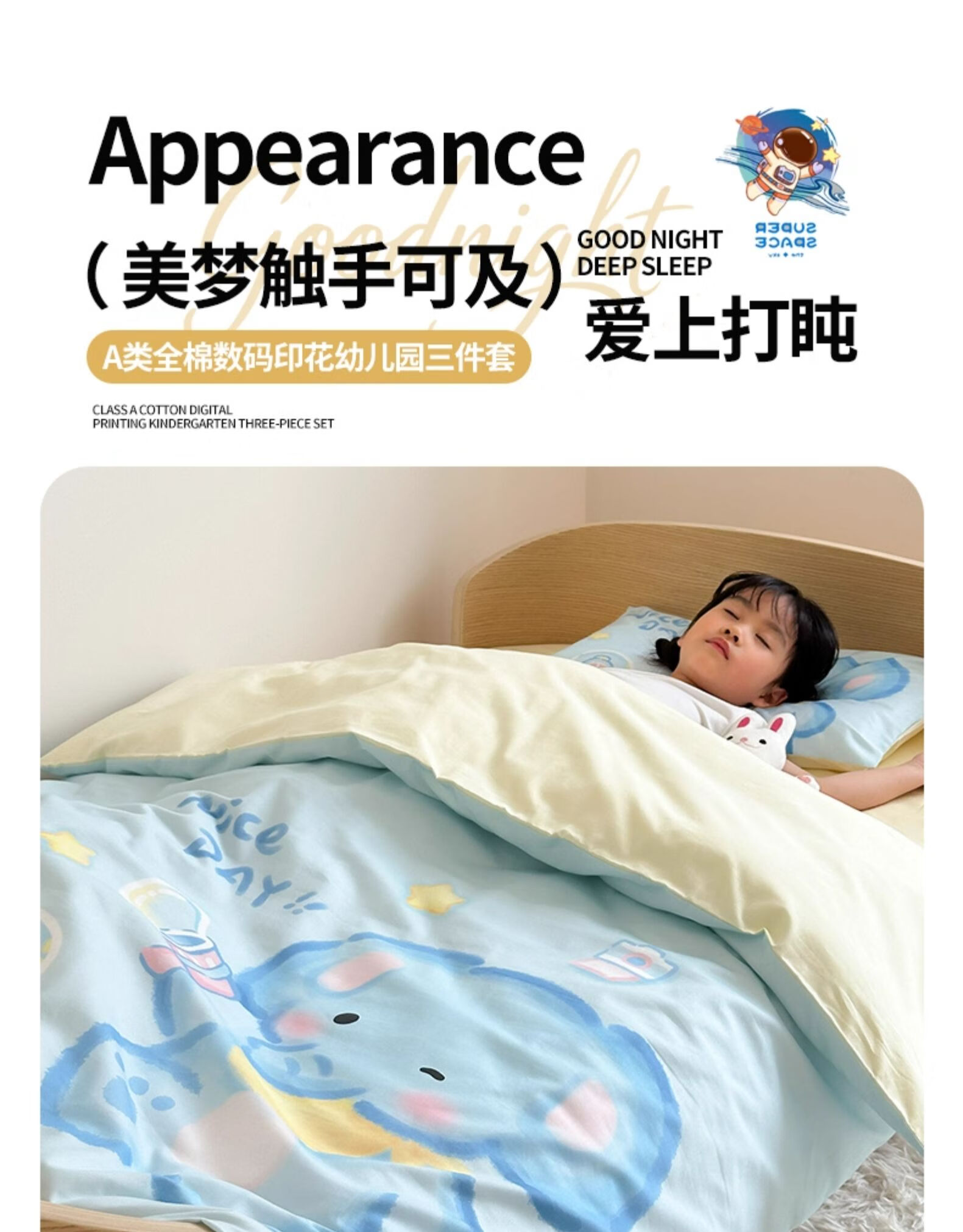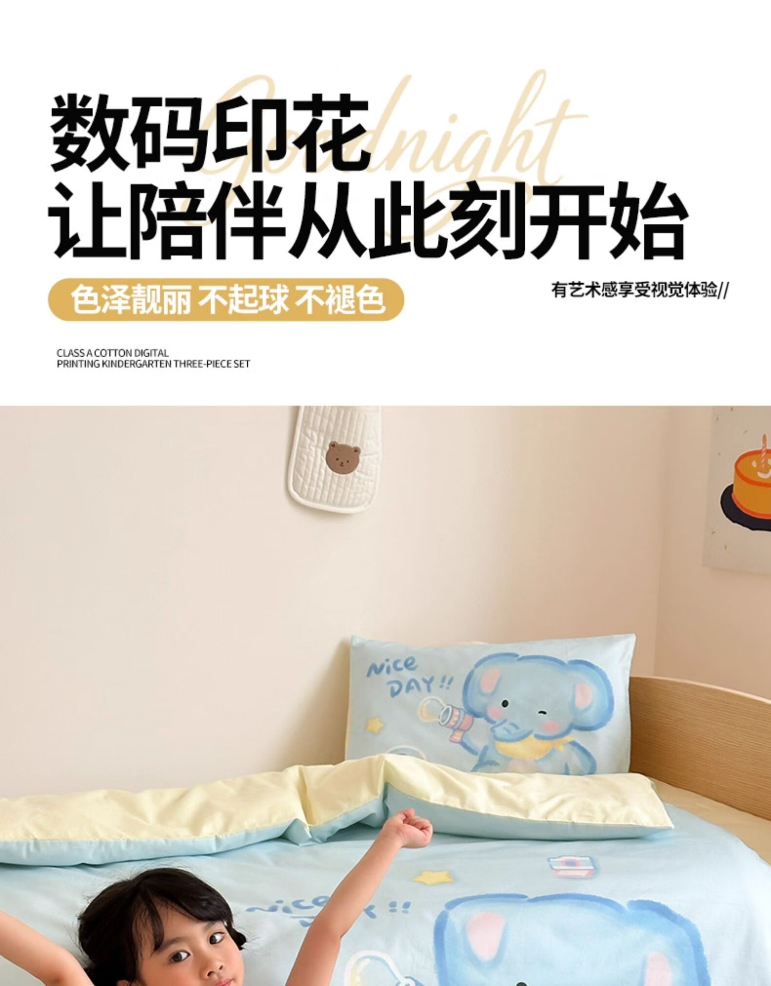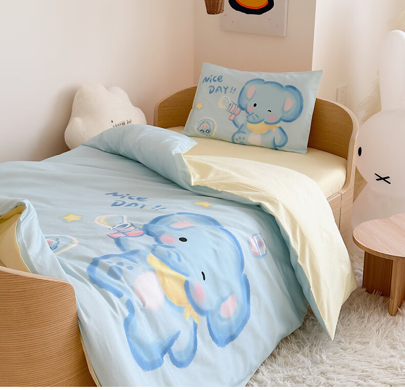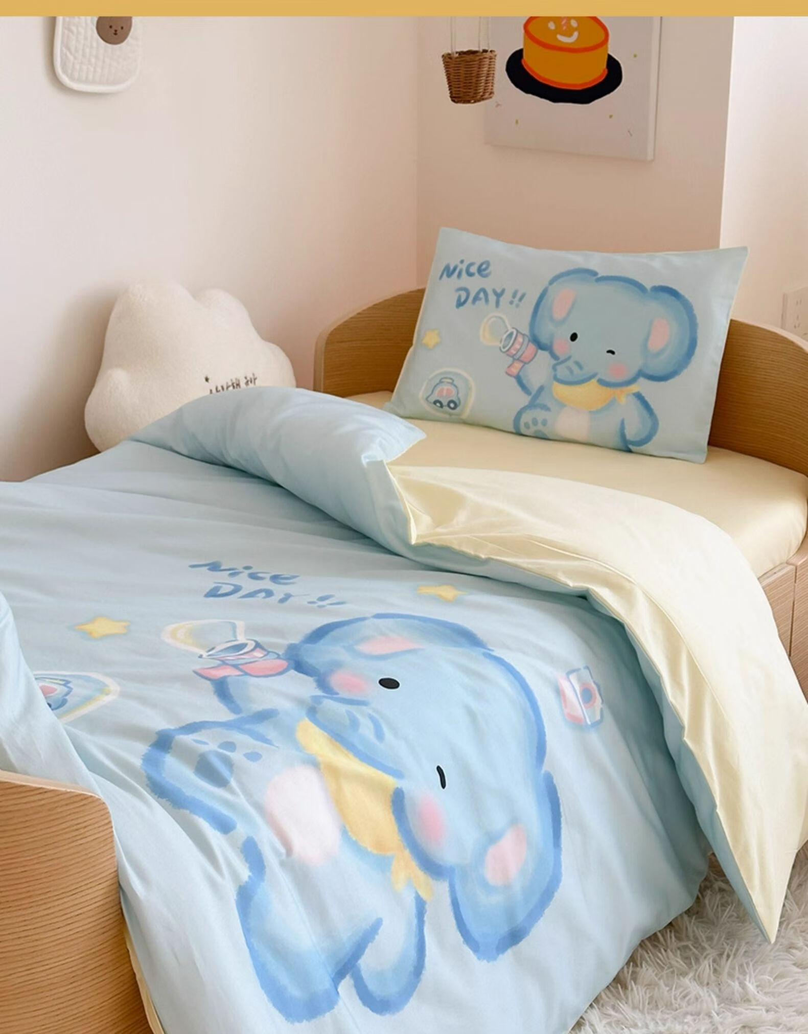 JOYNCLEON Kindergarten three-piece quilt set, pure cotton, Class A quilt, six-piece set for kindergarten bedding, special small quilt for nap, Happy Little Elephant 100 Xinjiang pure cotton, easy to use in all seasons, three-piece set (quilt cover 120*150cm, cushion cover 60*132