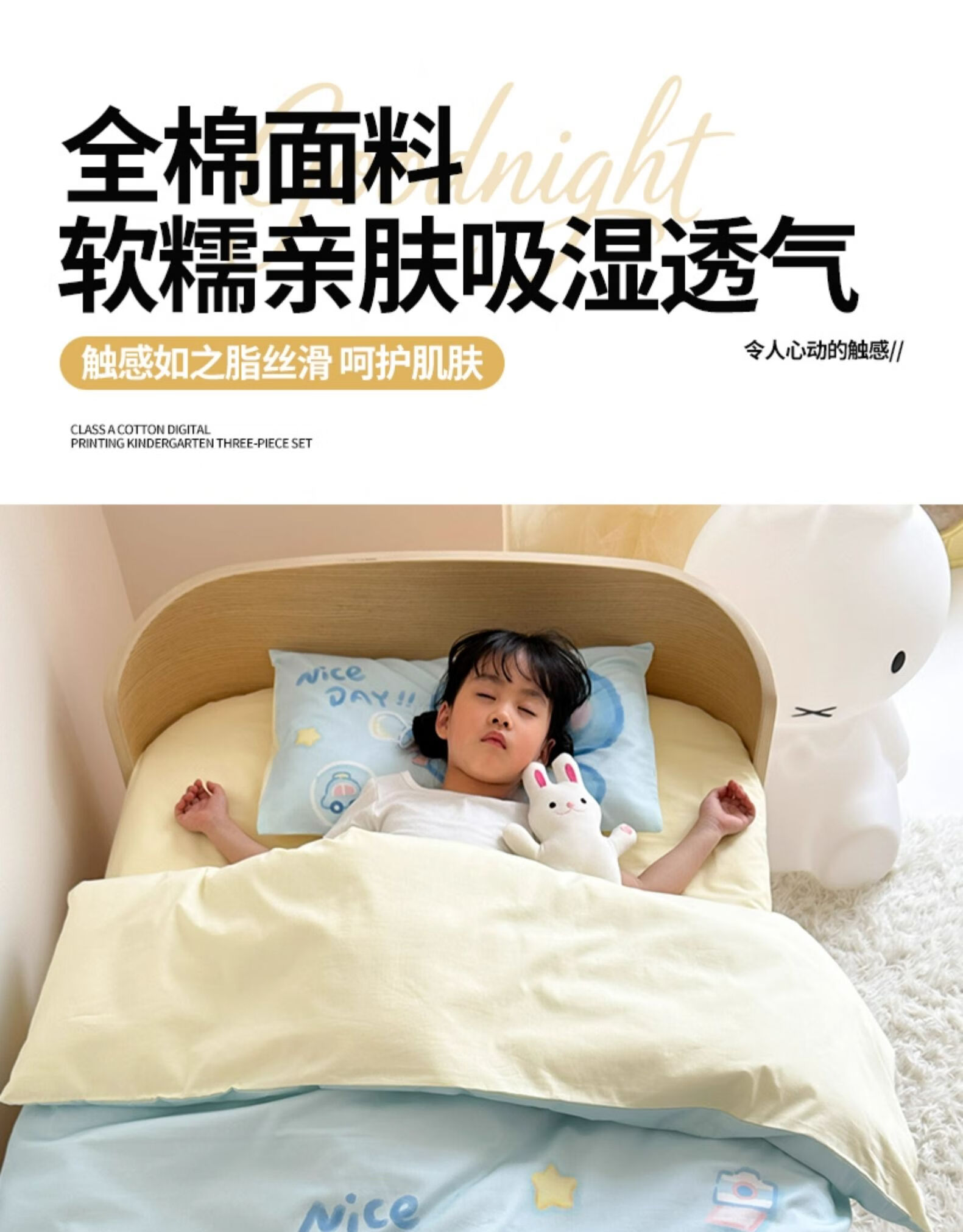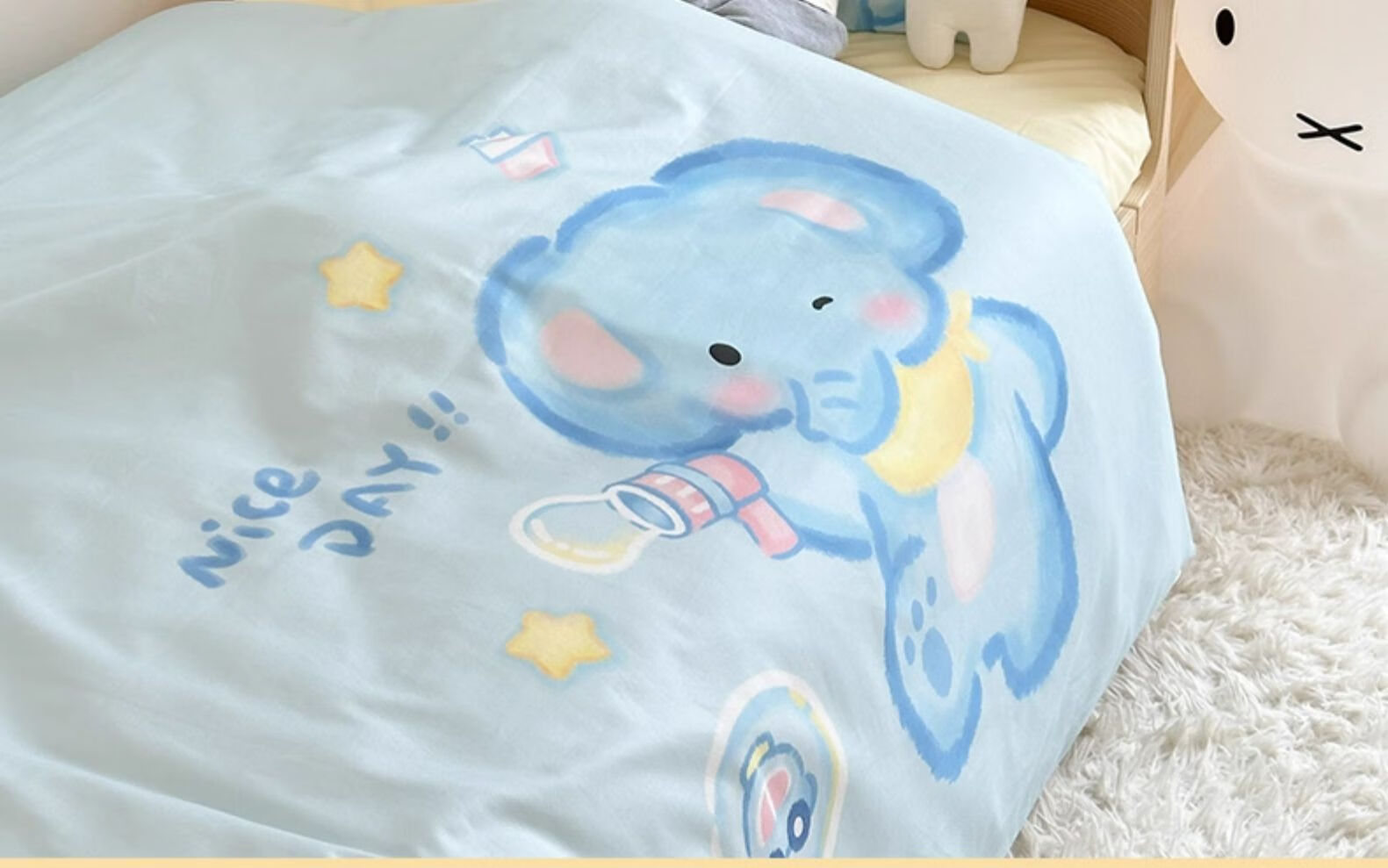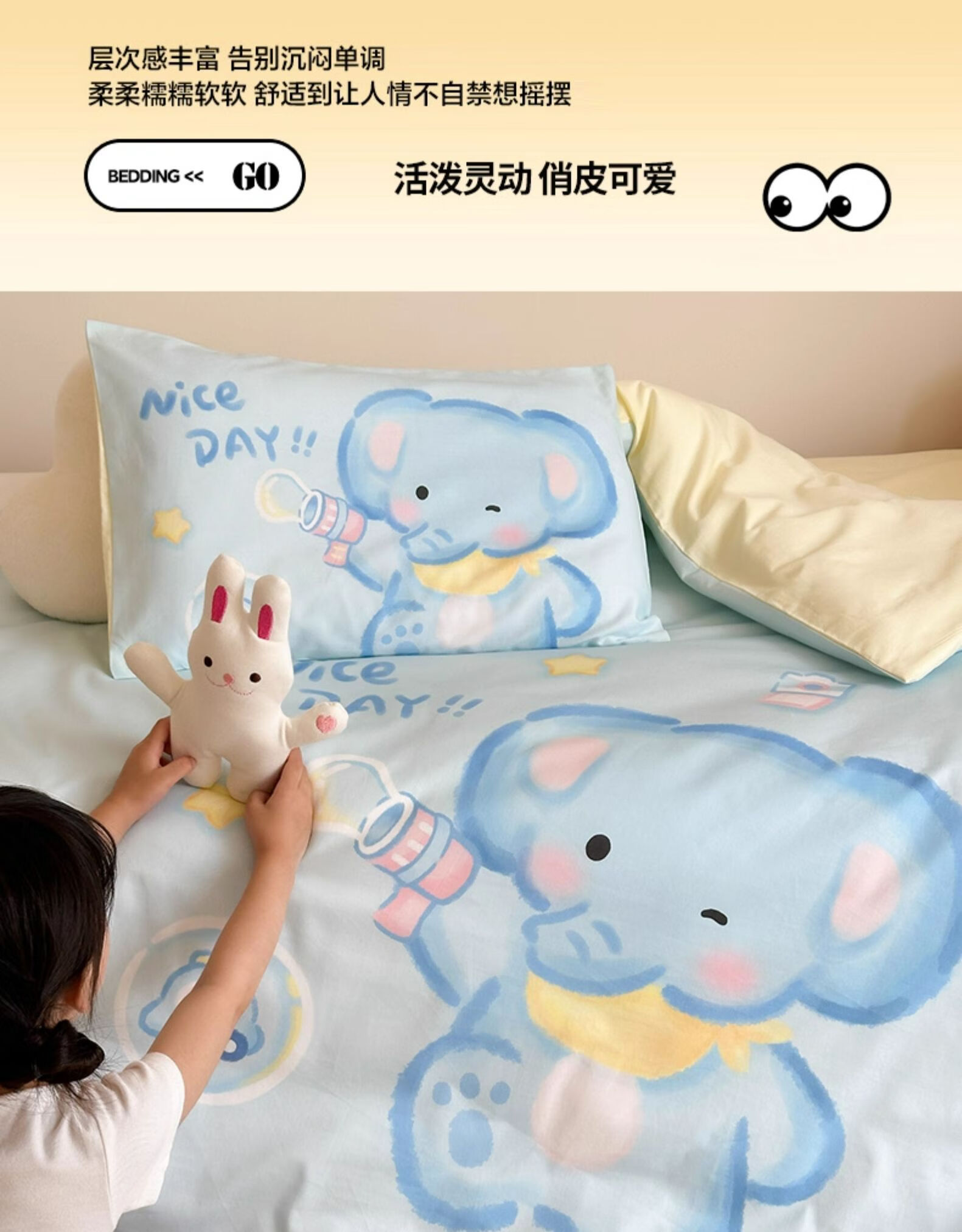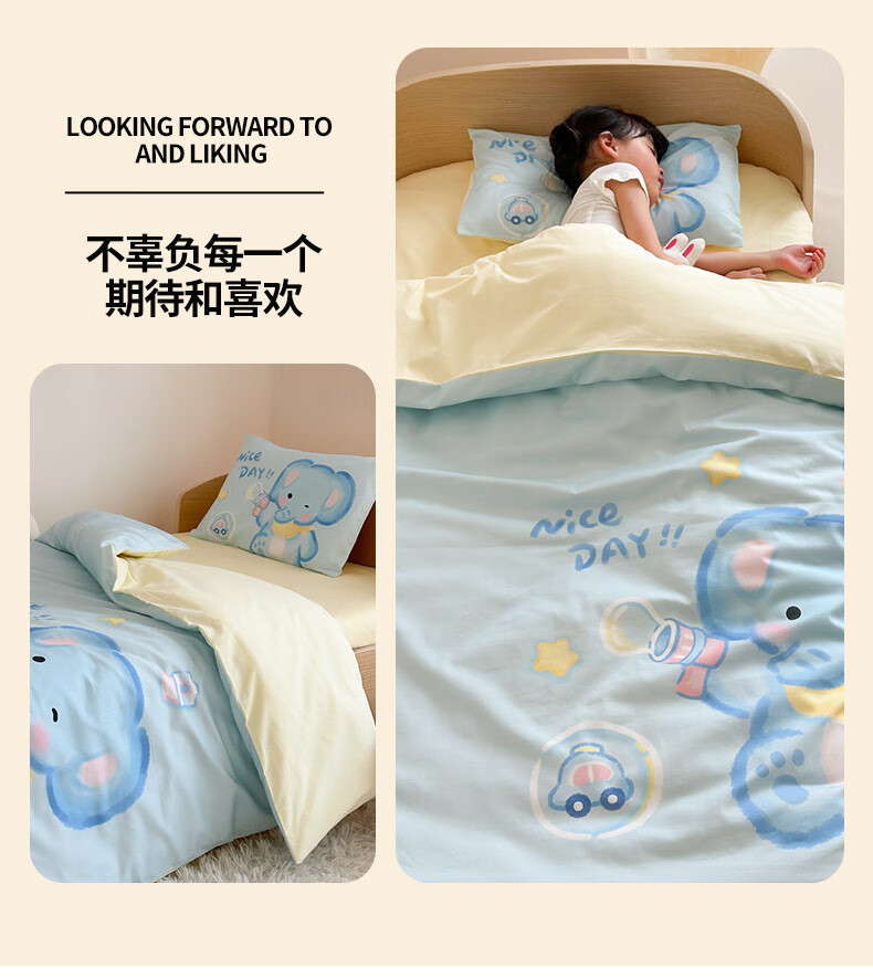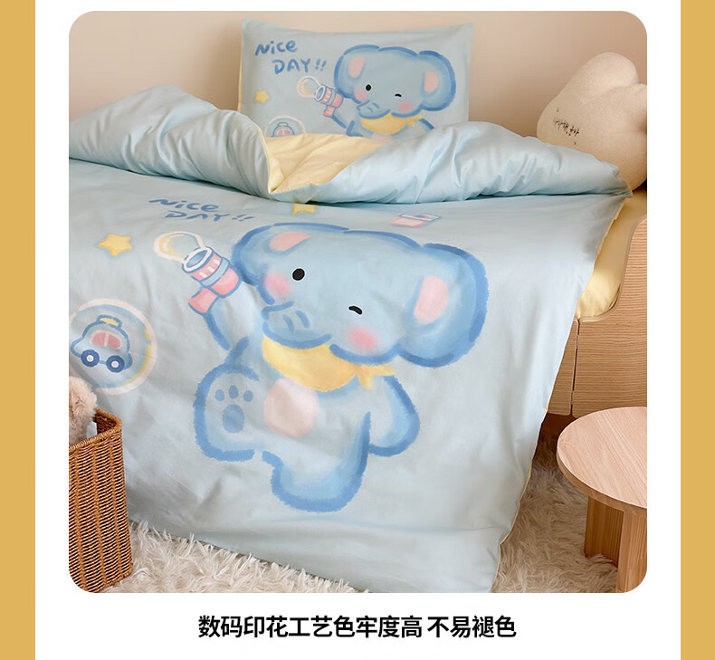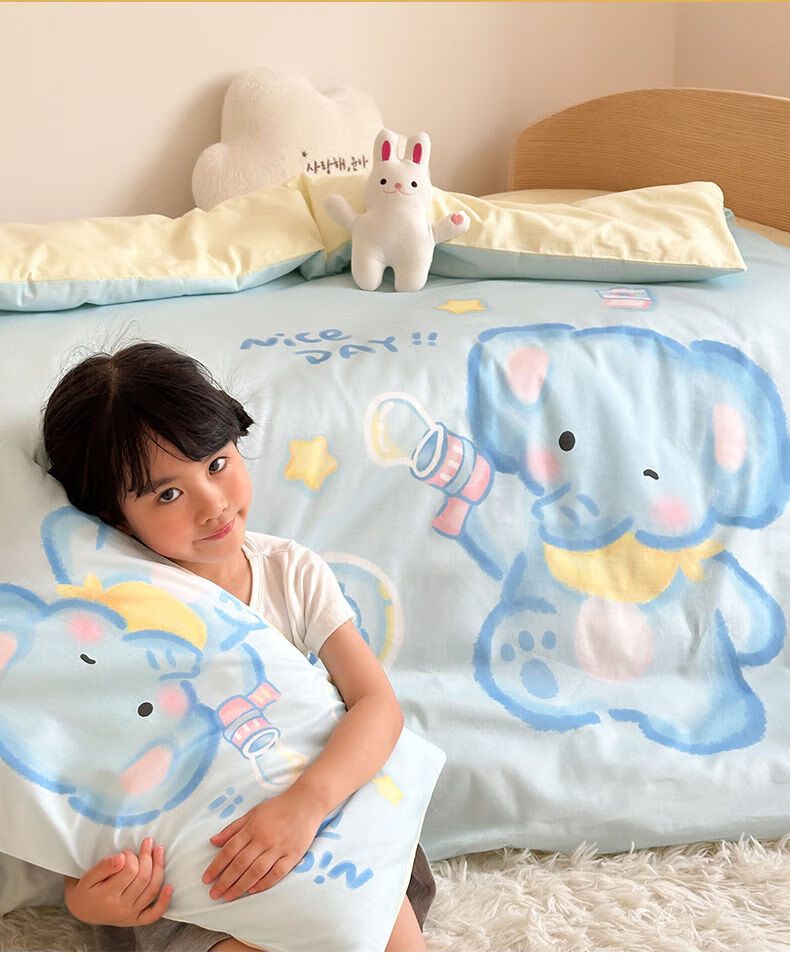 JOYNCLEON Kindergarten three-piece quilt set, pure cotton, Class A quilt, six-piece set for kindergarten bedding, special small quilt for nap, Happy Little Elephant 100 Xinjiang pure cotton, easy to use in all seasons, three-piece set (quilt cover 120*150cm, cushion cover 60*132