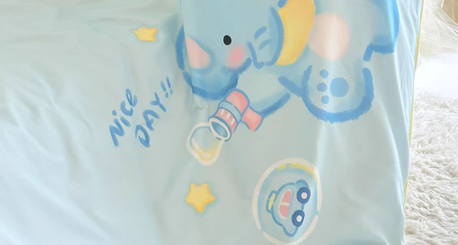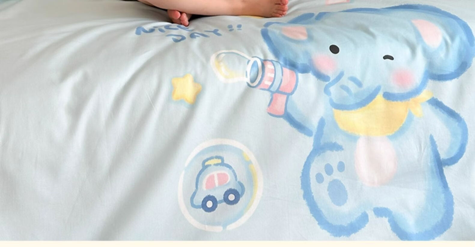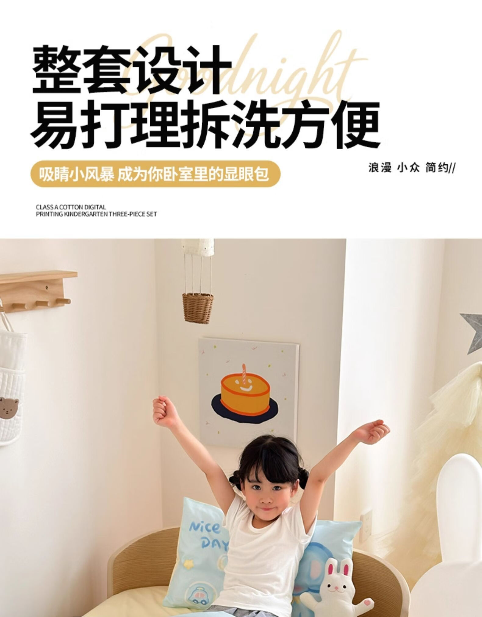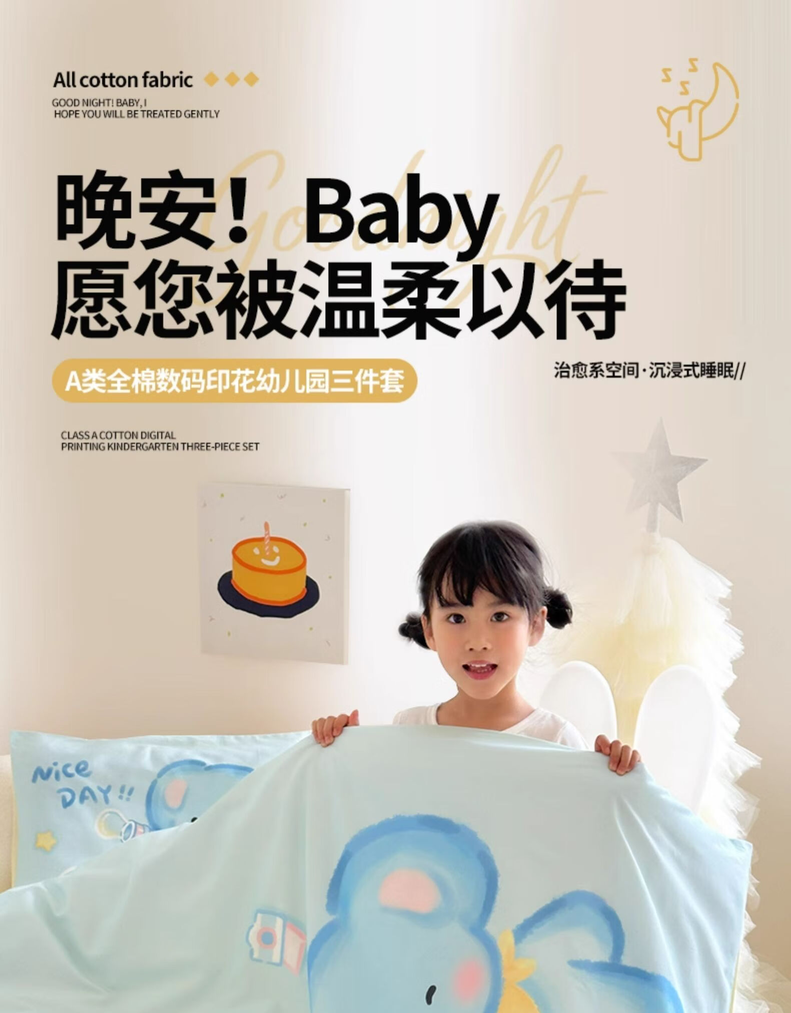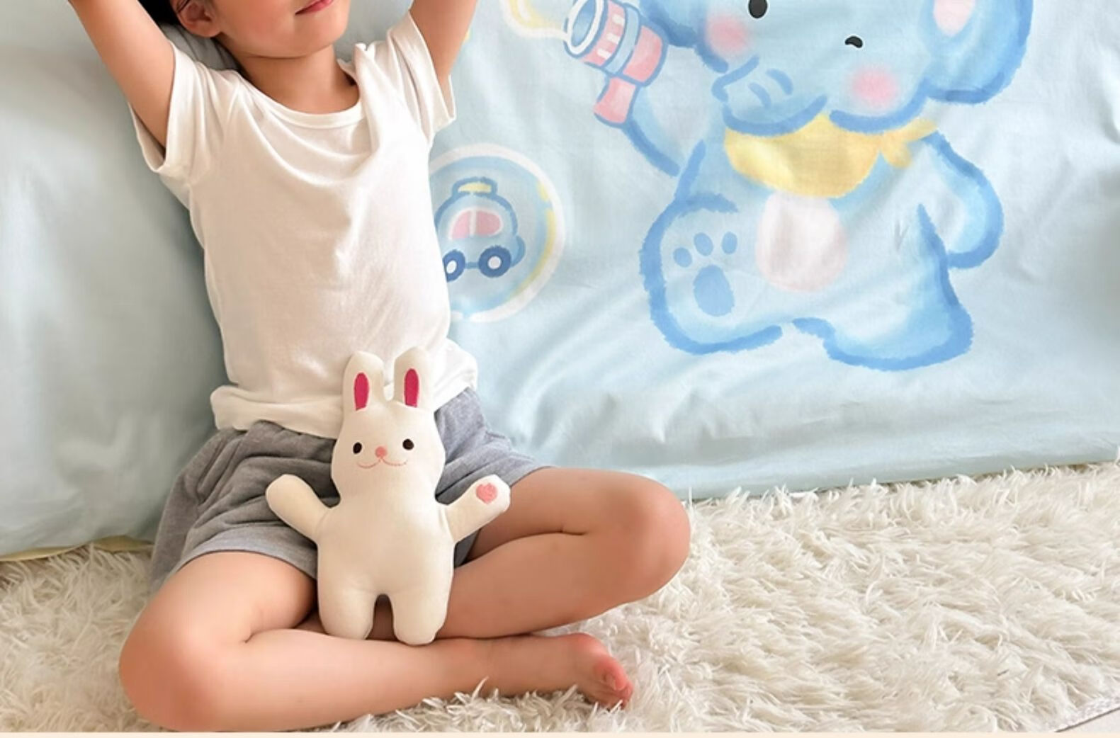 JOYNCLEON Kindergarten three-piece quilt set, pure cotton, Class A quilt, six-piece set for kindergarten bedding, special small quilt for nap, Happy Little Elephant 100 Xinjiang pure cotton, easy to use in all seasons, three-piece set (quilt cover 120*150cm, cushion cover 60*132