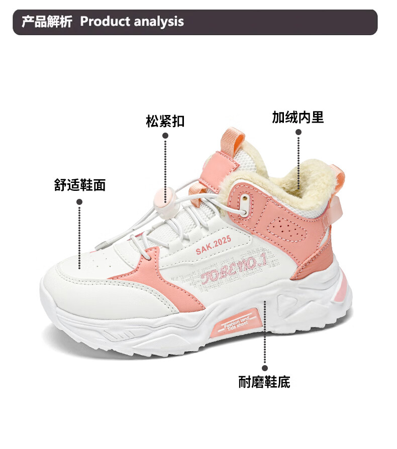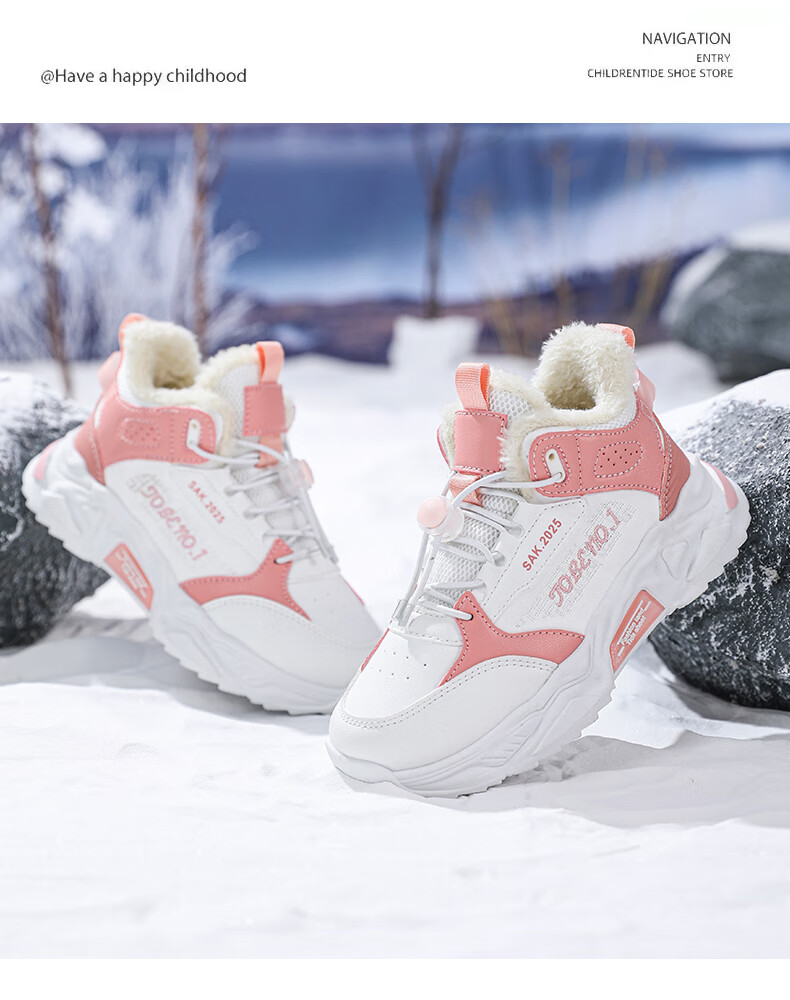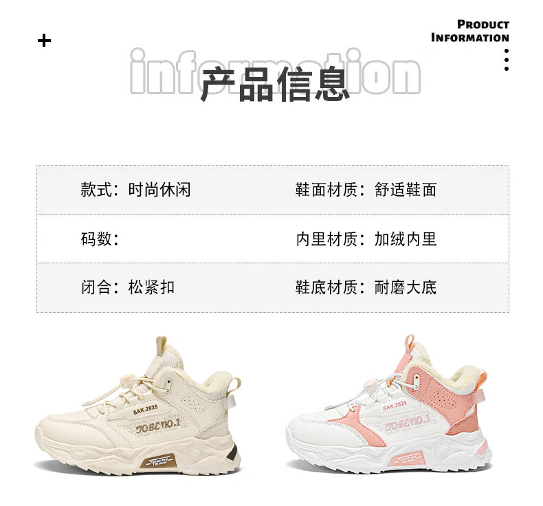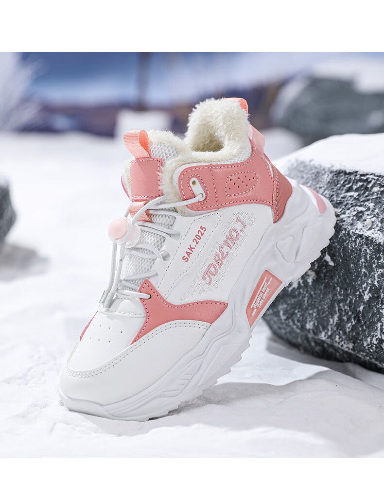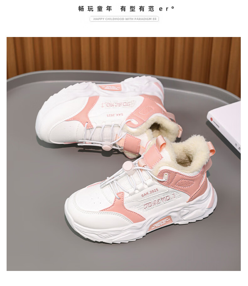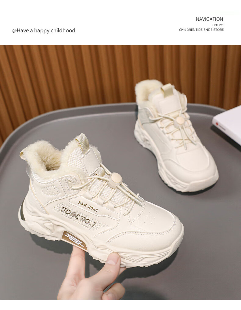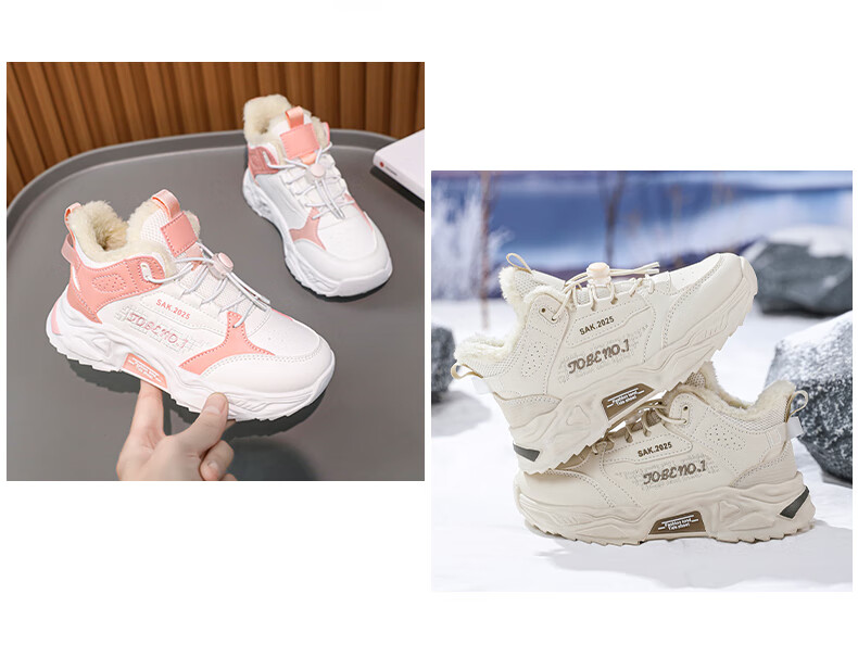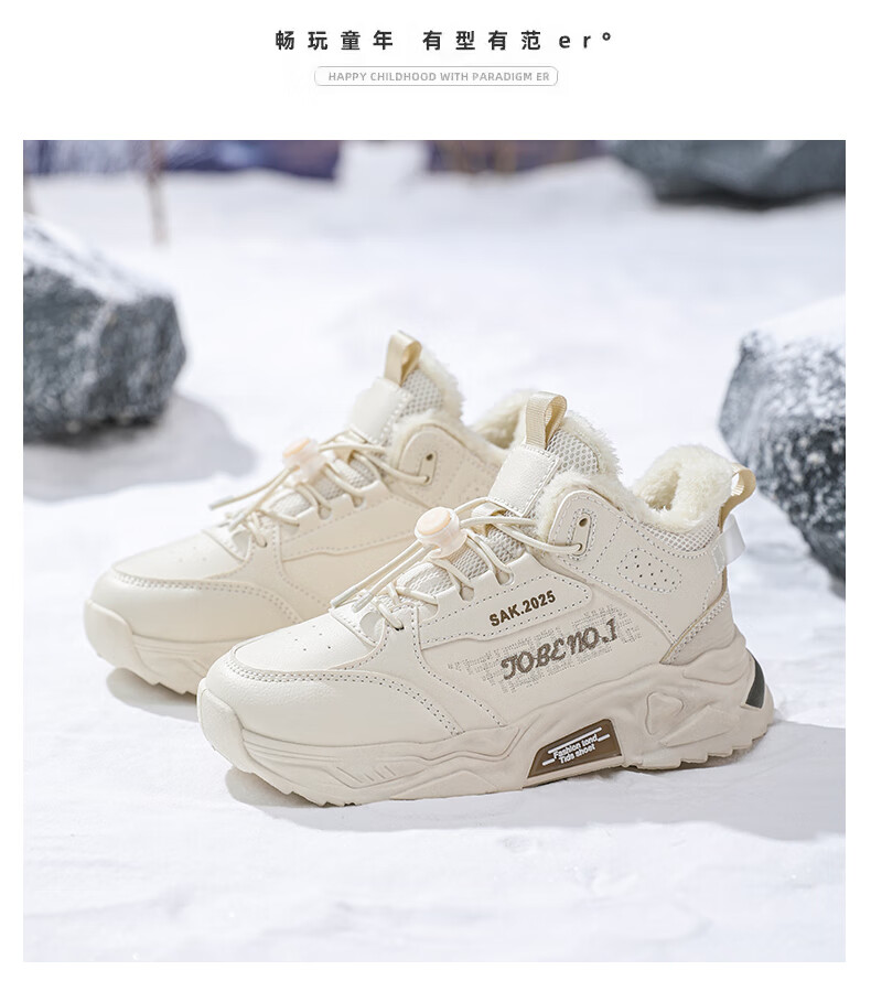 Li Ning Hot Girls' Large Cotton Shoes 2025 Winter New Children's Velvet Warm Small White Shoes for Big Children and Girls Soft Soled Sports Shoes Beige Main Picture Model Available in Seconds Beige Main Picture Model 36 Sizes Available in Seconds