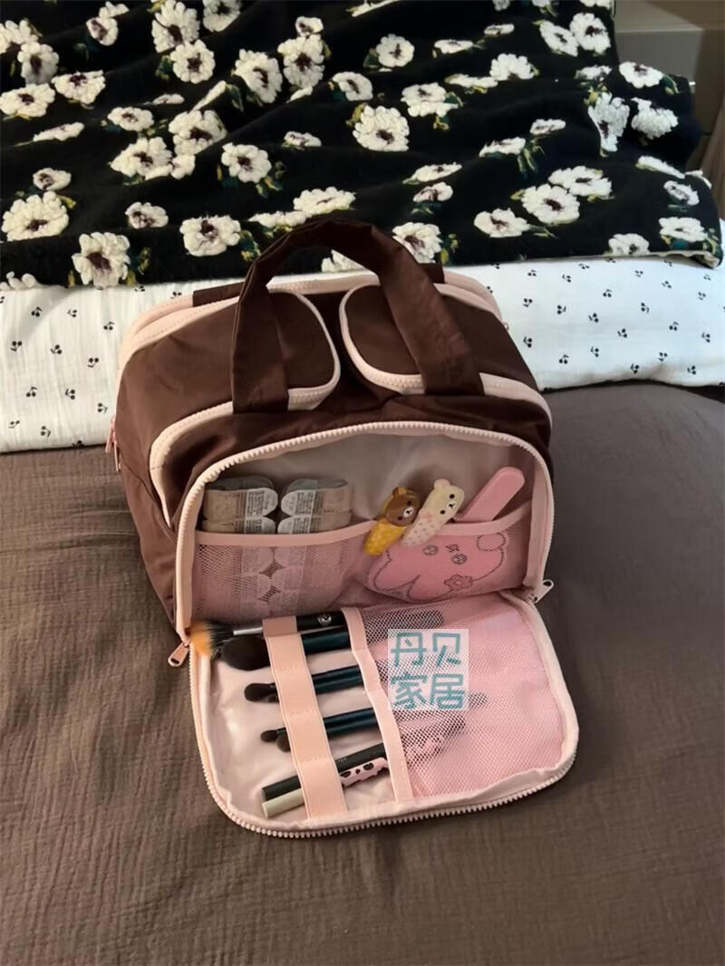 New Rossford Cosmetic Bag Large Capacity Milk Coffee Powder Storage Bag Portable Outing Portable Wash Bag Women's Partition Storage Xiaoerwang Coffee