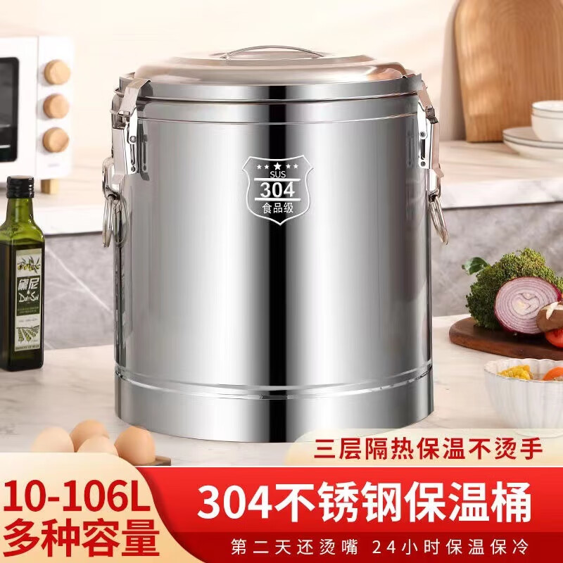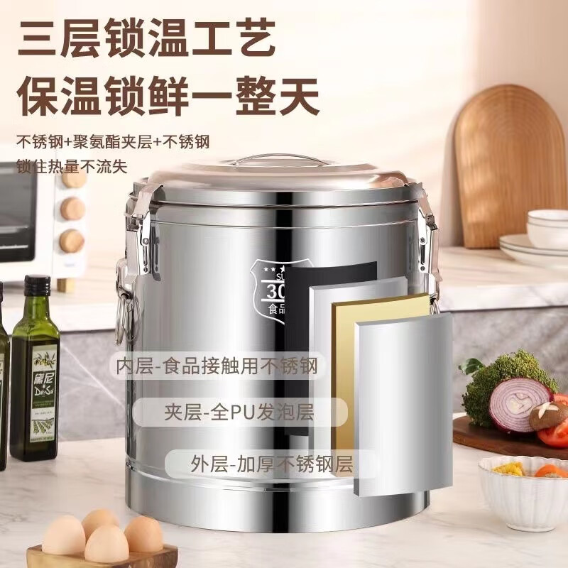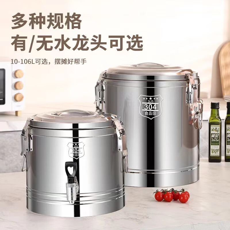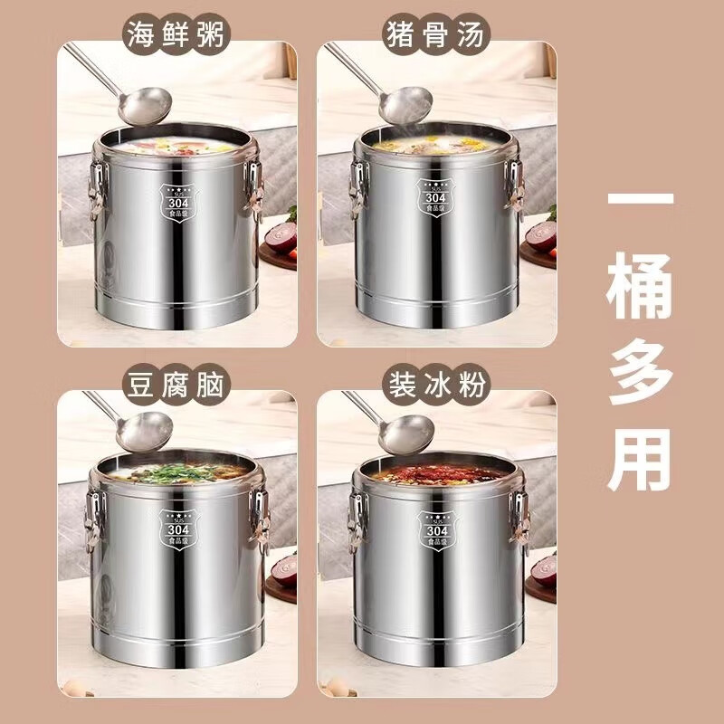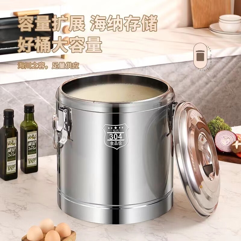 Enshousu Extra Thick Insulation Bucket Commercial Large Capacity Canteen Rice Bucket Soy Milk Bucket Milk Tea Bucket Stall Tofu Soup Bucket 304 No Faucet 10 liters of water approximately 12Jin Jin is equal to 0.5kg ()