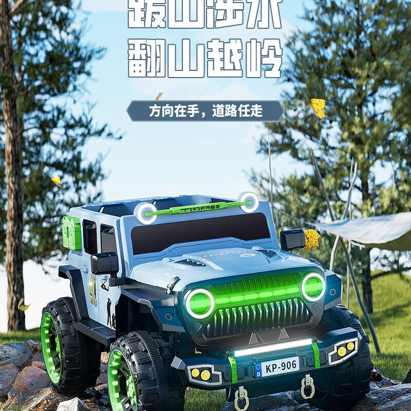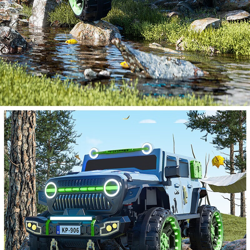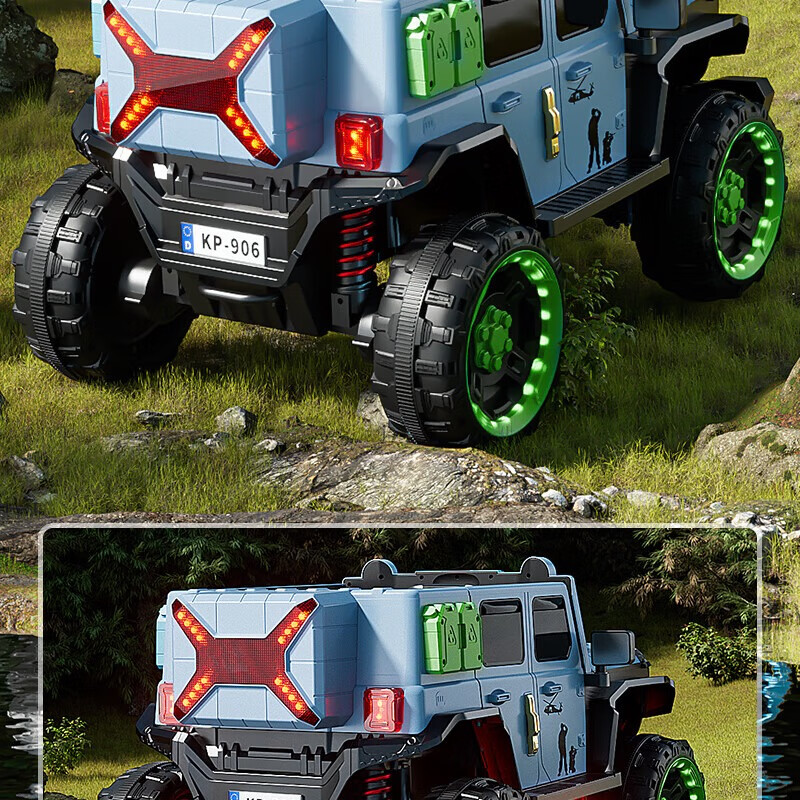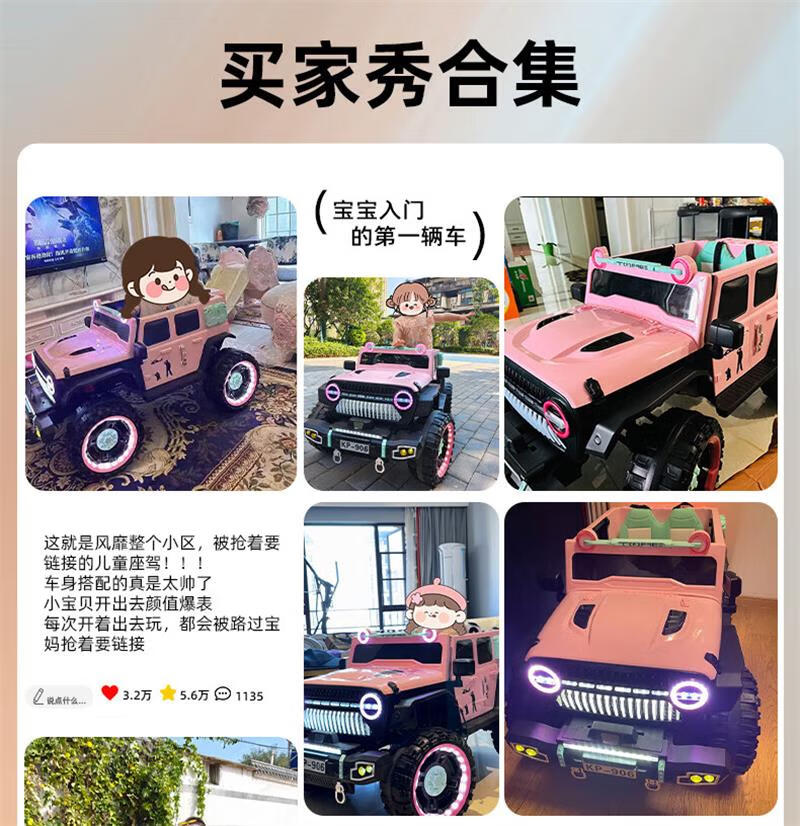 Benoqi children's electric vehicle Wrangler four-wheel drive off-road vehicle four-wheel vehicle for boys and girls can sit in an adult car baby toy stroller supreme + pink + leather seat + luminous soft wheel + 12V14A Super Power battery